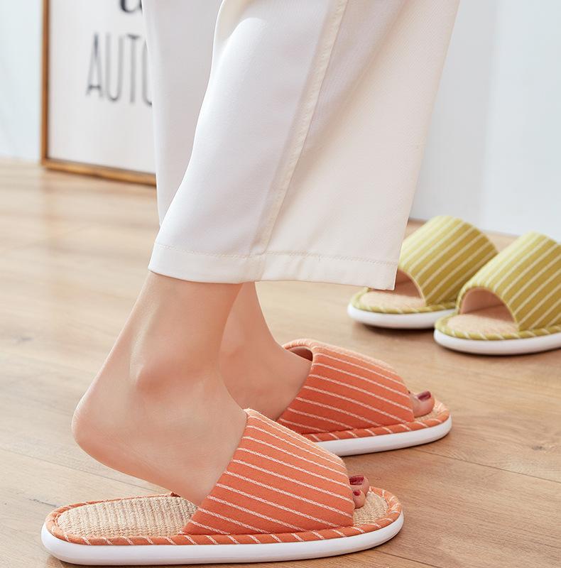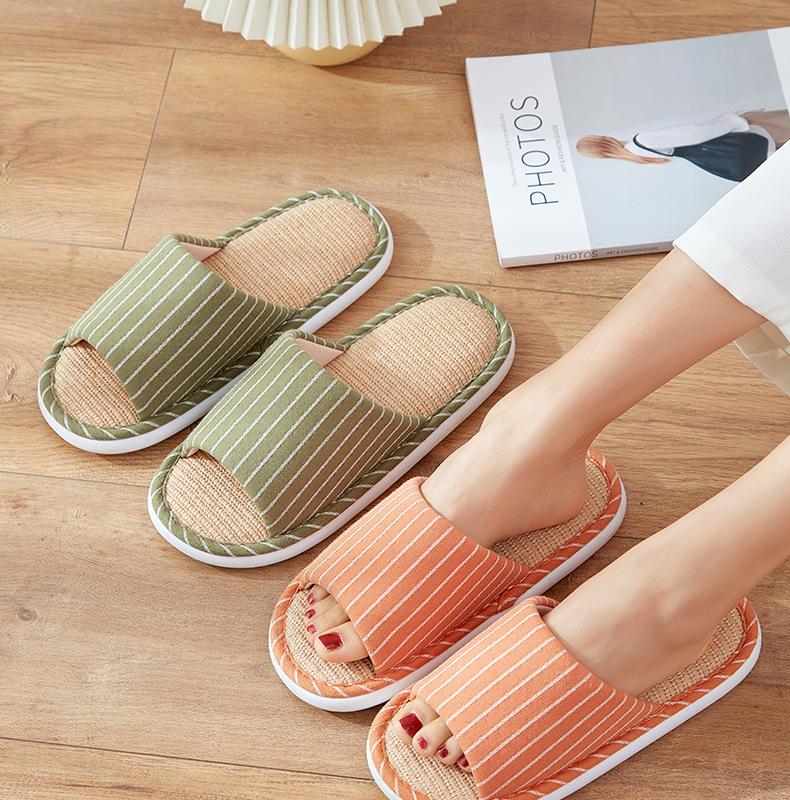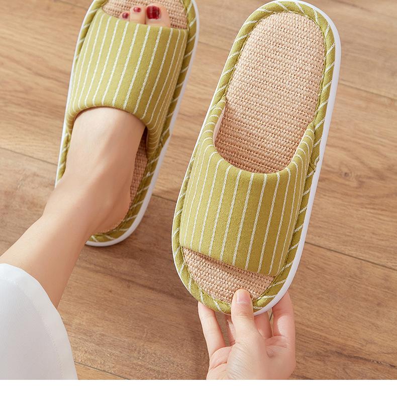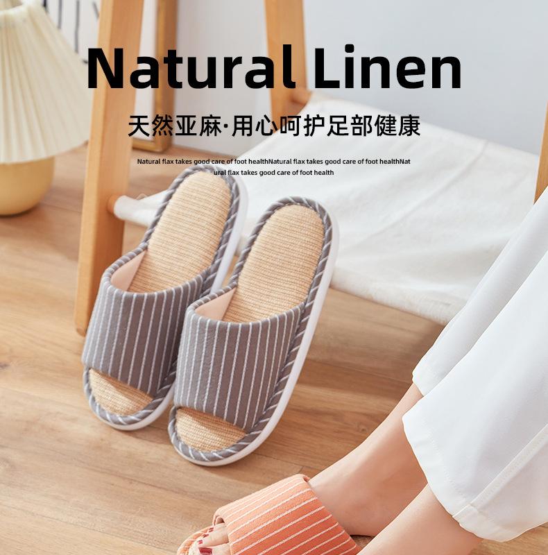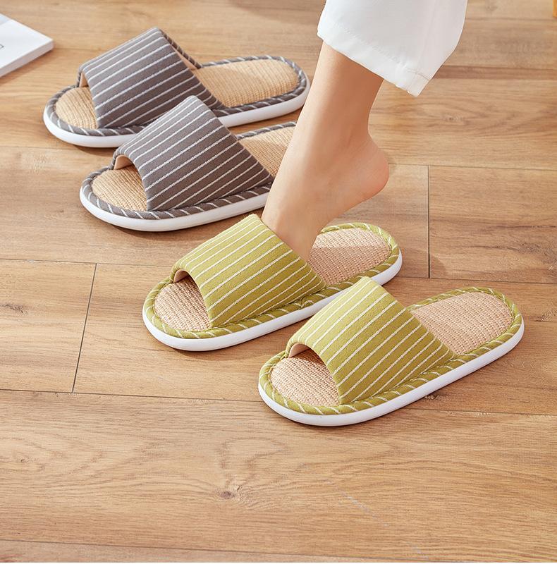 Pantuflas de lino de primavera para mujer para interior del hogar al por mayor, pantuflas de tela de algodón y lino absorbentes del sudor para piso de primavera y otoño para hombre