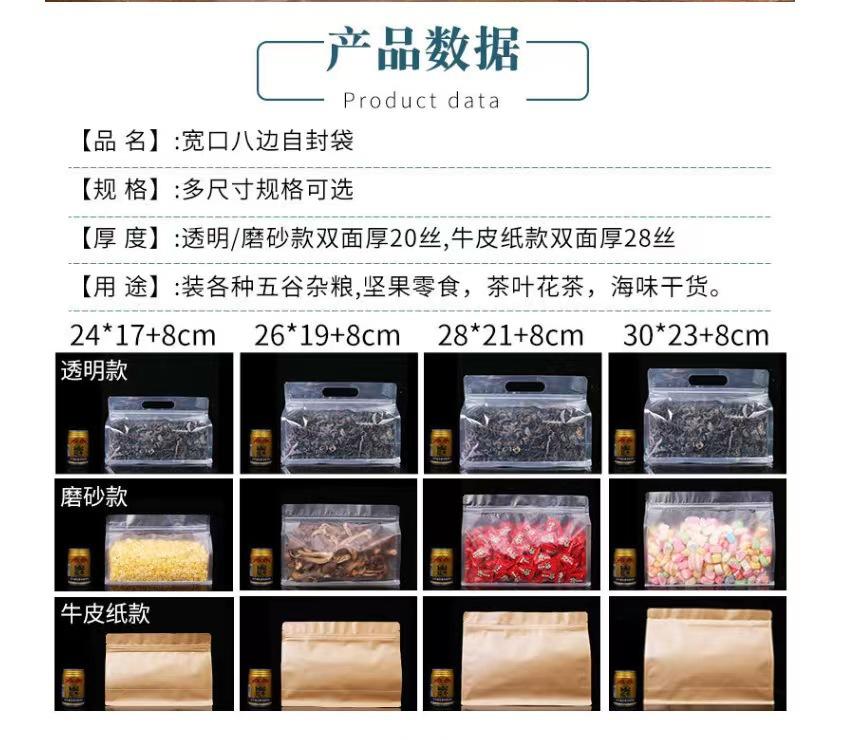 Bolsa Ziplock Transparente de Mano para Alimentos con Sellado Octagonal de Mano Lámina de Aluminio Engrosada Bolsa de Hueso Bolsa de Regalo para Exhibición Tirar Hornear
