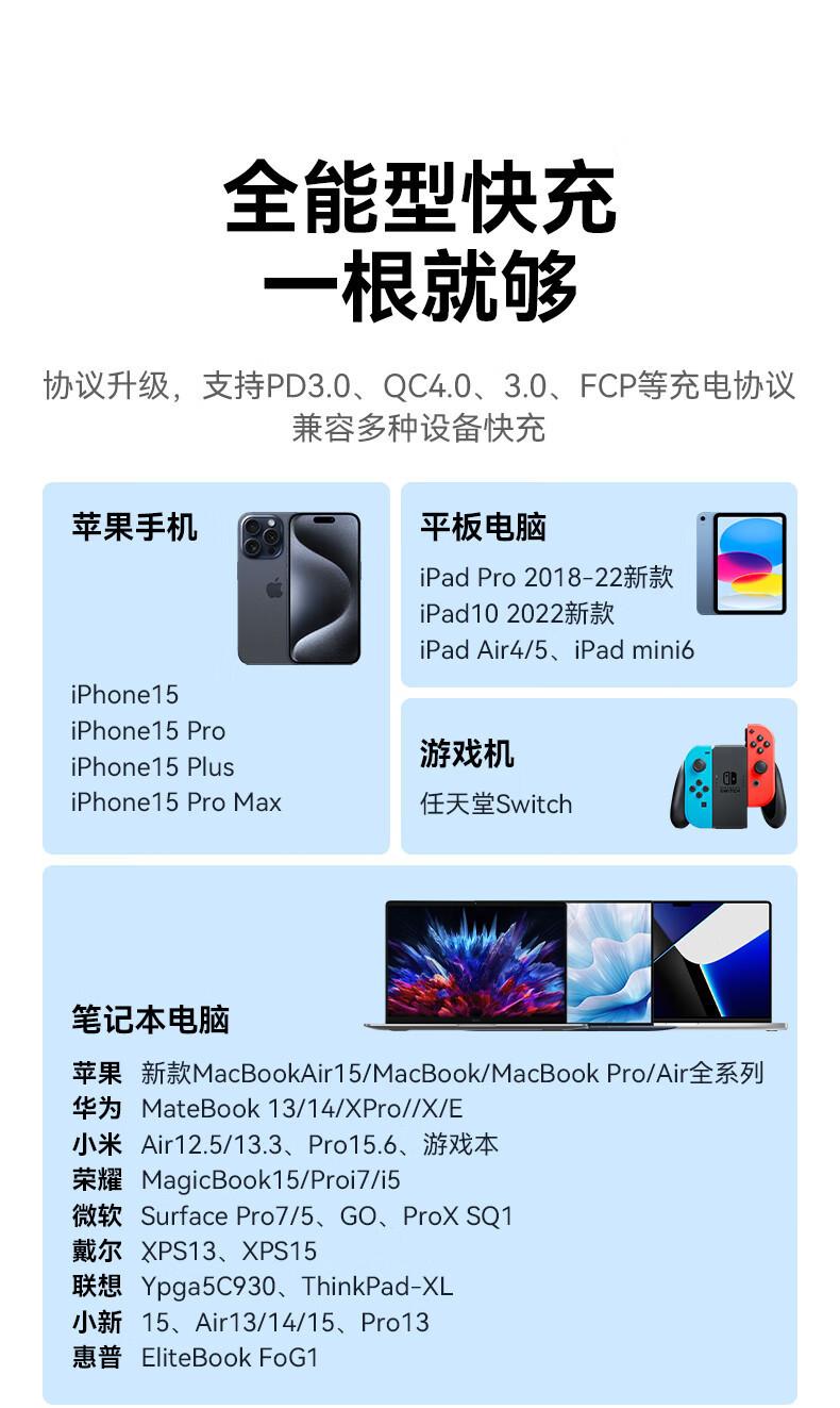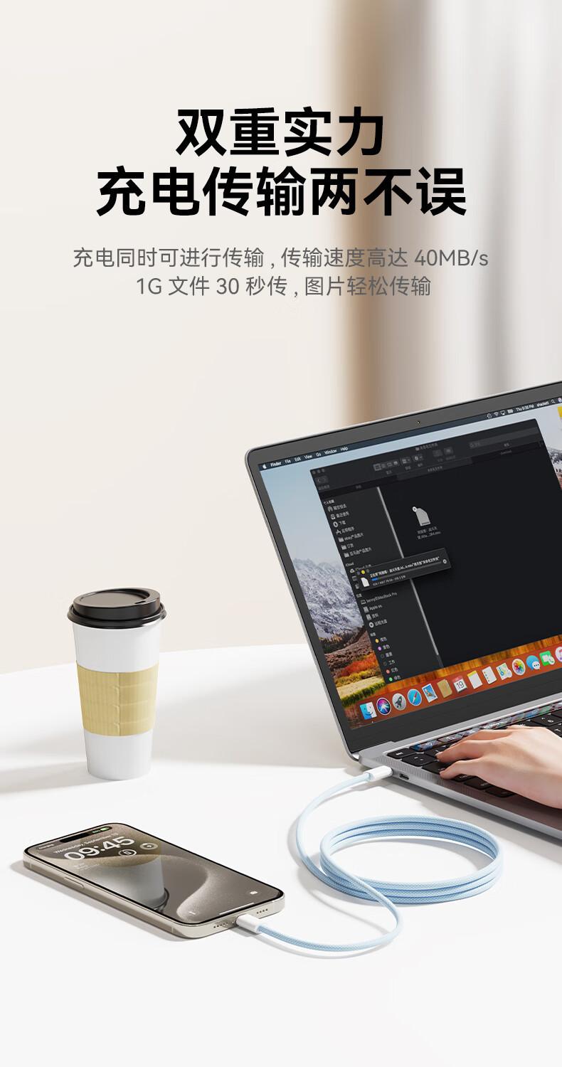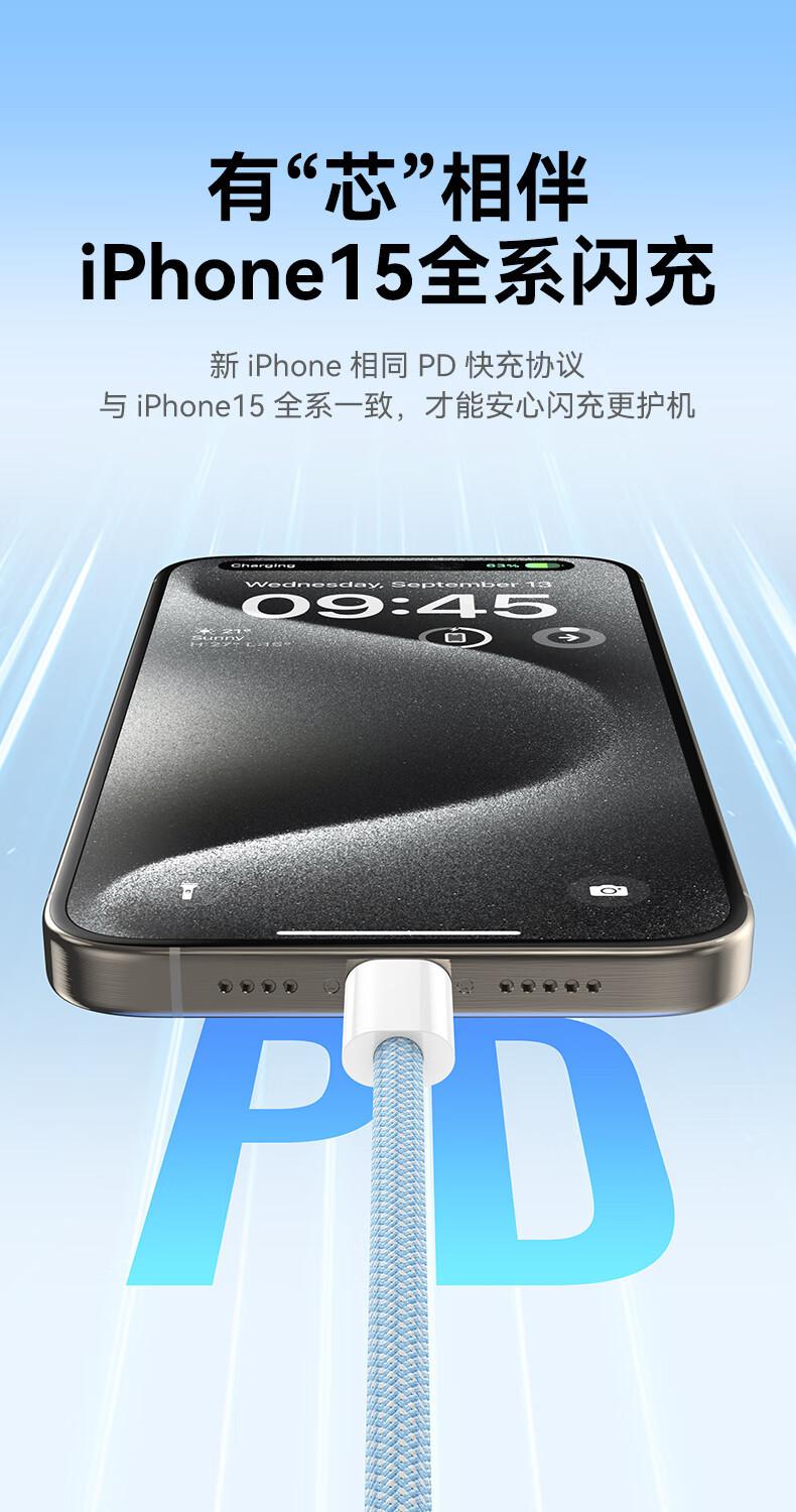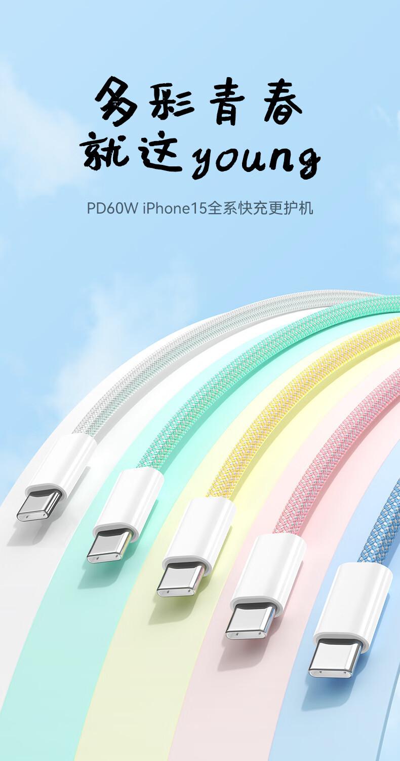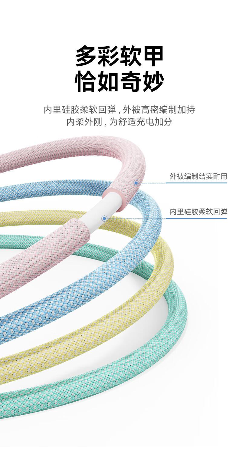 Cable de datos Biazping tipo C de doble cabeza para fruta 15 PD60W, cable de carga rápida tejido aplicable 15/proma