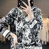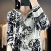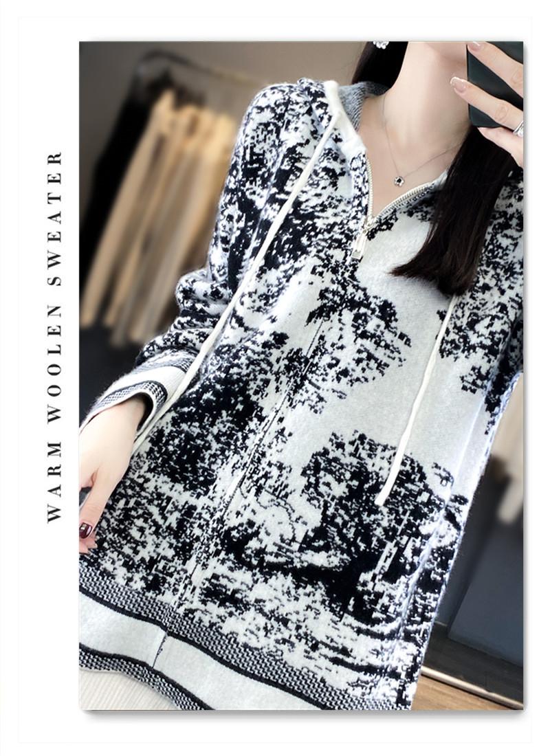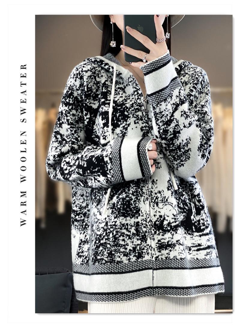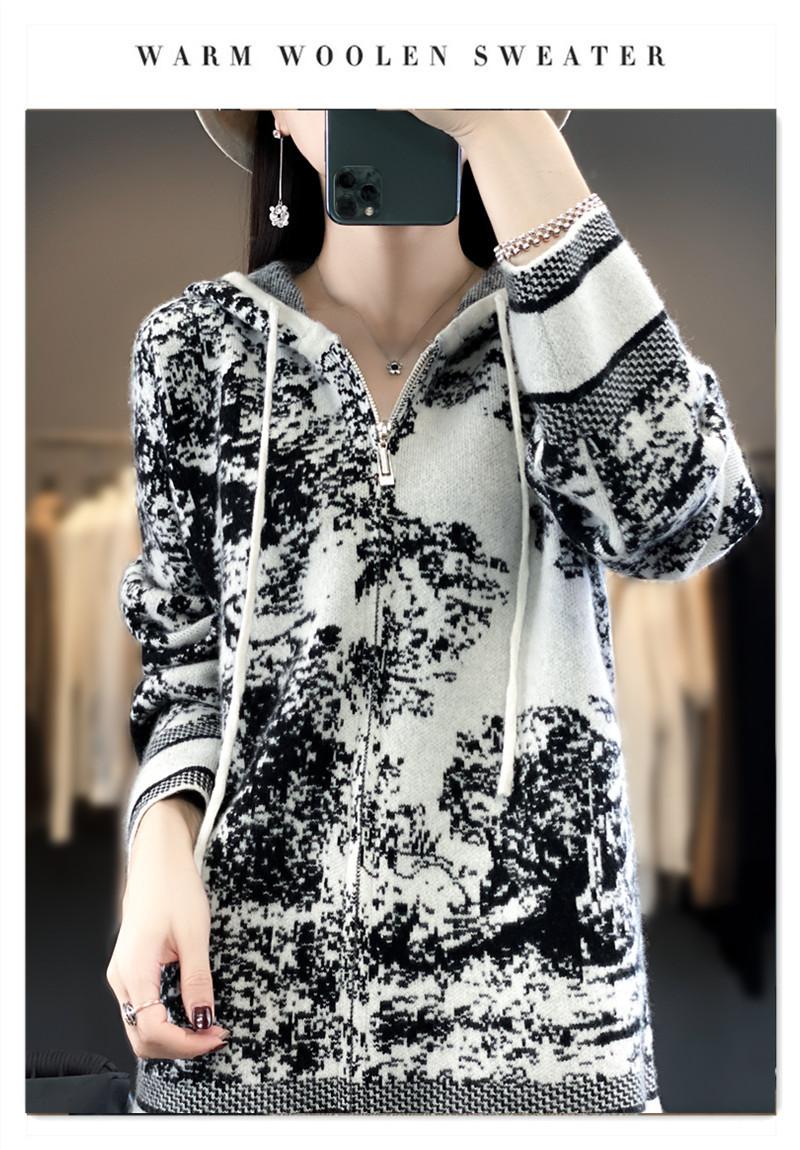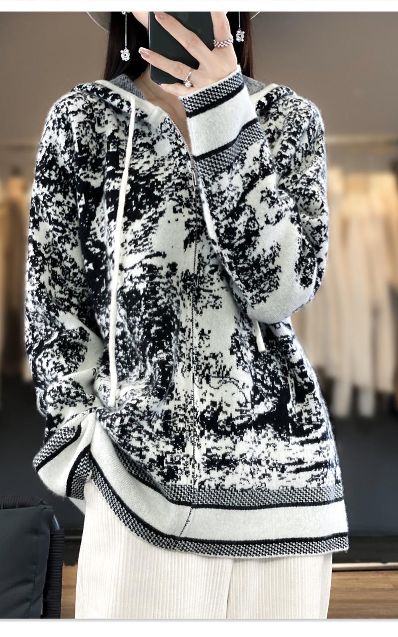 Suéter con capucha y cremallera para mujer, otoño e invierno, novedad de 2023, suéter con pintura de tinta, abrigo tipo cárdigan.