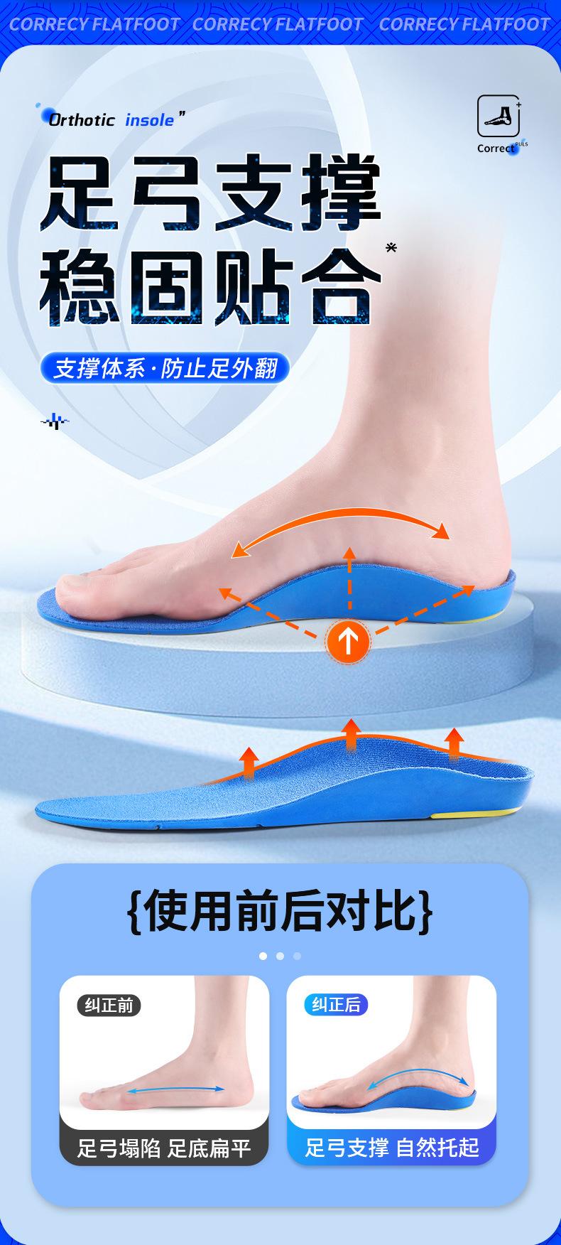 Plantillas Correctoras de Pie Plano Soporte de Arco para Pie de Hombre Firmes Antideslizantes Deportivas Absorción de Impactos Corrección Tipo de Pierna Almohadilla para Pie de Mujer