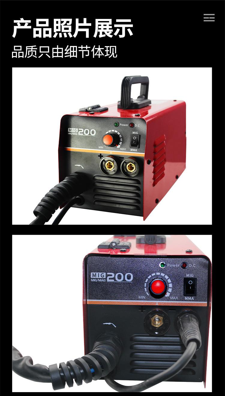 Máquina de soldadura de chapa profesional MMA + MIG200 de 220 V con mango y abrazadera de puesta a tierra para soldadura de motor.