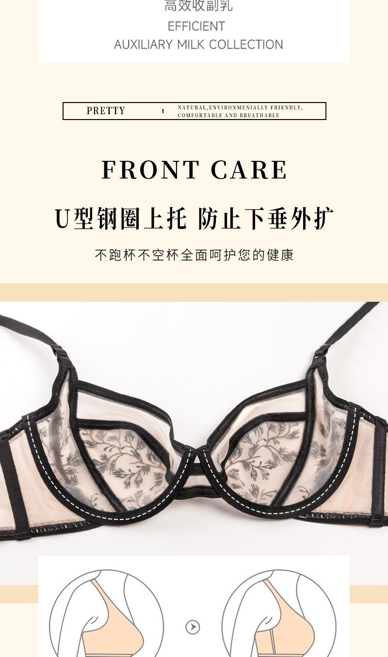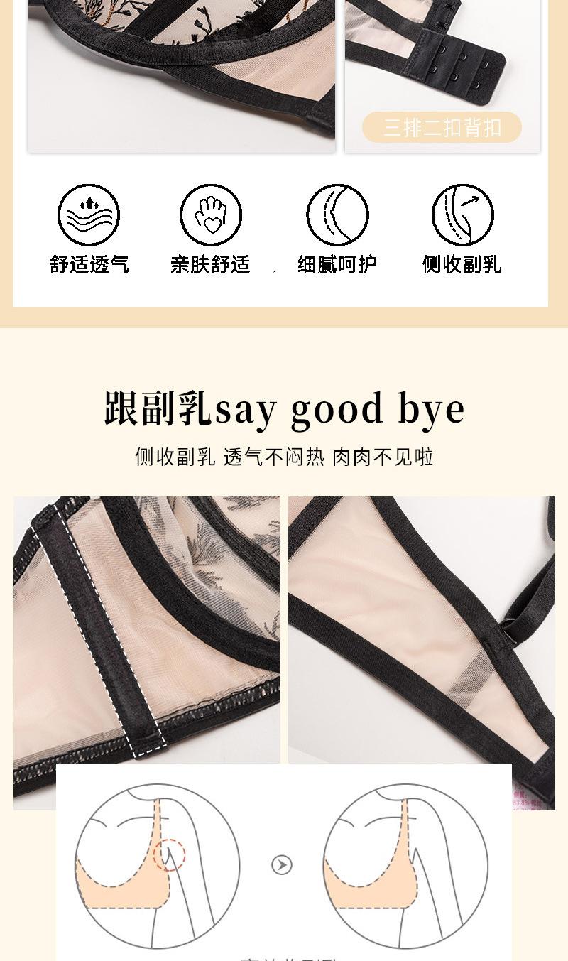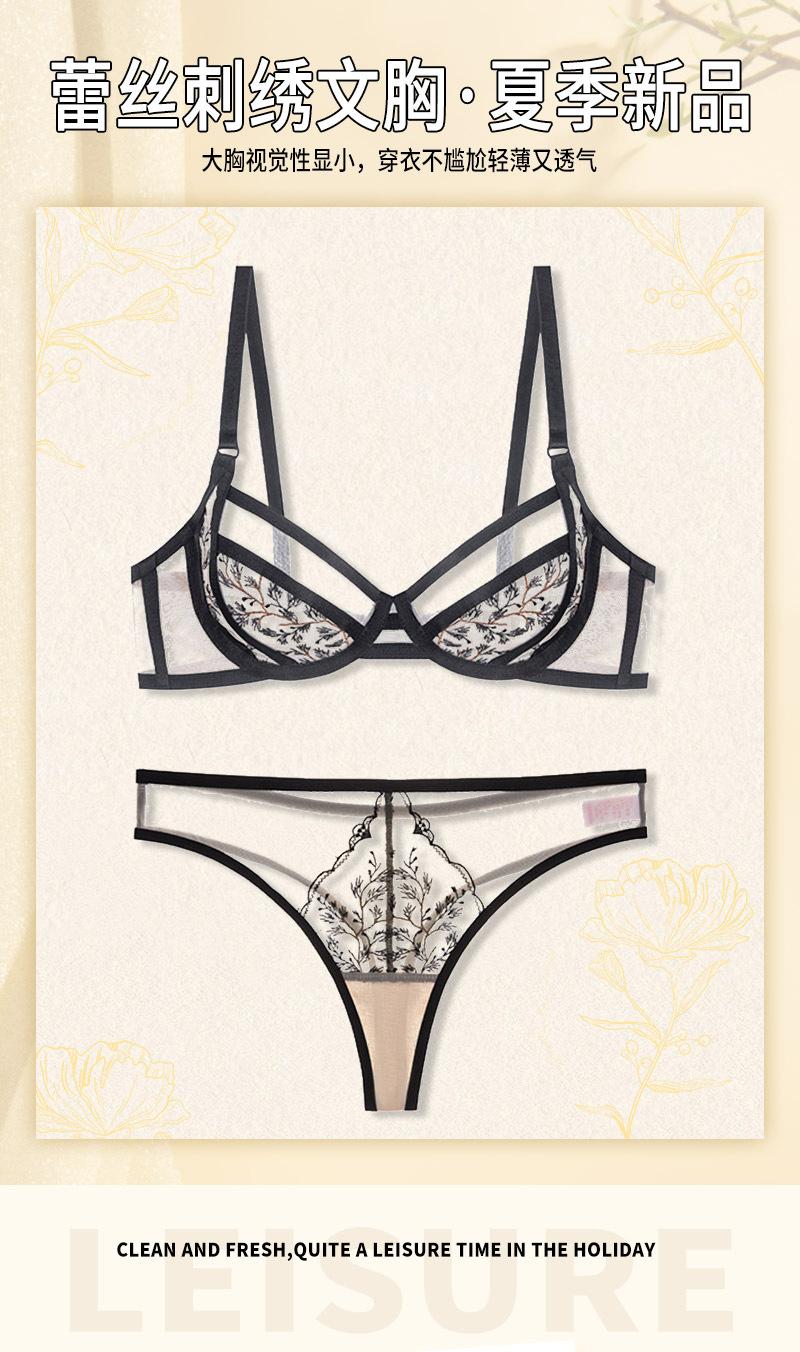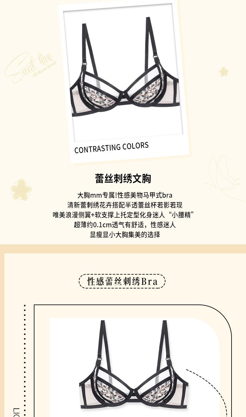 Conjunto de ropa interior ultrafina de verano con sujetador de encaje bordado sexy, deseo puro, pechos grandes que muestran un pequeño sujetador antiflacidez |