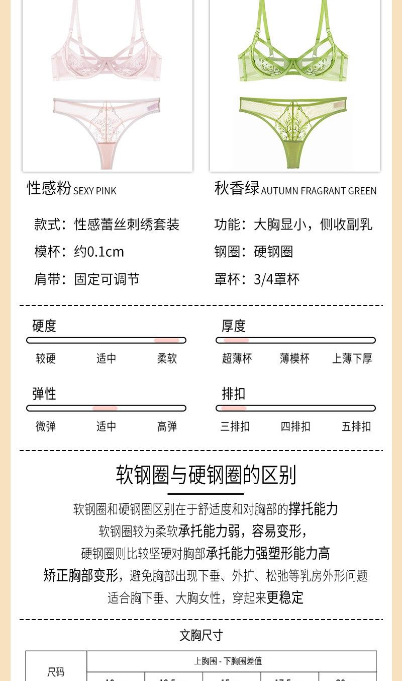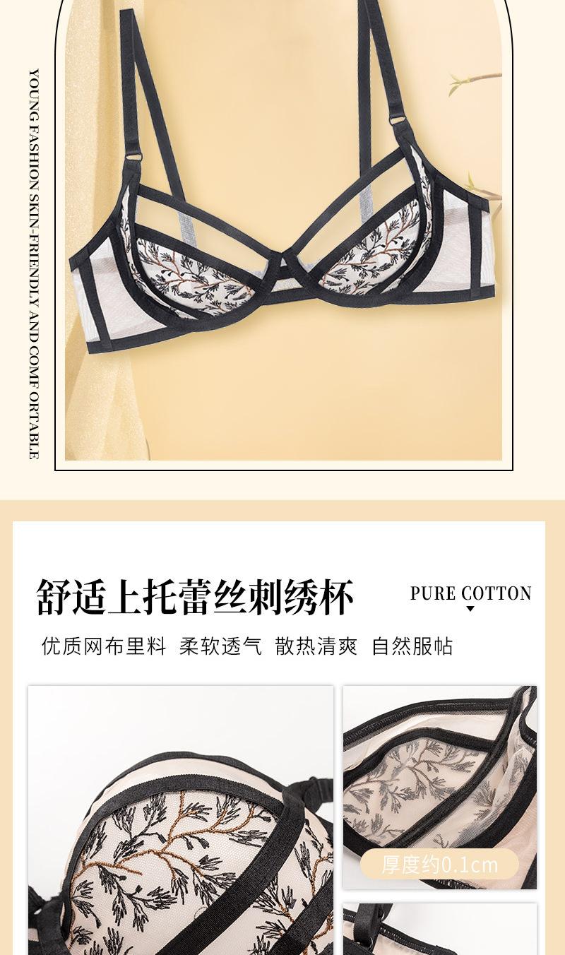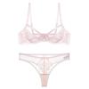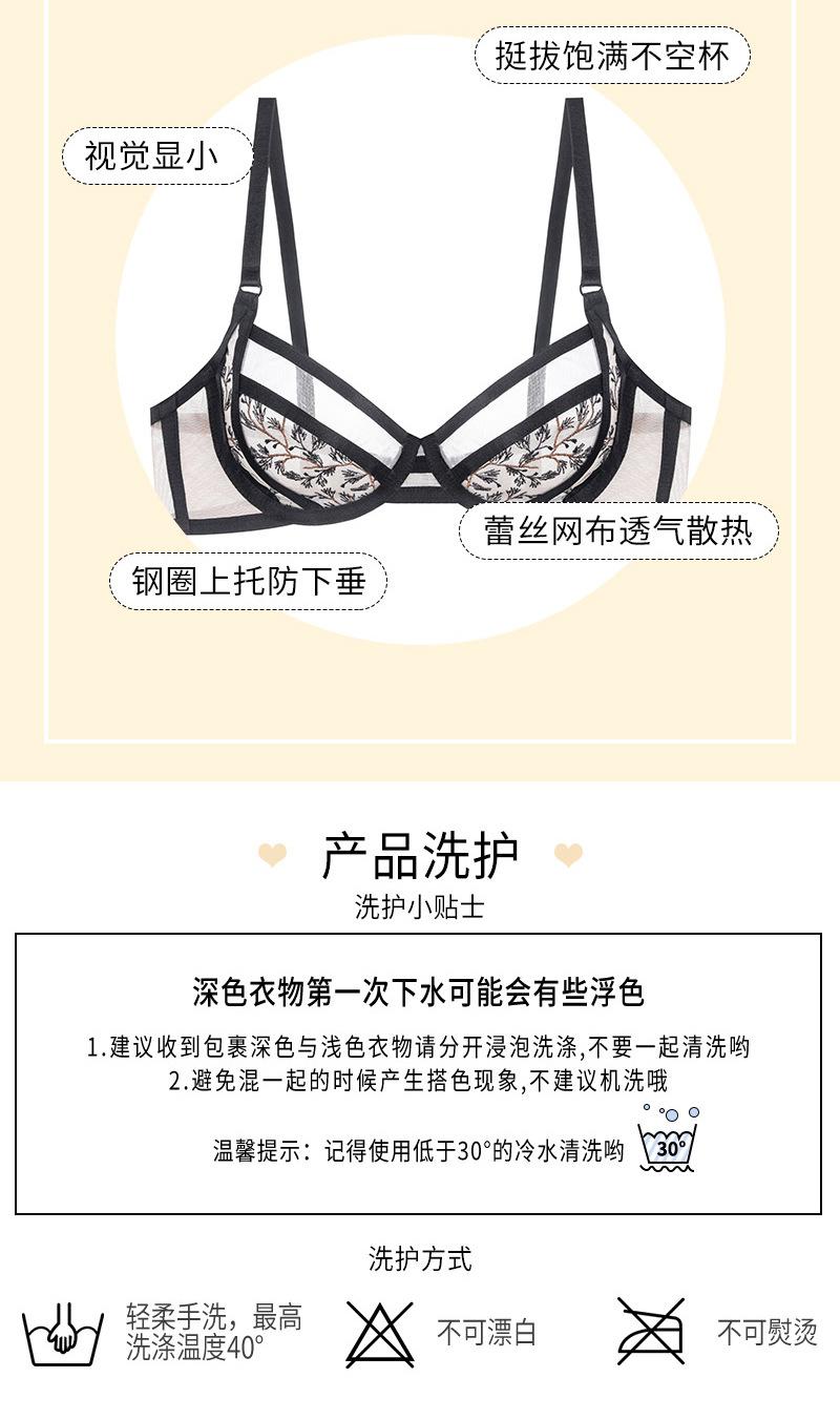 Conjunto de ropa interior ultrafina de verano con sujetador de encaje bordado sexy, deseo puro, pechos grandes que muestran un pequeño sujetador antiflacidez |