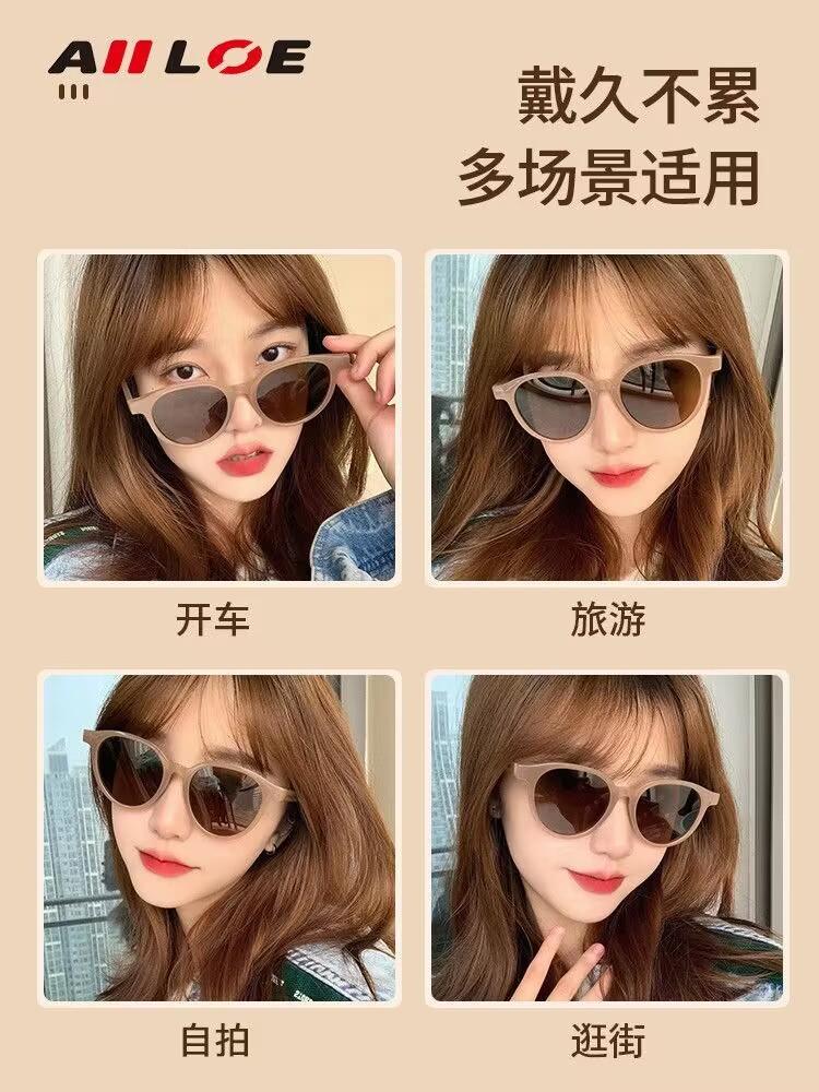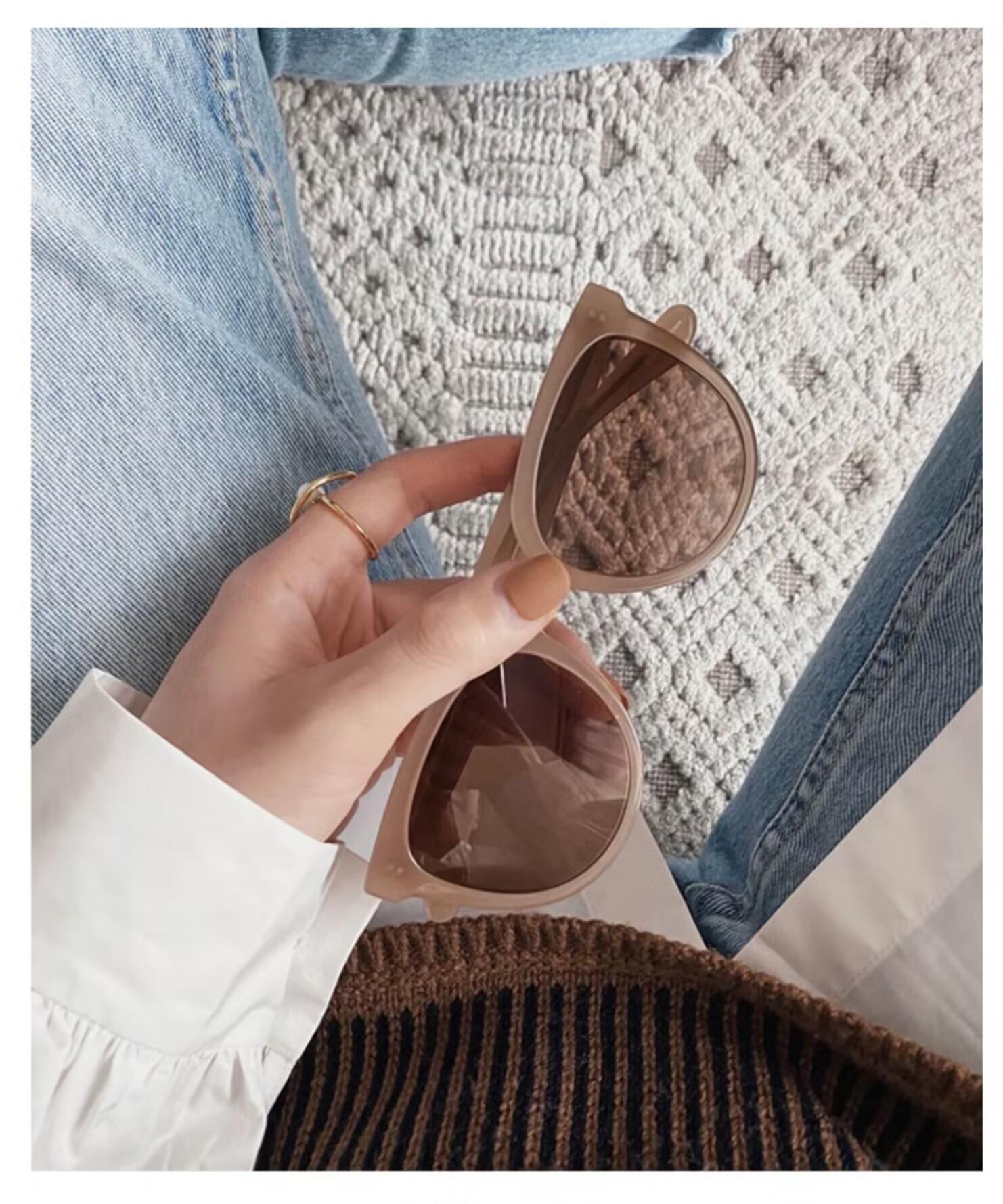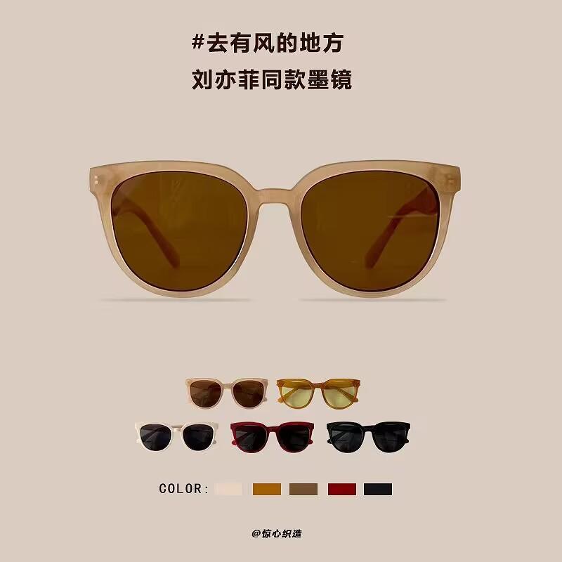 Nuevas gafas de sol Liu Yifei Red Bean de estilo versátil, con marco redondo pequeño y texturizado mate, con protección solar.