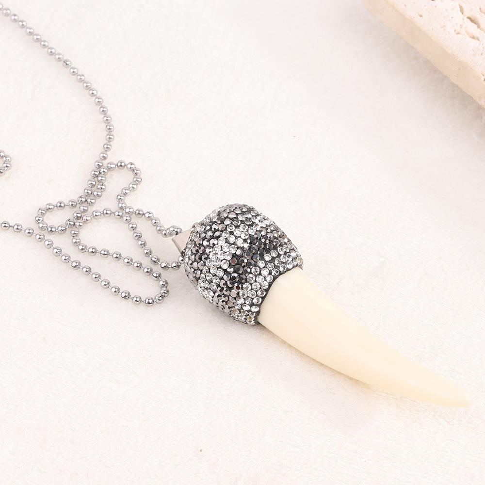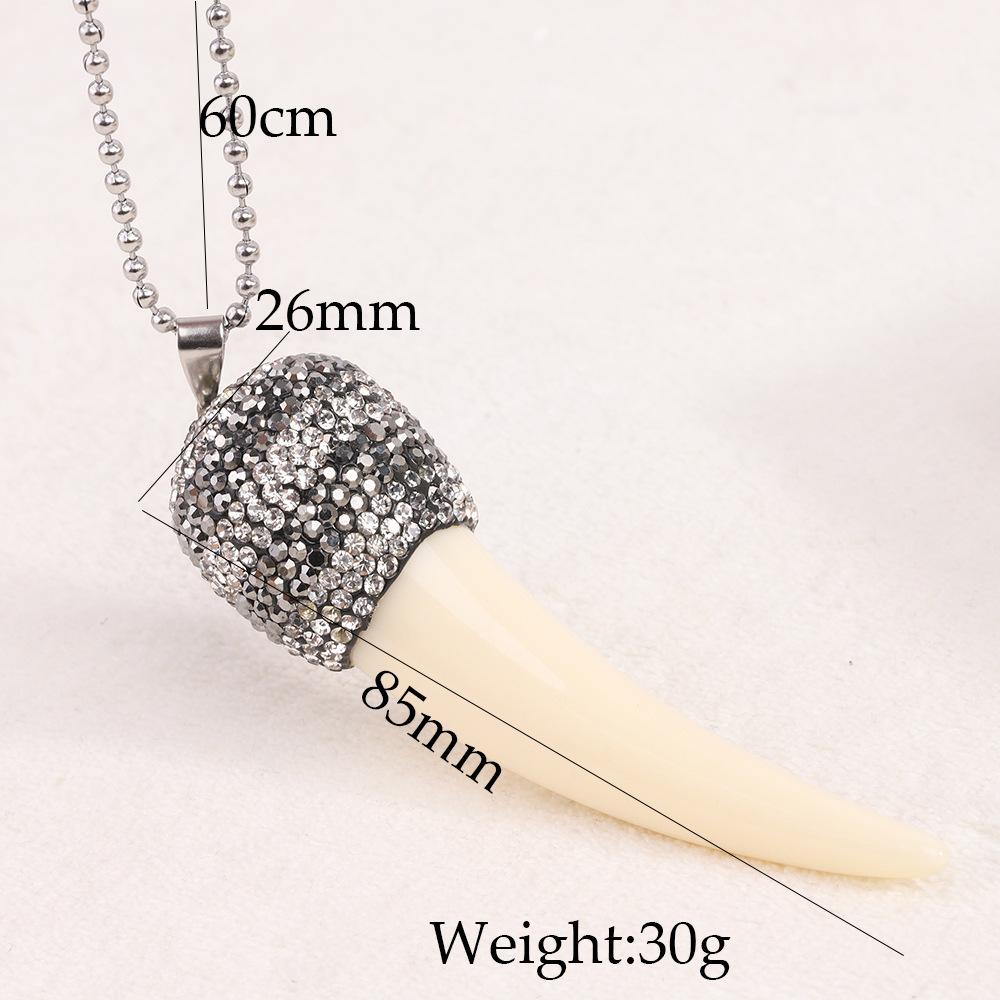 Collar Transfronterizo Estilo Caliente Retro Punk Dominante Forma Diente de Lobo Collar Colgante de Diamante Personalizado Cadena para Suéter Venta al Por Mayor