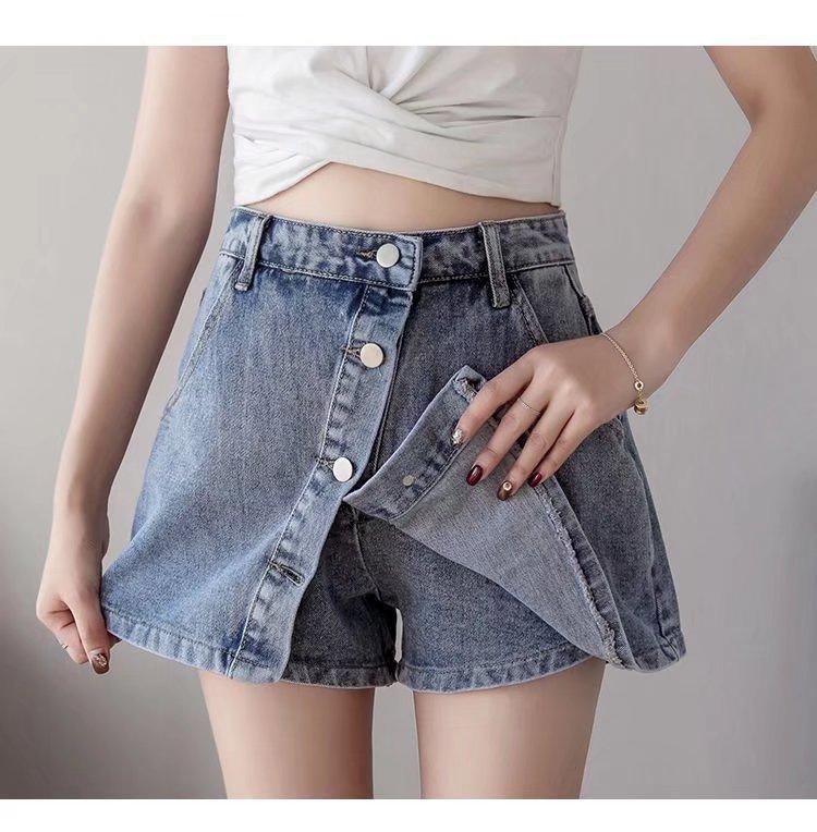 Falda de mezclilla para mujer talla grande 2023 verano nueva estudiante versión coreana de cintura alta suelta pierna ancha falda al por mayor