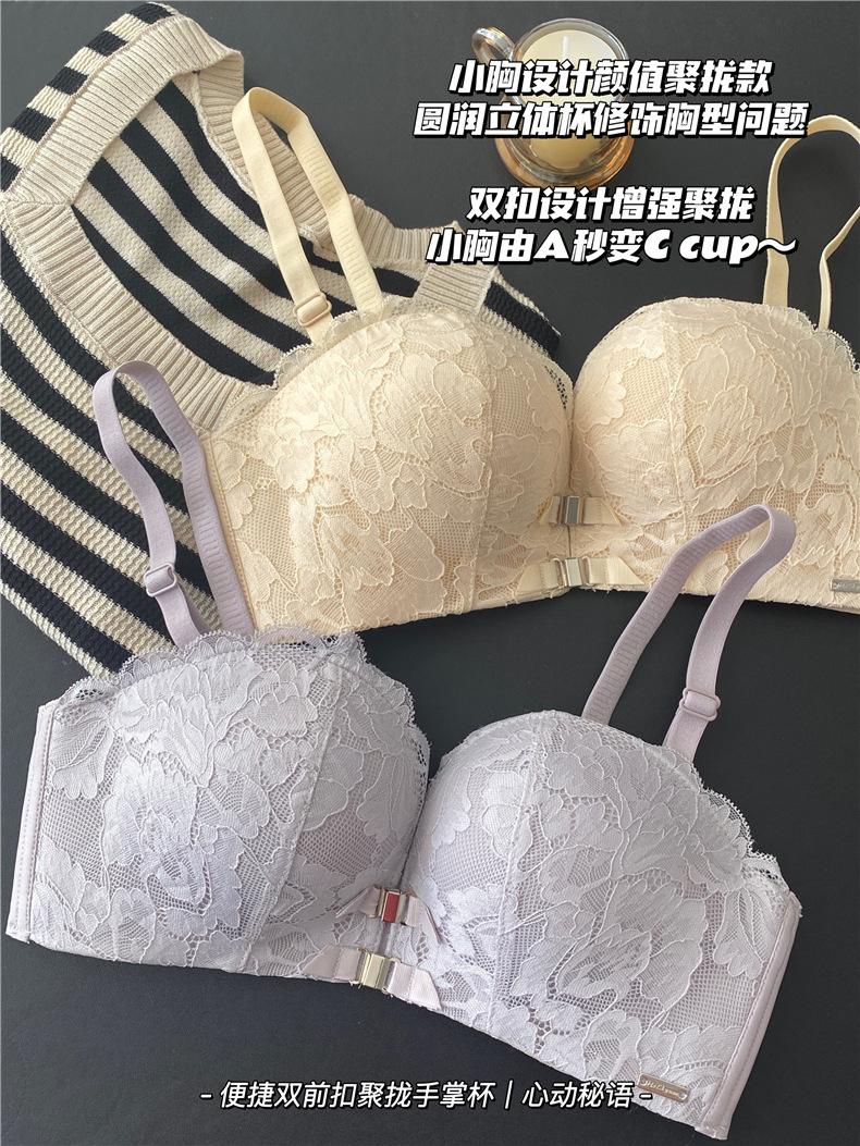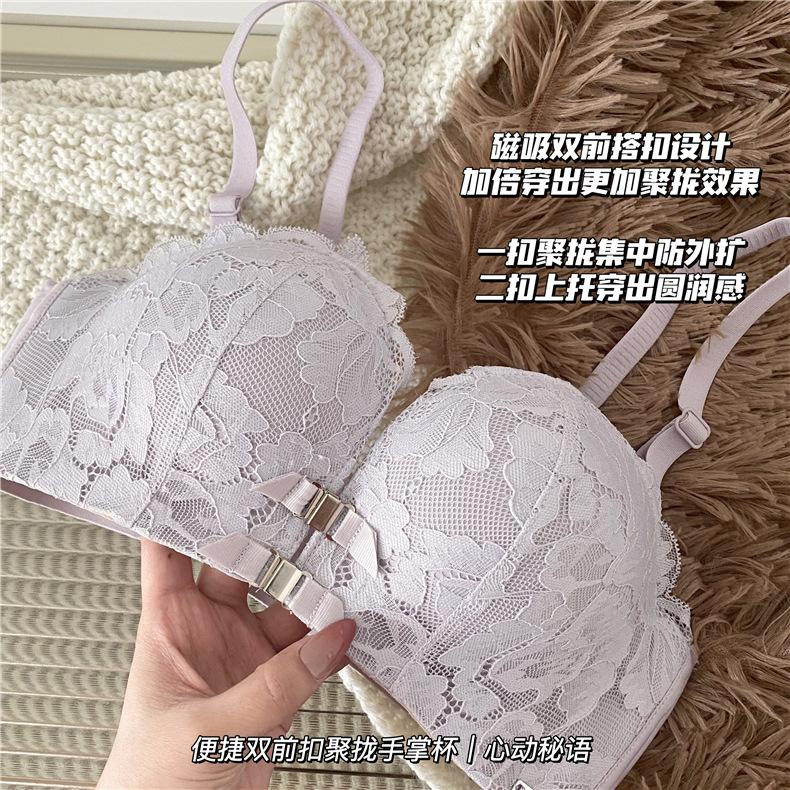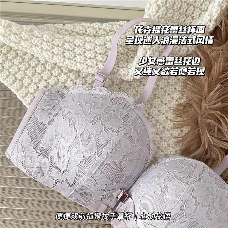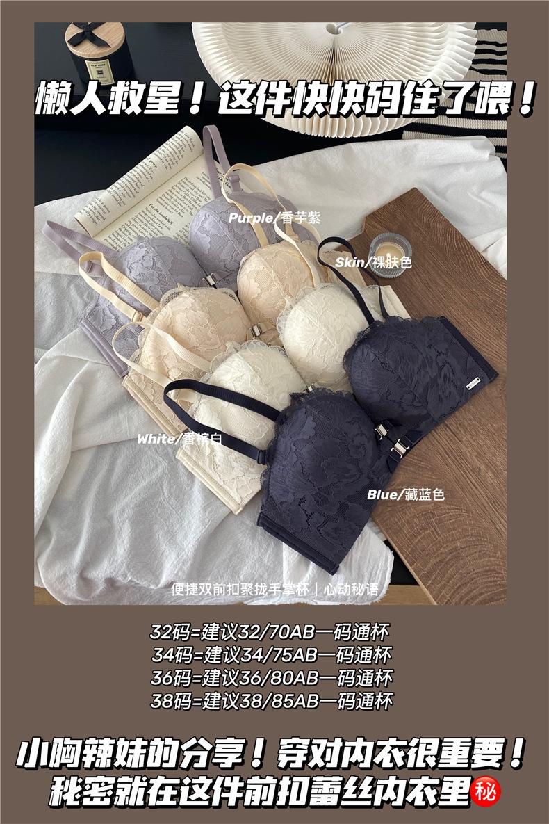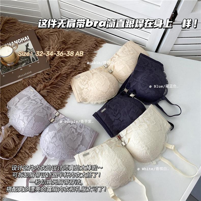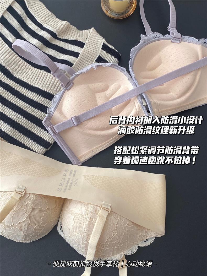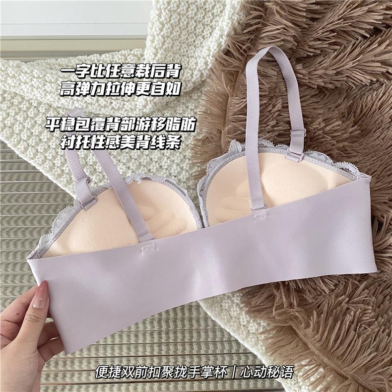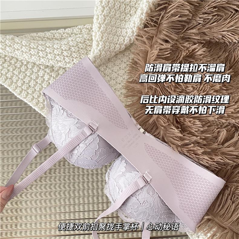 Nuevo Encaje Frente Hebilla Pecho Pequeño Push-up Sin Aros de Acero Sujetador Sin Marcas Sin Tirantes Antideslizante Ajustable Traje de Ropa Interior