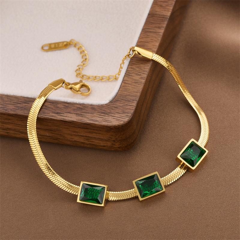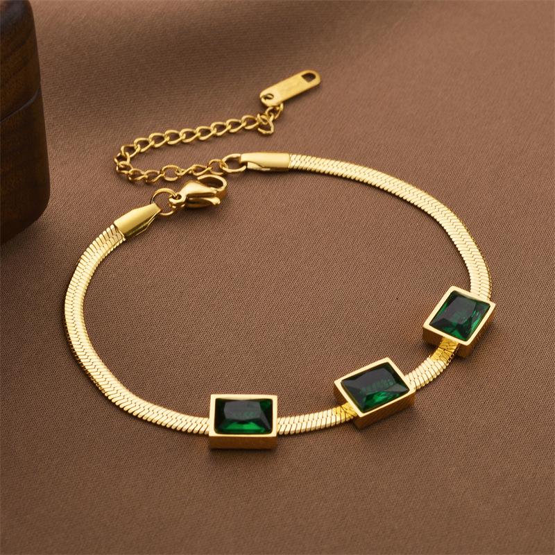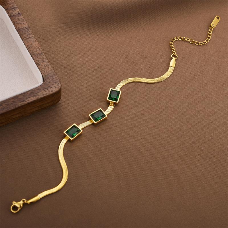 Pulsera transfronteriza nueva Cuadrado Esmeralda de acero inoxidable para mujer pulsera simple elegante de lujo cadena de hueso de serpiente joyería al por mayor