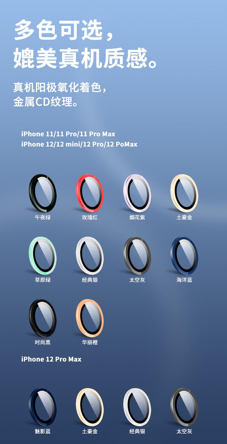 Nuestro lente Hawkeye utiliza tratamiento antirreflejo por electrochapado, ¡y la transmitancia se duplicará! Universal para iPhone11/iphone12mini/iphone12, universal para iPhone11Pro/iphone11pro max/iphone12Pro, iPhone12pro max es separado, según el color de la máquina original 4 colores.