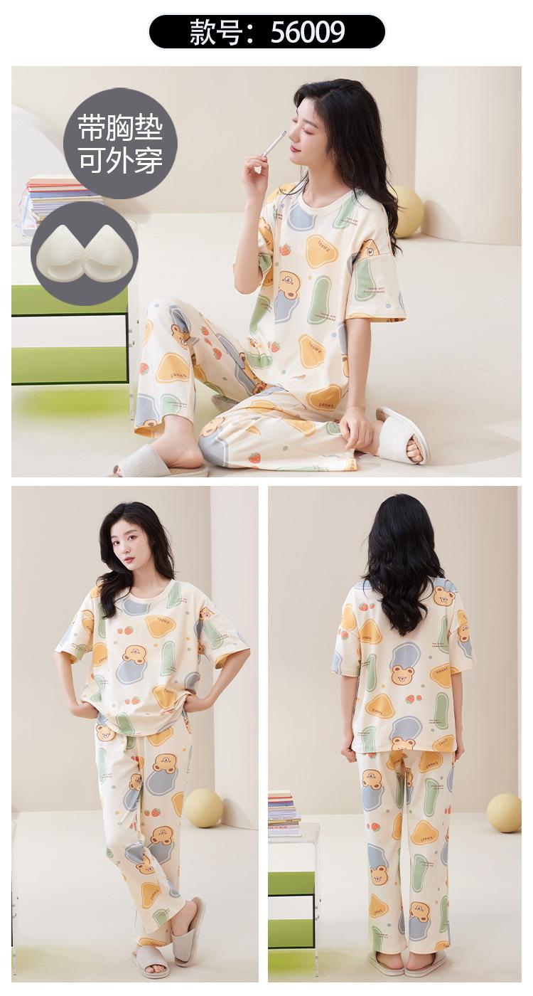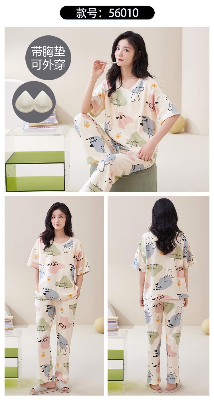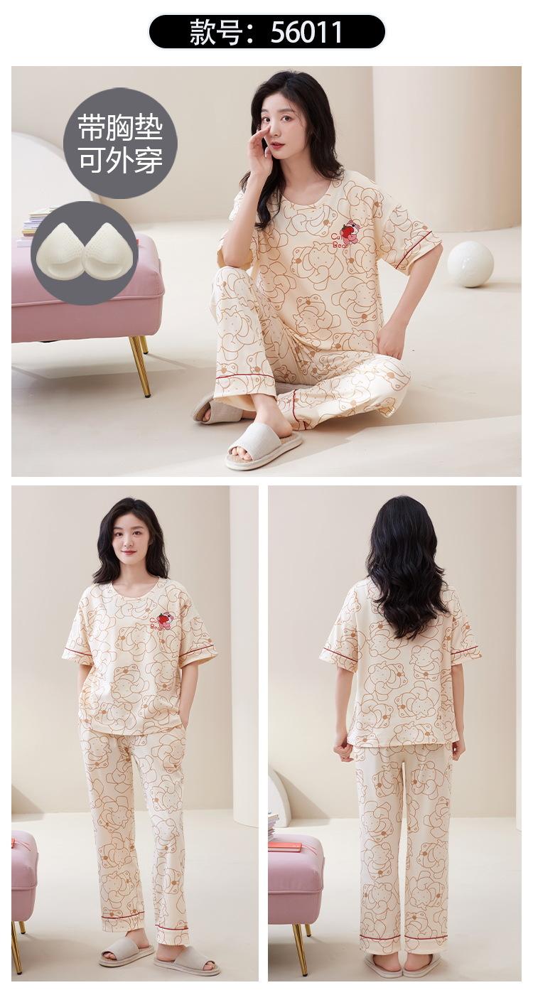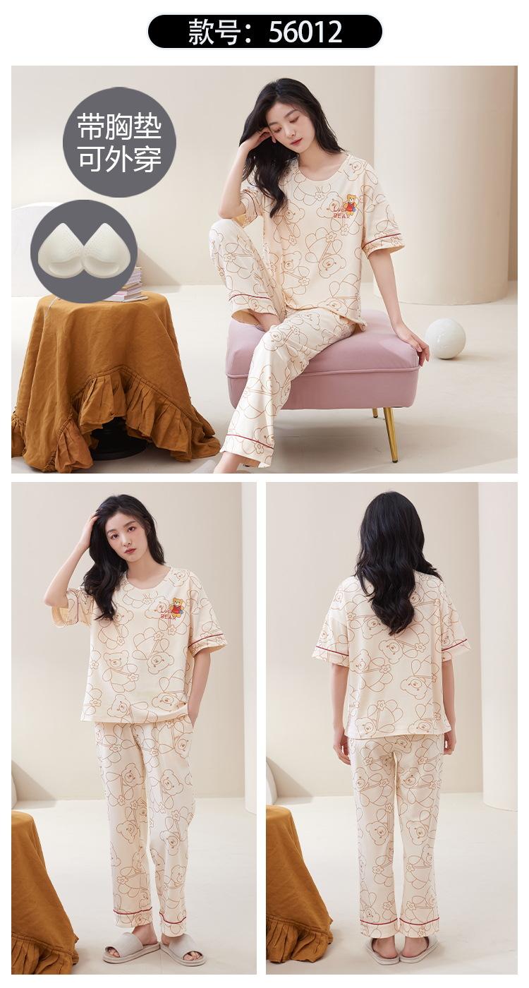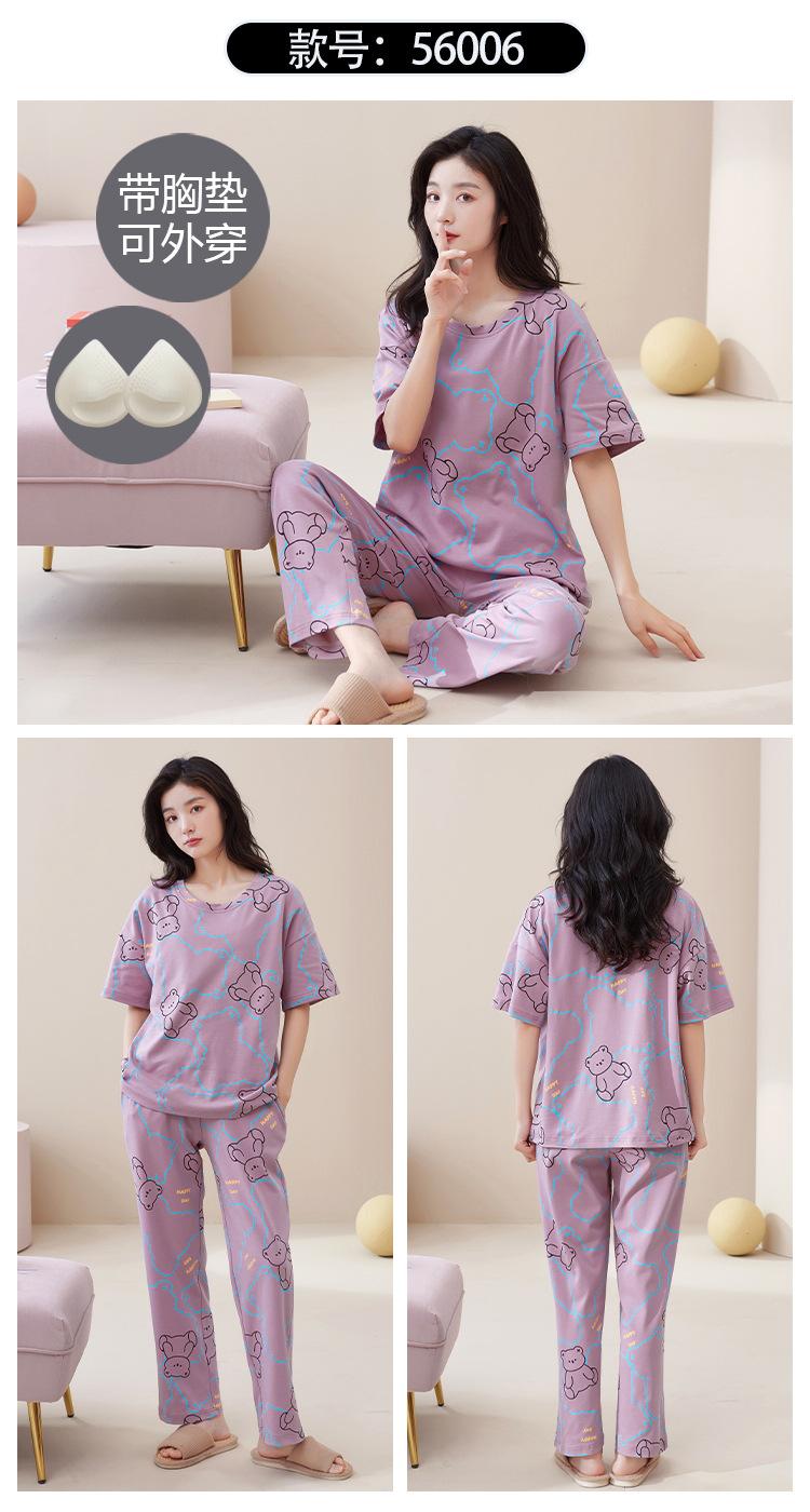 Pijama de algodón para mujer, estilo lindo de dibujos animados con almohadilla para el pecho, pantalones de manga corta, ropa de abrigo holgada para el hogar.