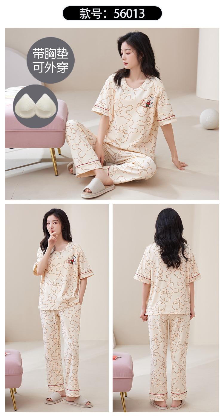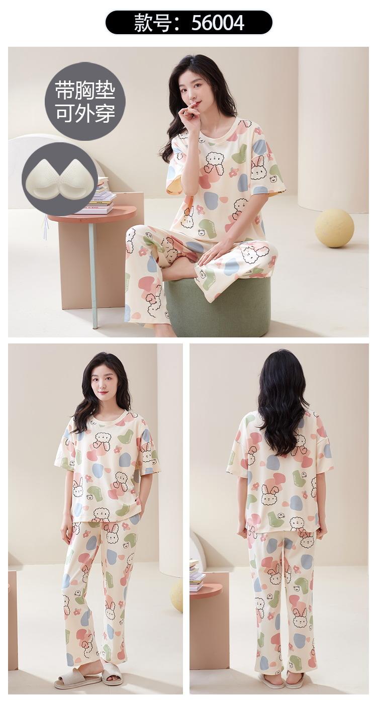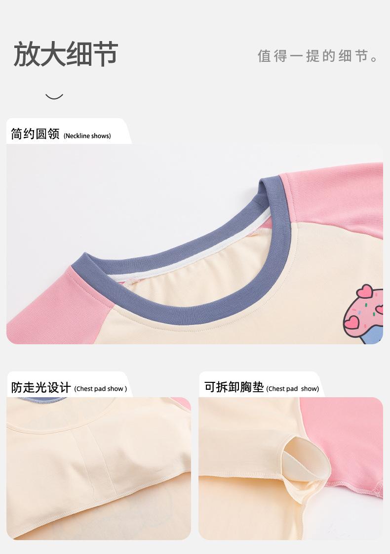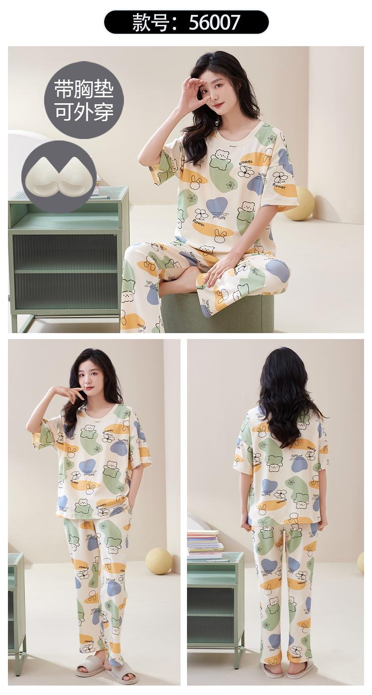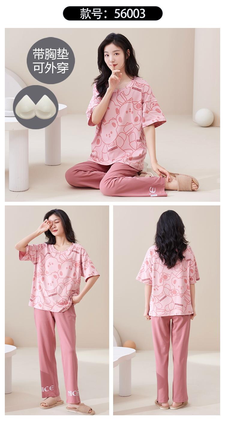 Pijama de algodón para mujer, estilo lindo de dibujos animados con almohadilla para el pecho, pantalones de manga corta, ropa de abrigo holgada para el hogar.