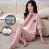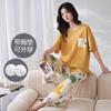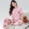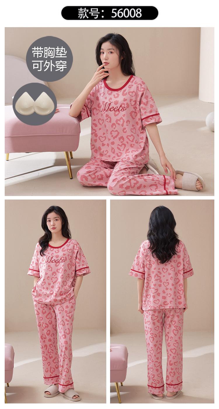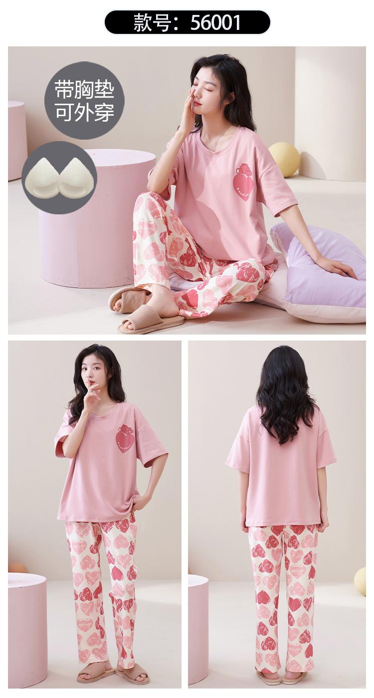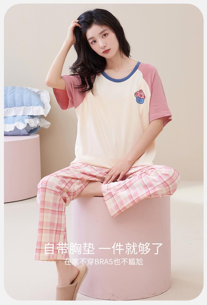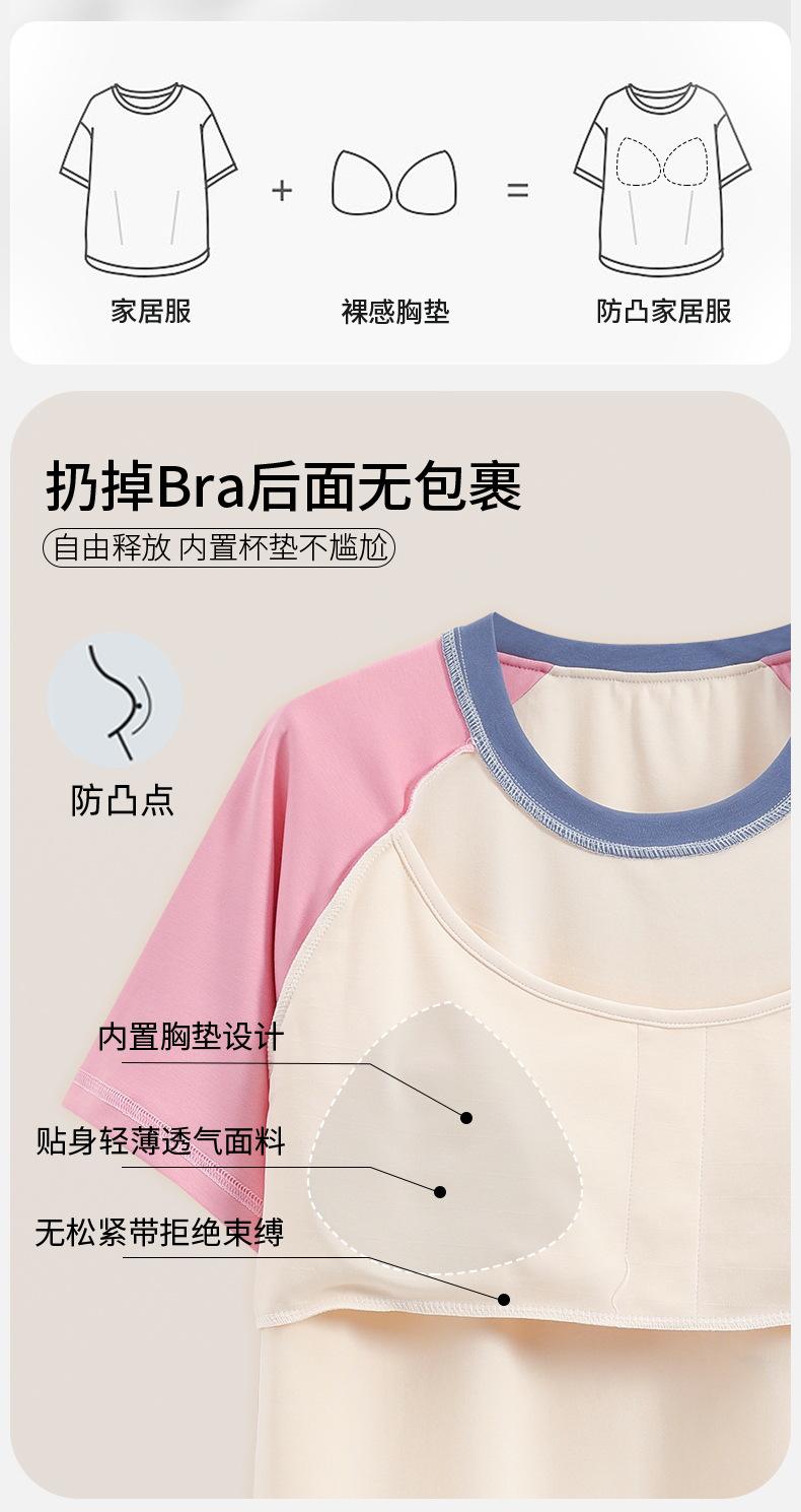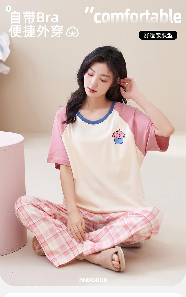 Pijama de algodón para mujer, estilo lindo de dibujos animados con almohadilla para el pecho, pantalones de manga corta, ropa de abrigo holgada para el hogar.