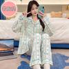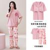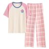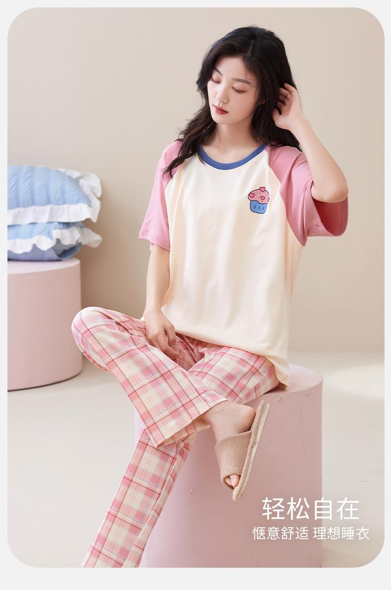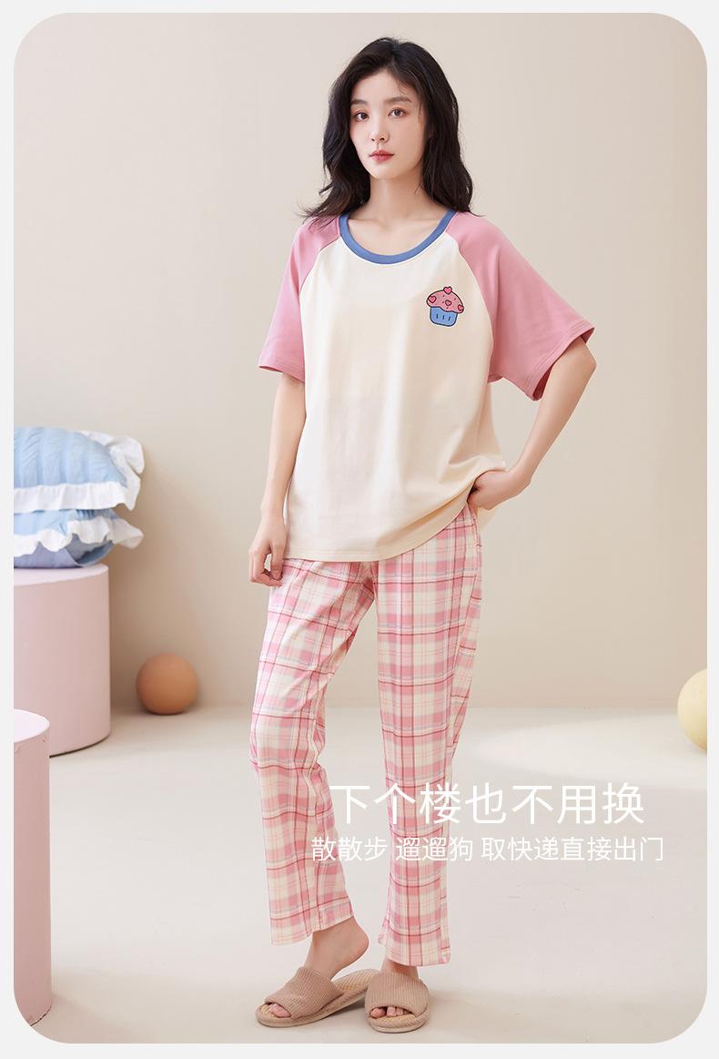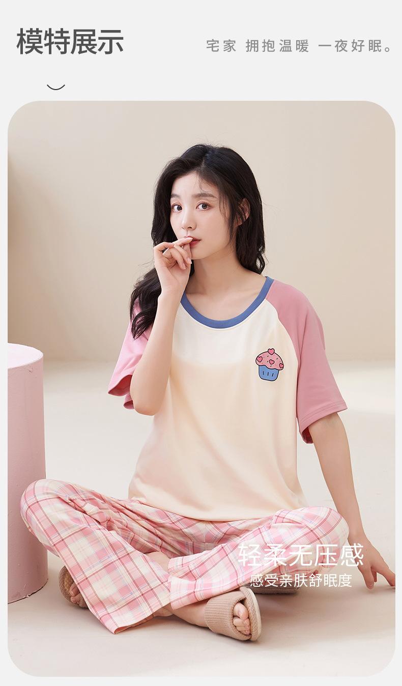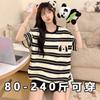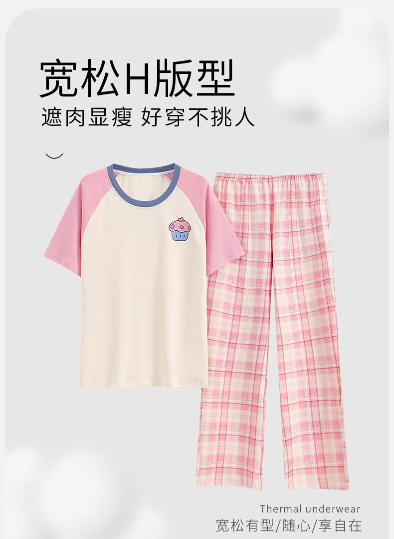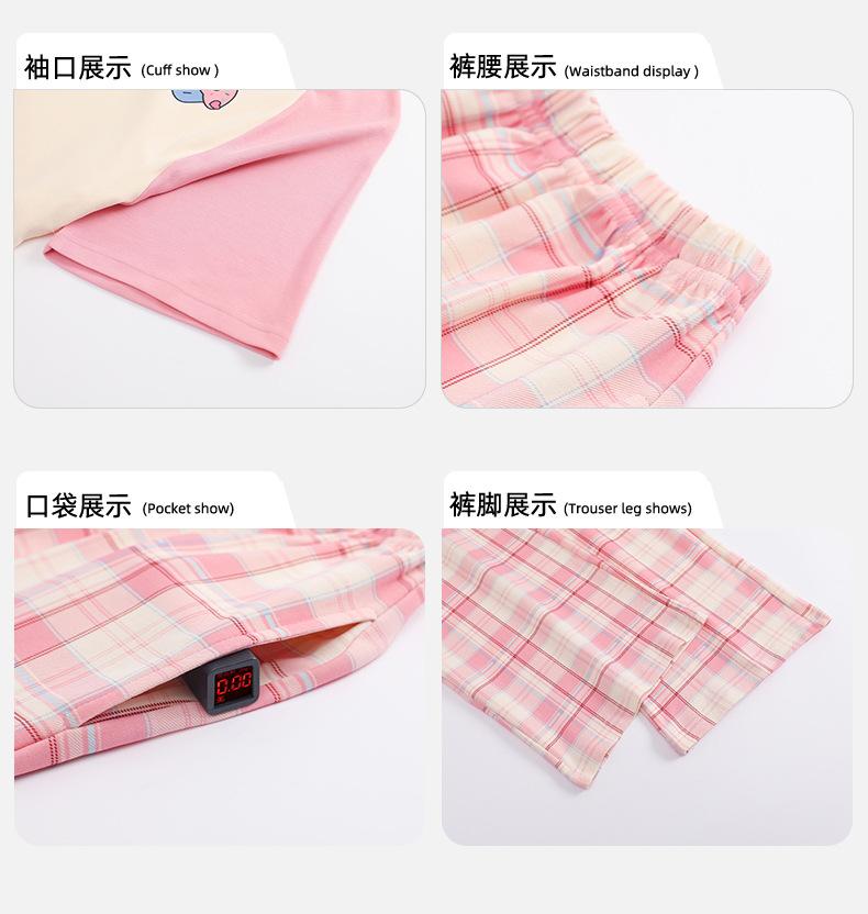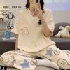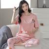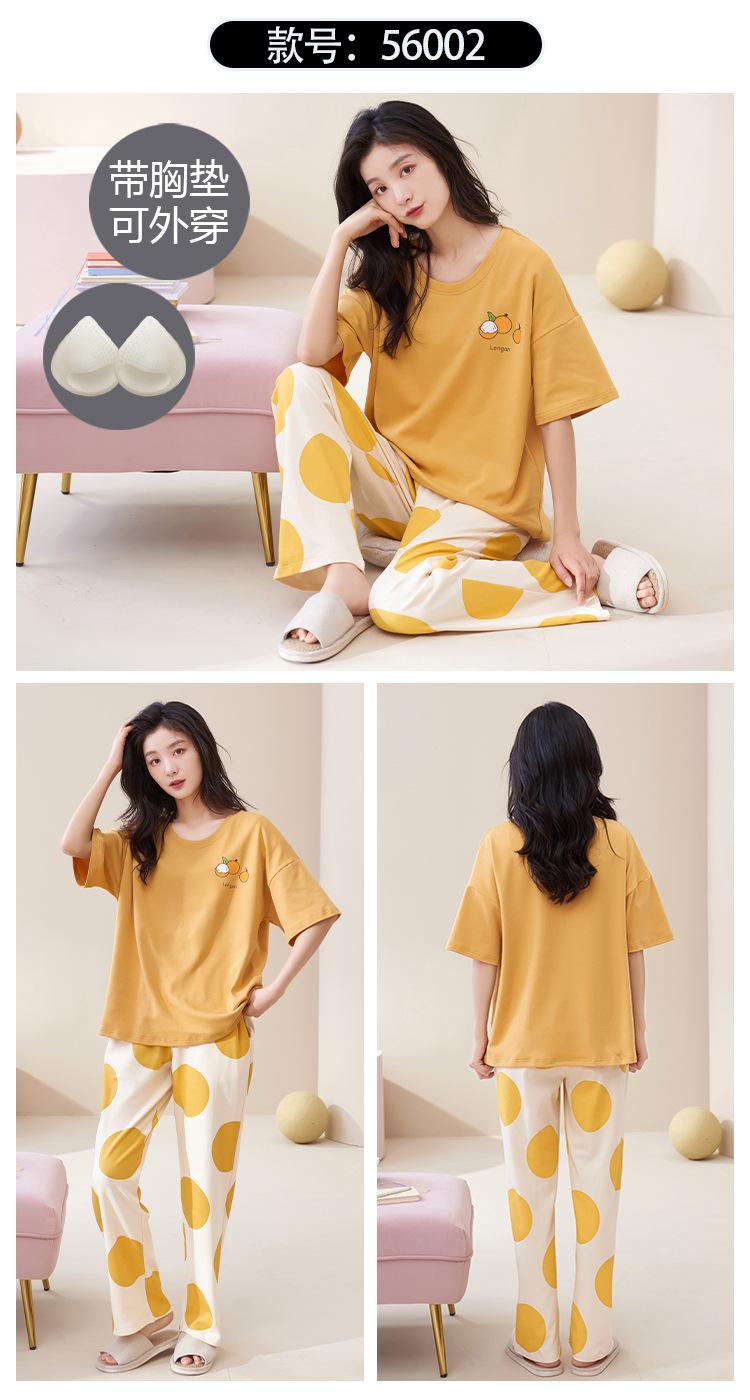 Pijama de algodón para mujer, estilo lindo de dibujos animados con almohadilla para el pecho, pantalones de manga corta, ropa de abrigo holgada para el hogar.