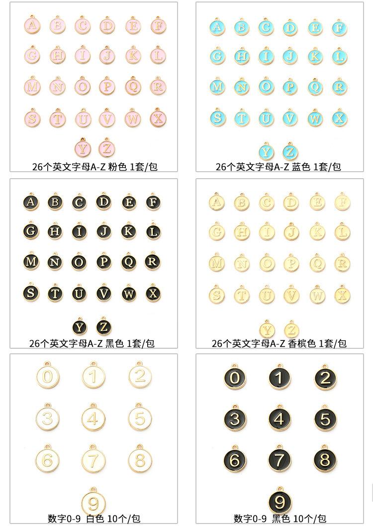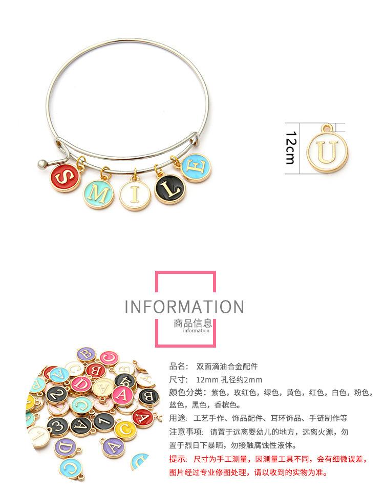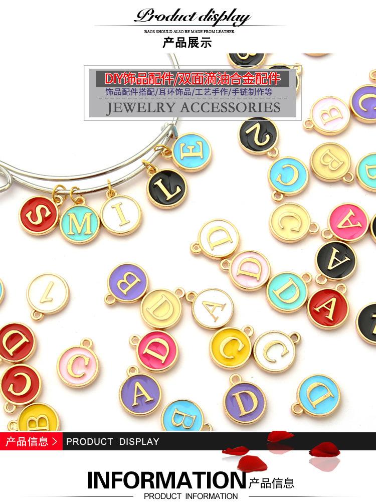 Accesorios de aleación con letras en inglés, gota de aceite de doble cara de color, hechos a mano, pulsera, accesorios de joyería, collar, colgante, material