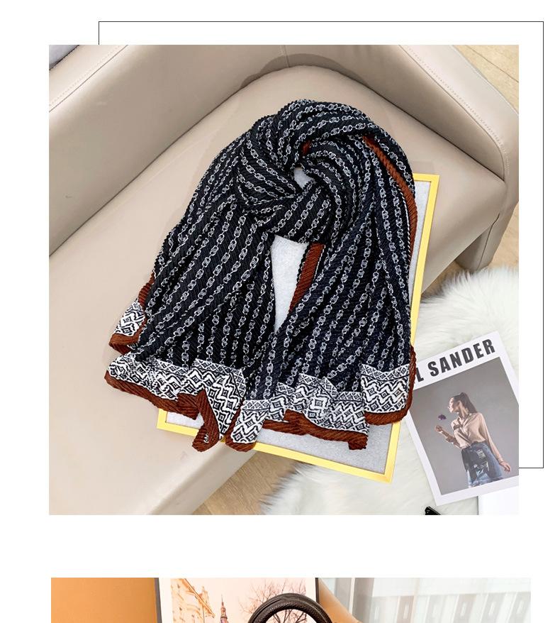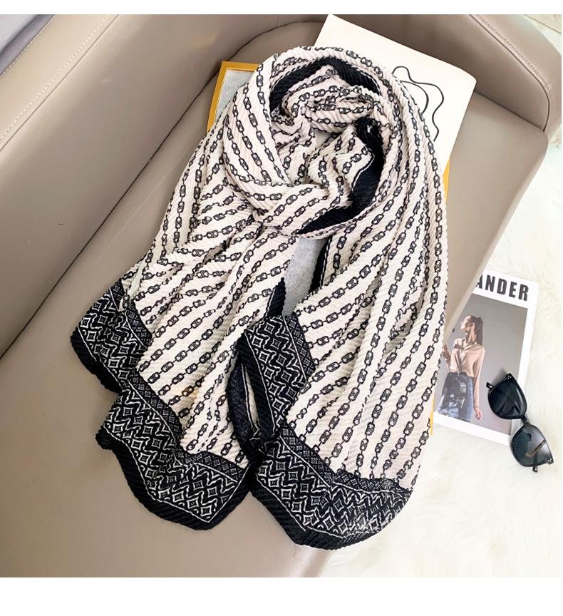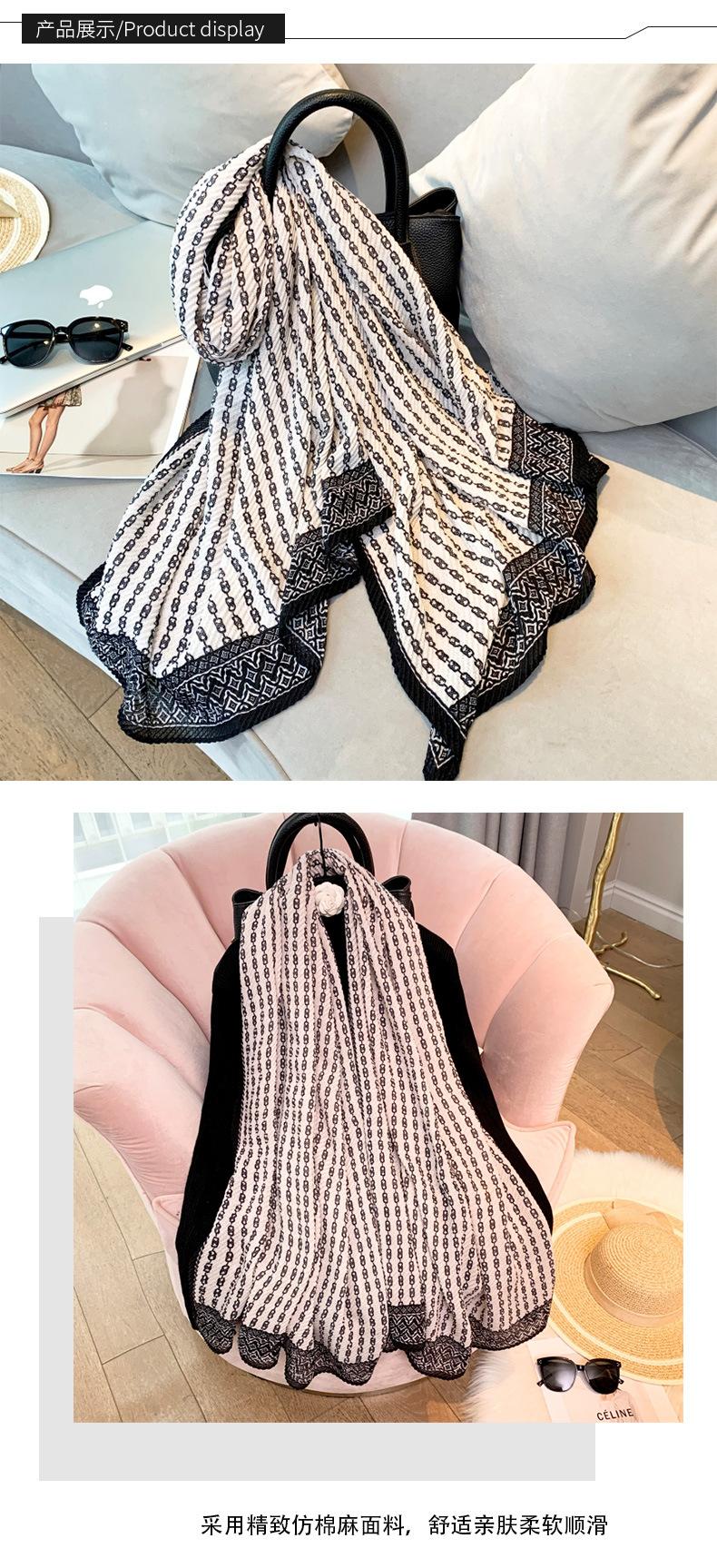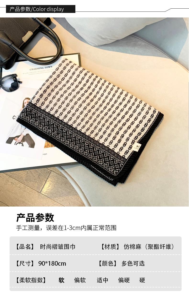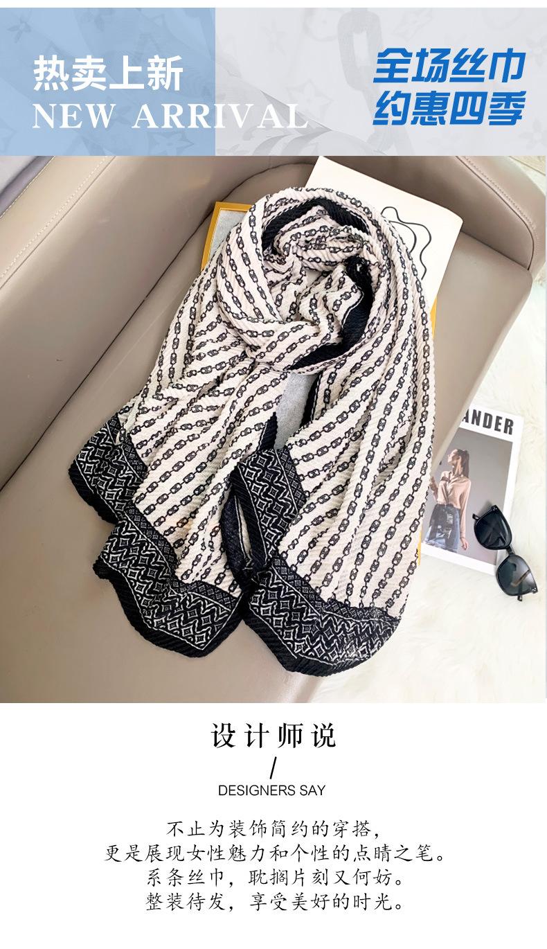 Bufanda plisada de primavera y verano, nueva moda de alta gama, sarga con estampado de cadena blanca, mediana-larga, fina, tacto de algodón y lino