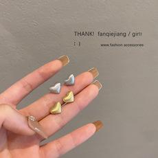 Dos pares de aretes de corazón de metal con aguja de plata 925 para mujer, temperamento pequeño y simple, aretes de celebridad de internet, joyería para la oreja de corazón de niña