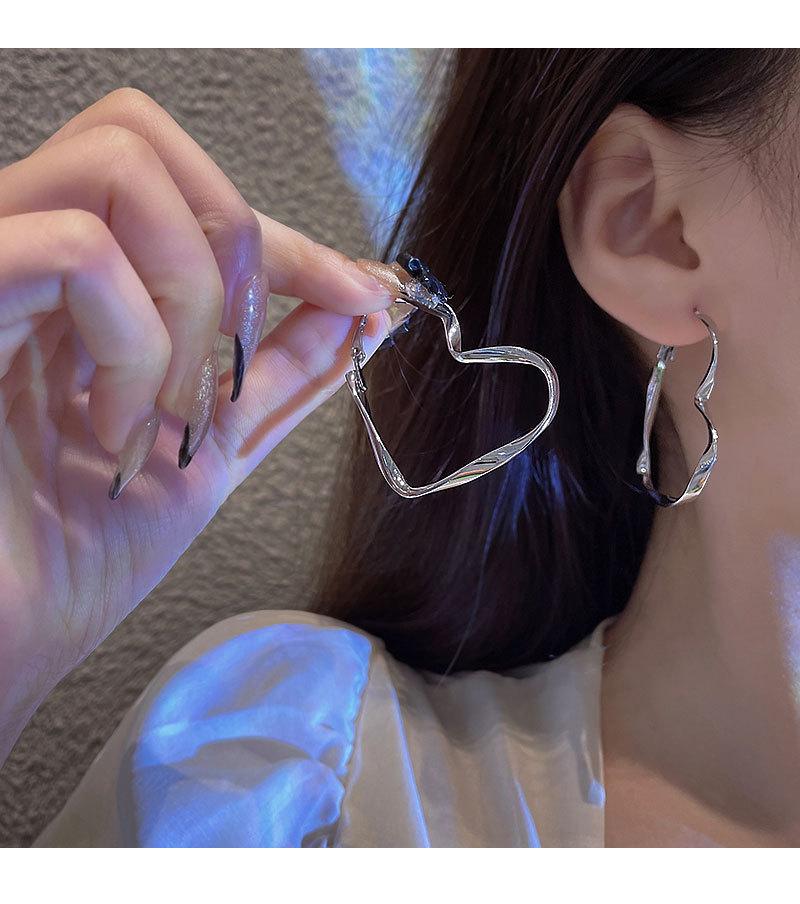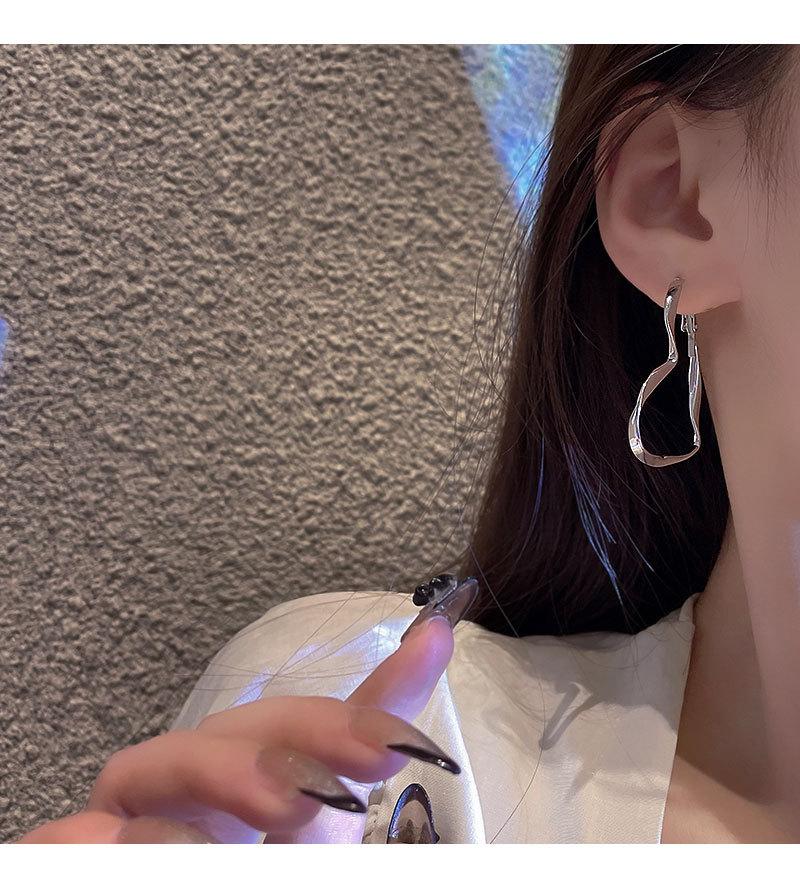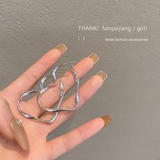 Pendientes de plata irregulares de estilo europeo y americano con diseño de amor, pendientes de personalidad exagerada de alta gama para mujer, joyería de oreja con temperamento de aguja de plata 925