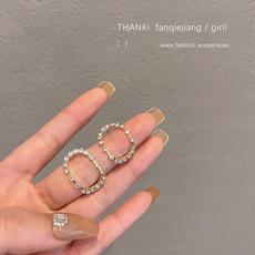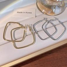 Corea del Sur Dongdaemun aretes geométricos cuadrados aretes de metal de paisaje frío simple mujer aguja de plata 925 joyería para las orejas