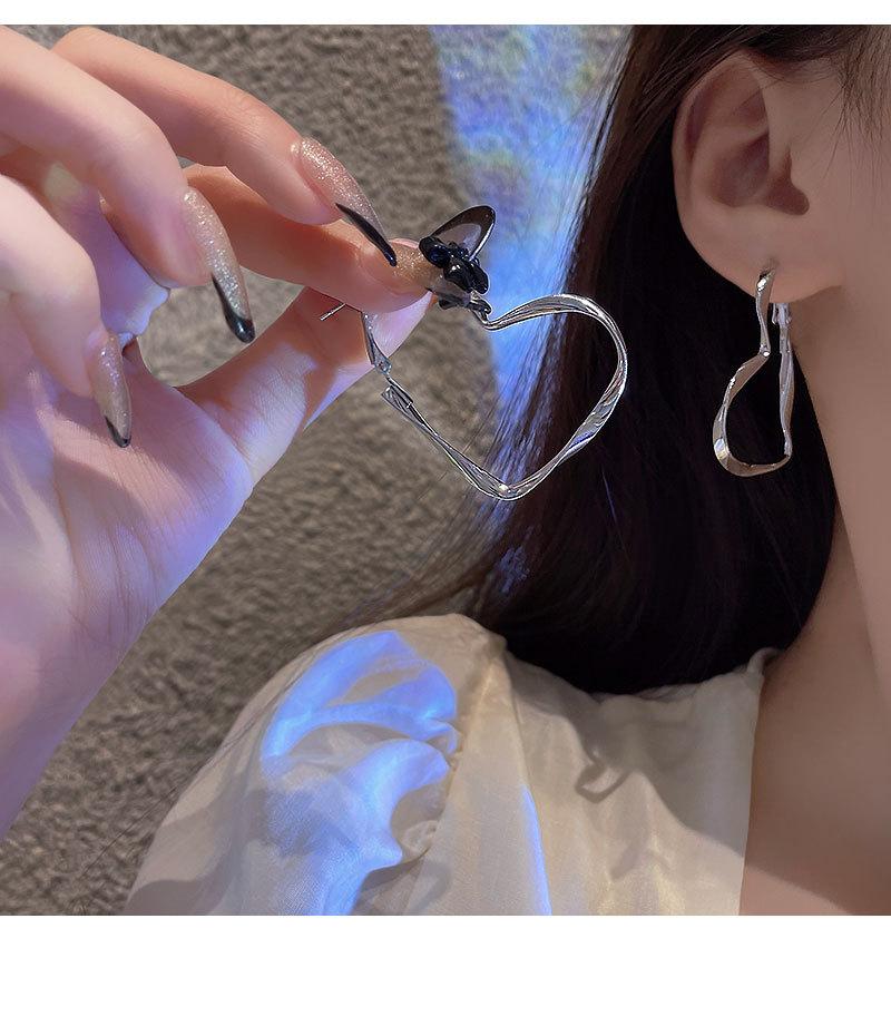 Aretes de corazón irregulares plateados europeos y americanos para mujer, aretes de personalidad exagerada de alta gama, aretes de temperamento con aguja de plata 925