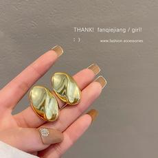Aretes ovalados de metal con aguja de plata S925 para mujer, aretes retro de nicho de estilo frío ins, aretes de personalidad simple francesa