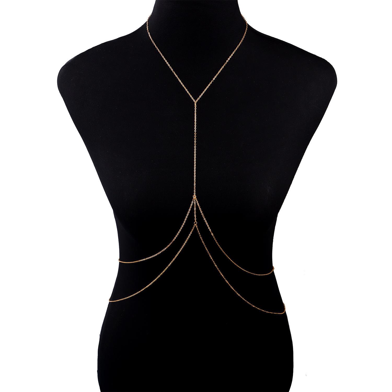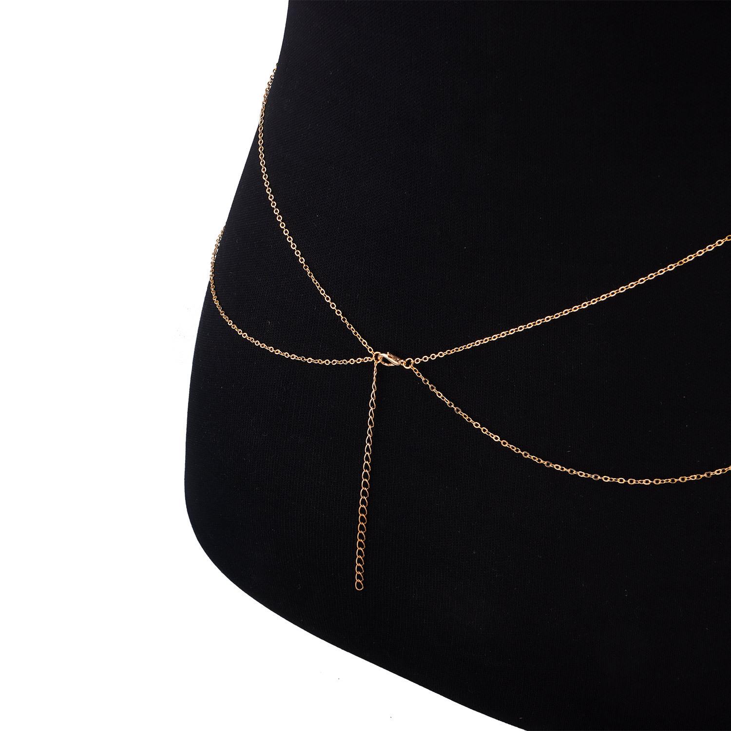Venta al por mayor de joyas europeas y americanas, cadena de cintura simple, cadena corporal multicapa sexy, cadena de metal para bikini sexy transfronterizo para mujer