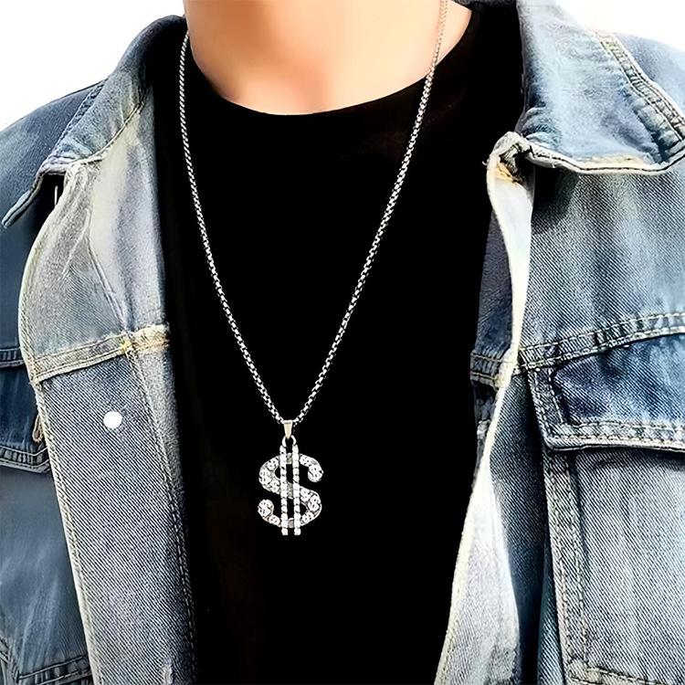 Glittery dollar sign necklace us dollar sign pendant zinc alloy necklace hip hop