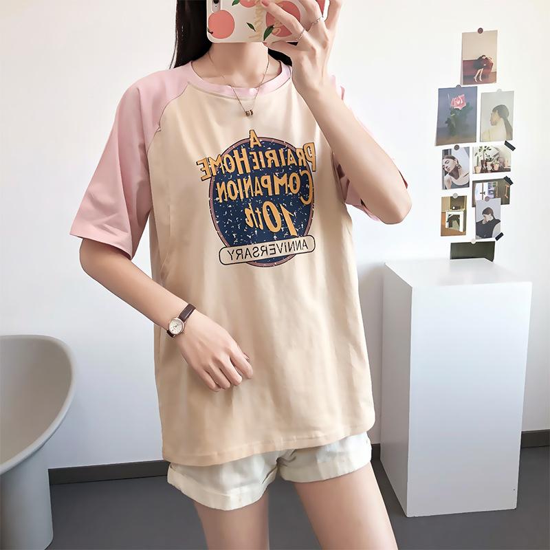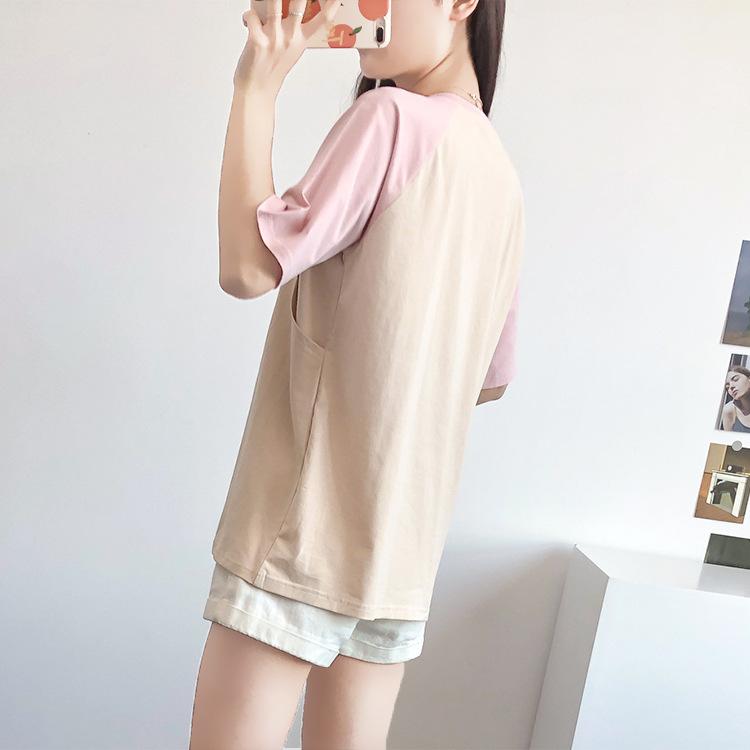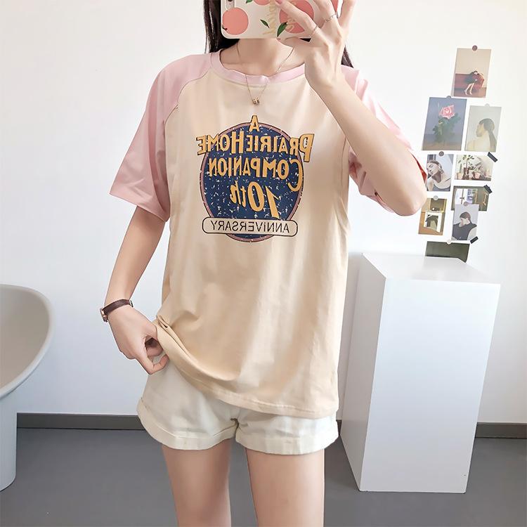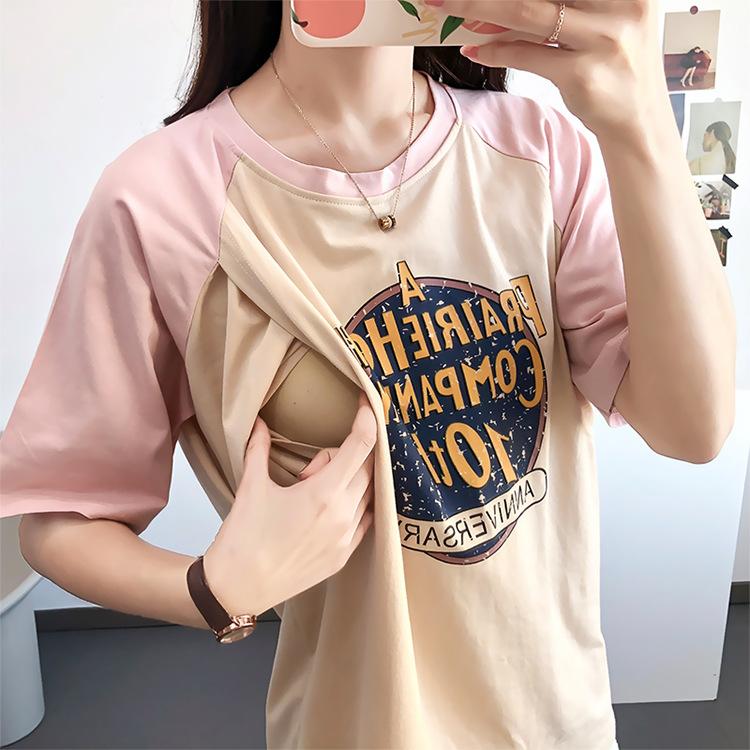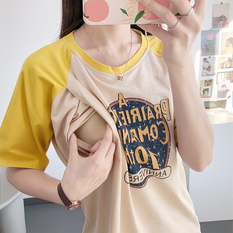 Ropa de lactancia, camiseta de manga corta de algodón puro, top sexy para mamás, pijamas de verano para embarazadas, ropa de maternidad para lactancia posparto.