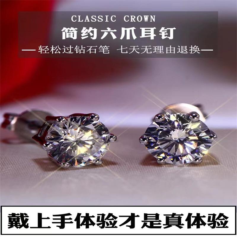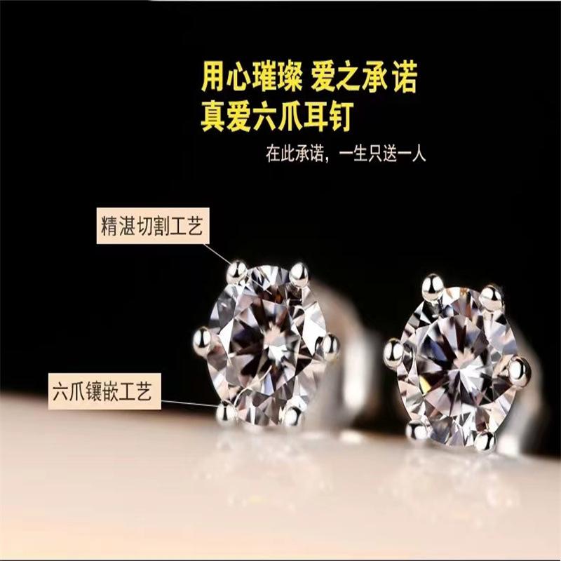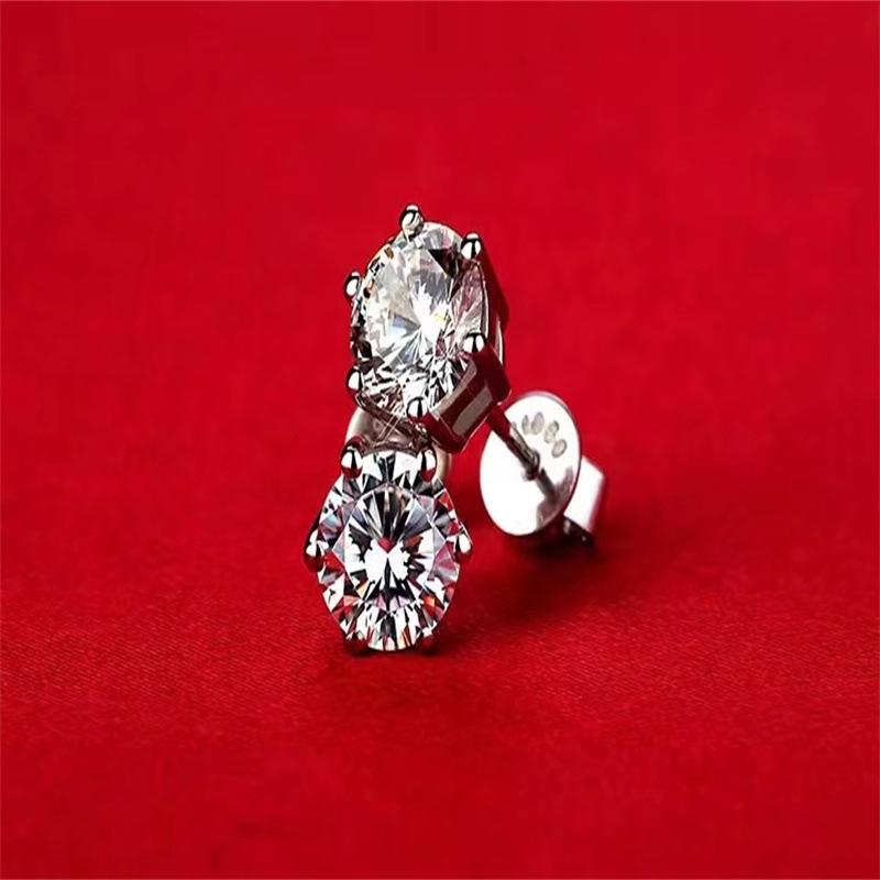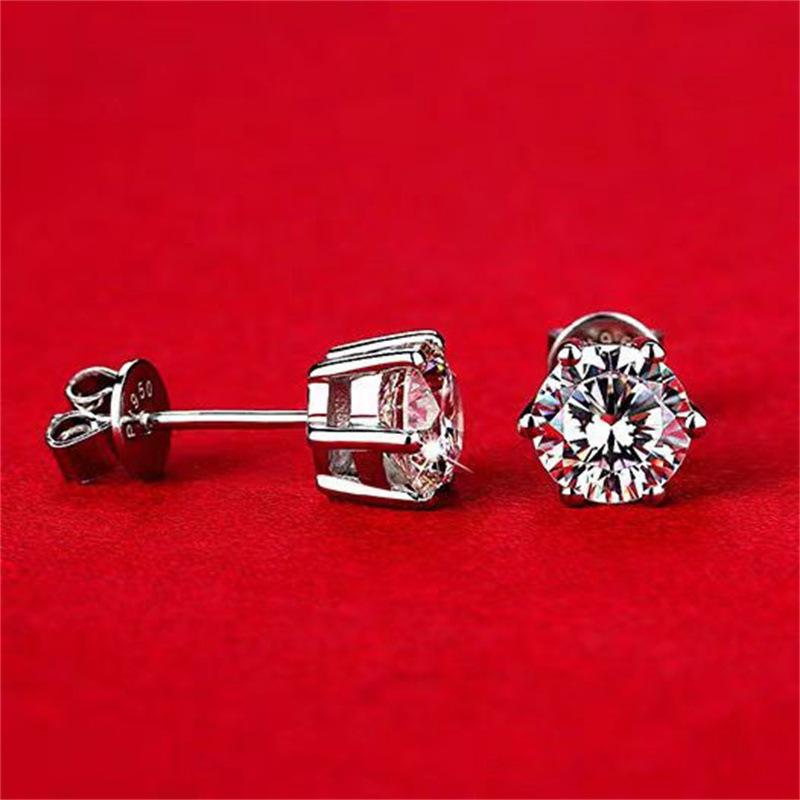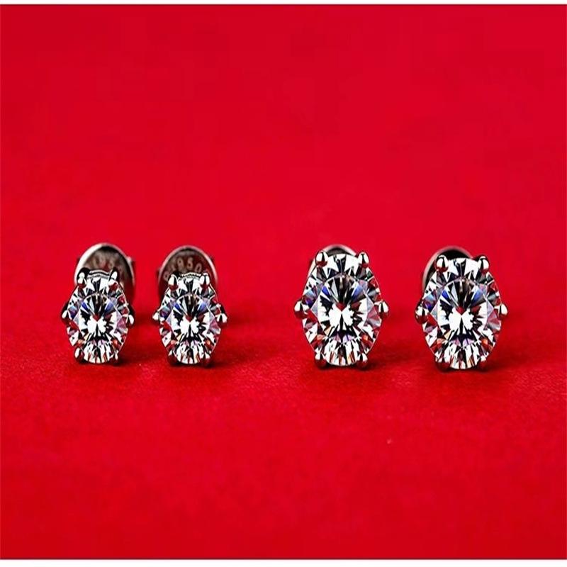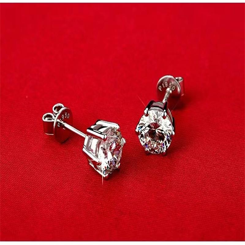 Pendientes de moissanita de platino PT950 con diamantes para hombre y mujer, nuevos y modernos pendientes de seis garras con temperamento de platino de 18 quilates.