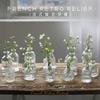 Minijarrón de cristal con relieve retro francés, estilo hidropónico transparente, adorno decorativo de escritorio.