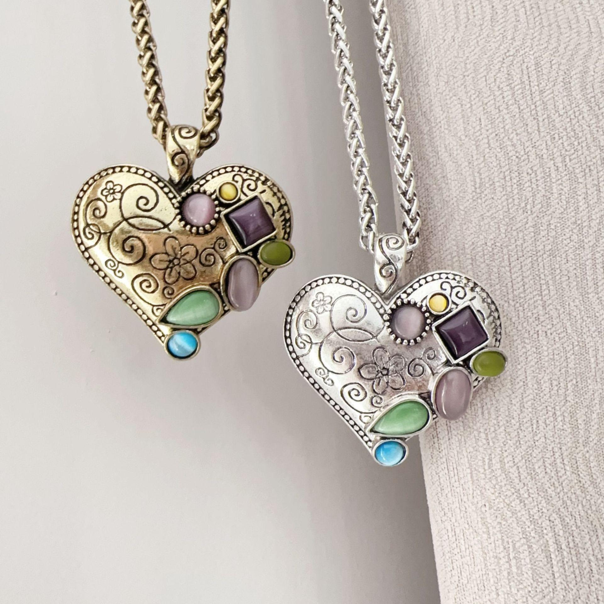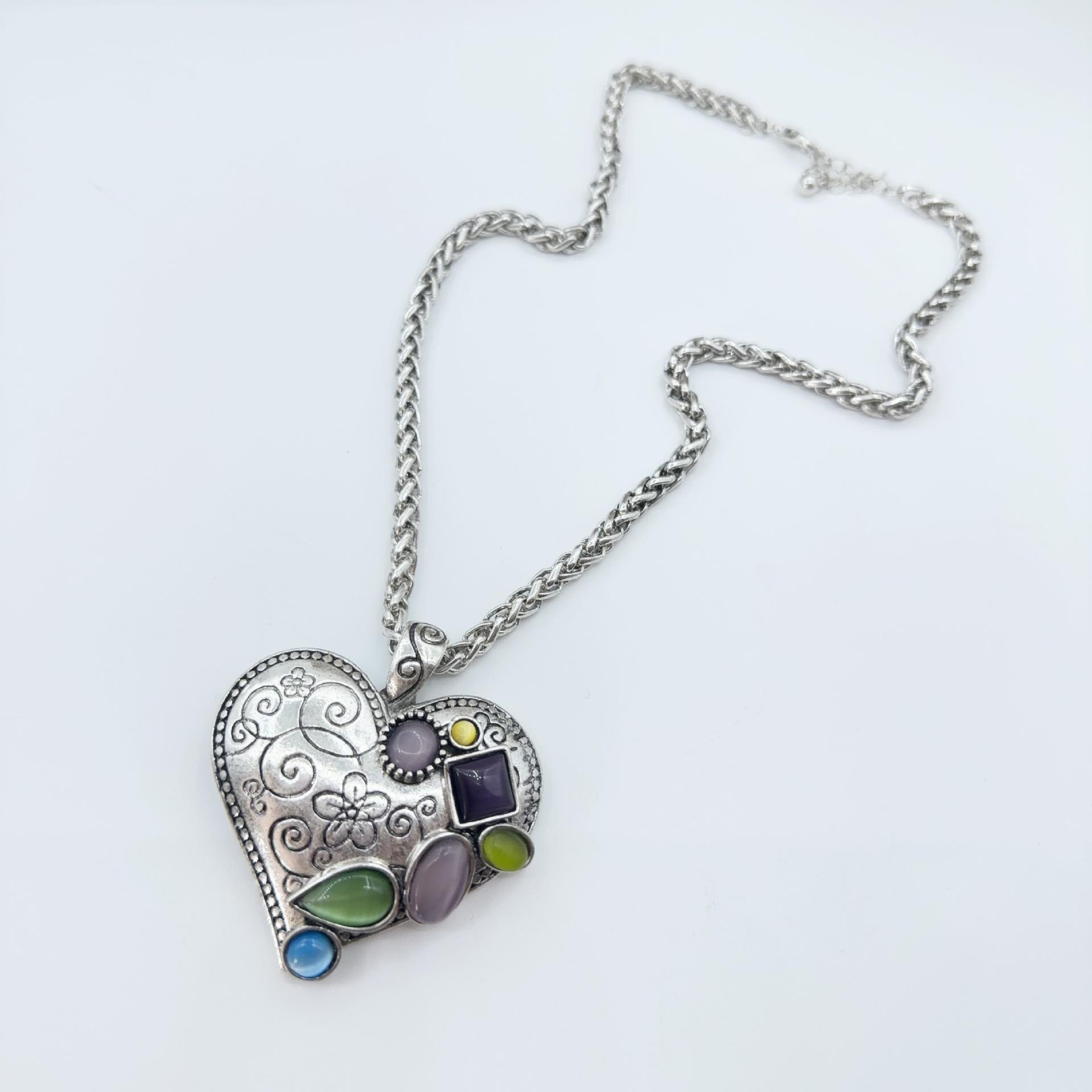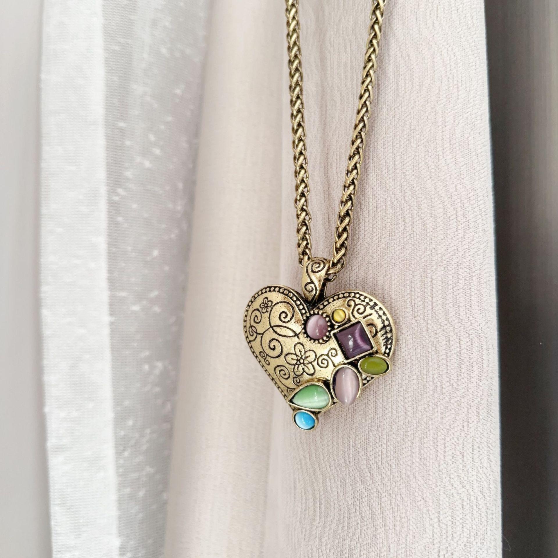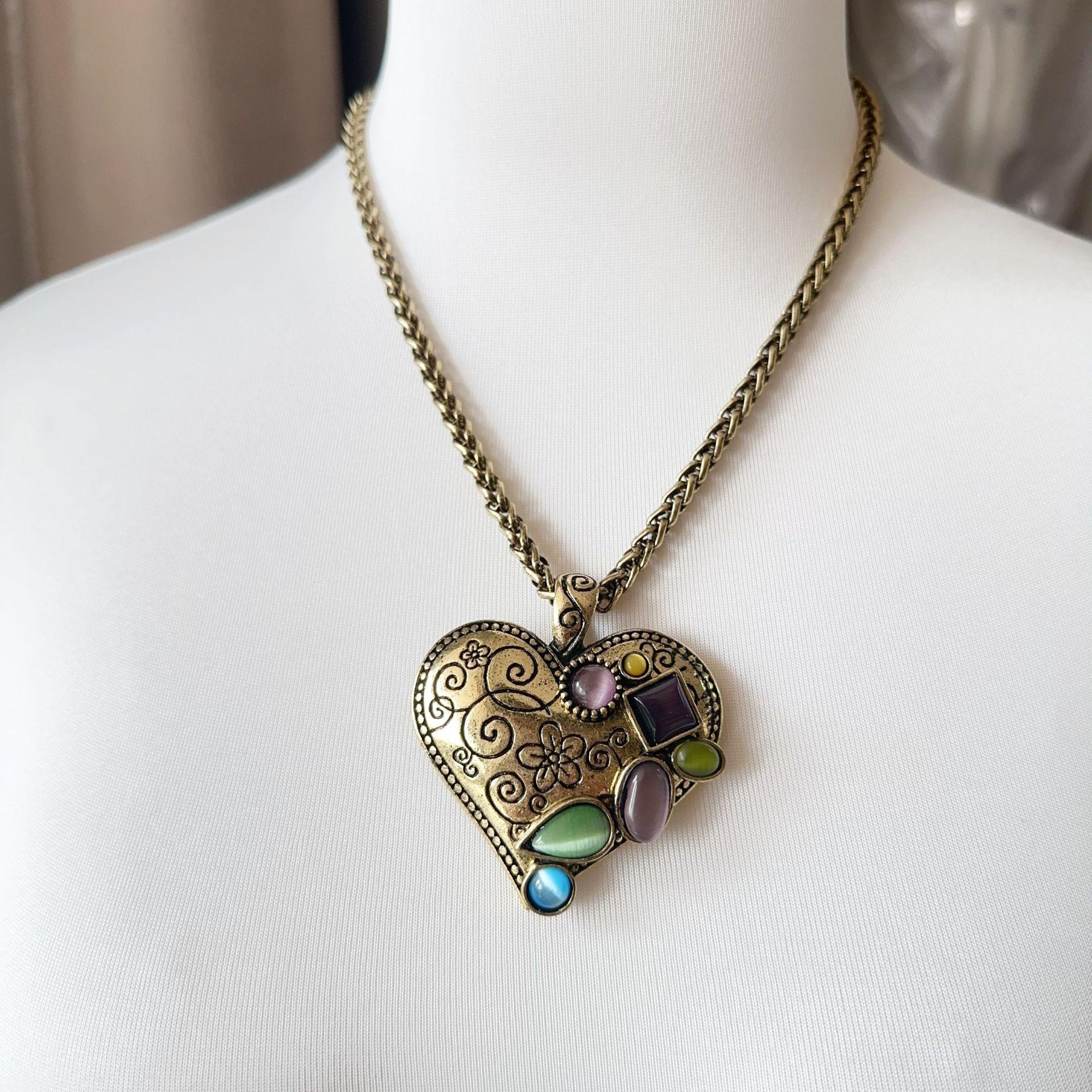 Collar de amor retro, colgante de moda, cadena de clavícula para mujer, personalidad europea y americana, estilo creativo ins, collar en forma de corazón
