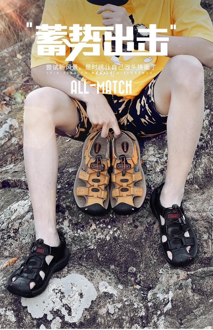 Zapatos de playa cerrados de talla grande para hombre, calzado de viaje al aire libre, calzado para conducir, calzado para vadear, sandalias de piel de vaca, calzado para hombre.