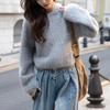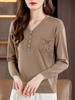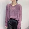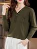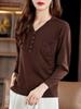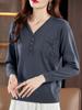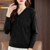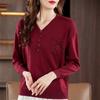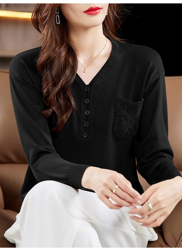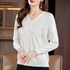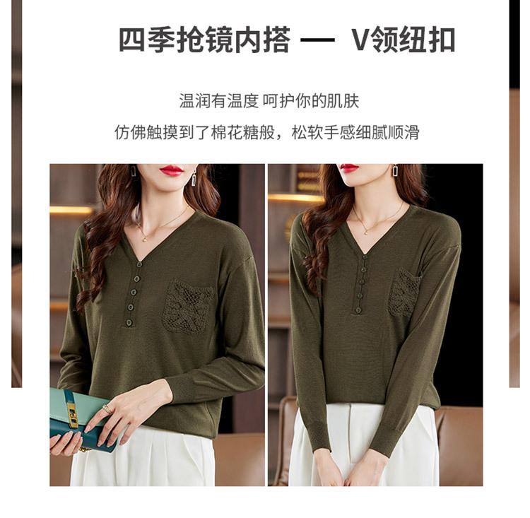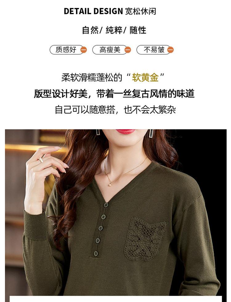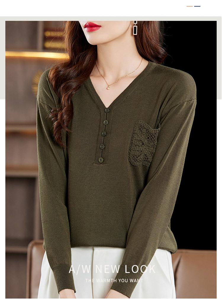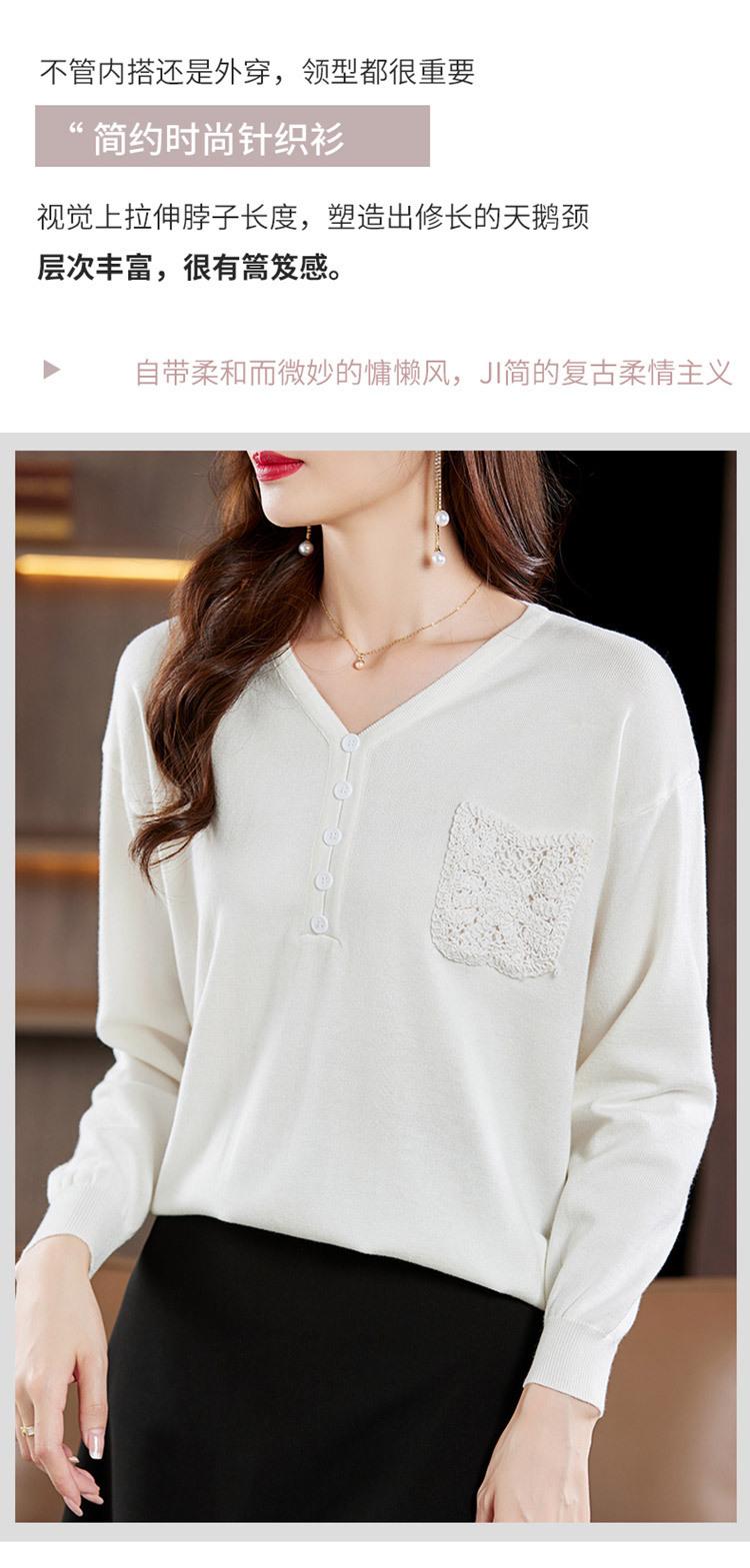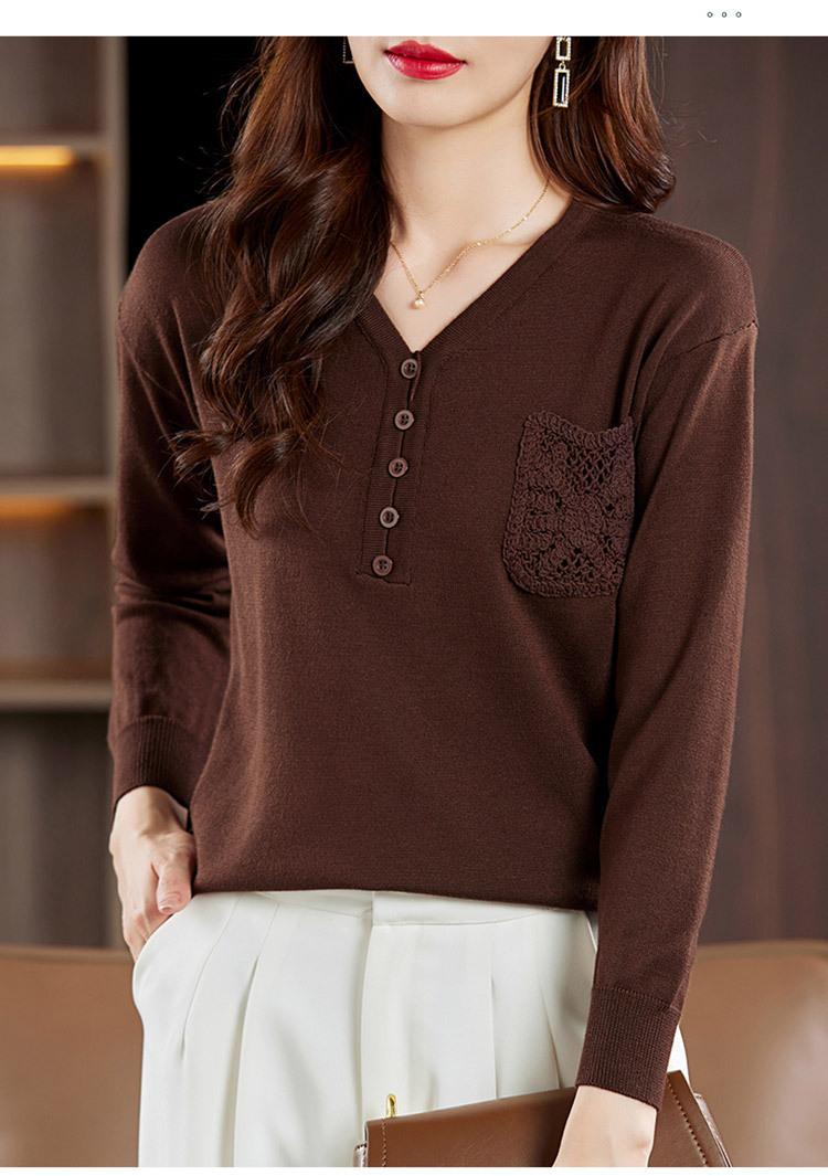 2023 otoño nuevo suéter de punto bordado de color sólido con cuello en V y manga larga para mujer, suéter básico para mamá que combina con todo, top para mujer