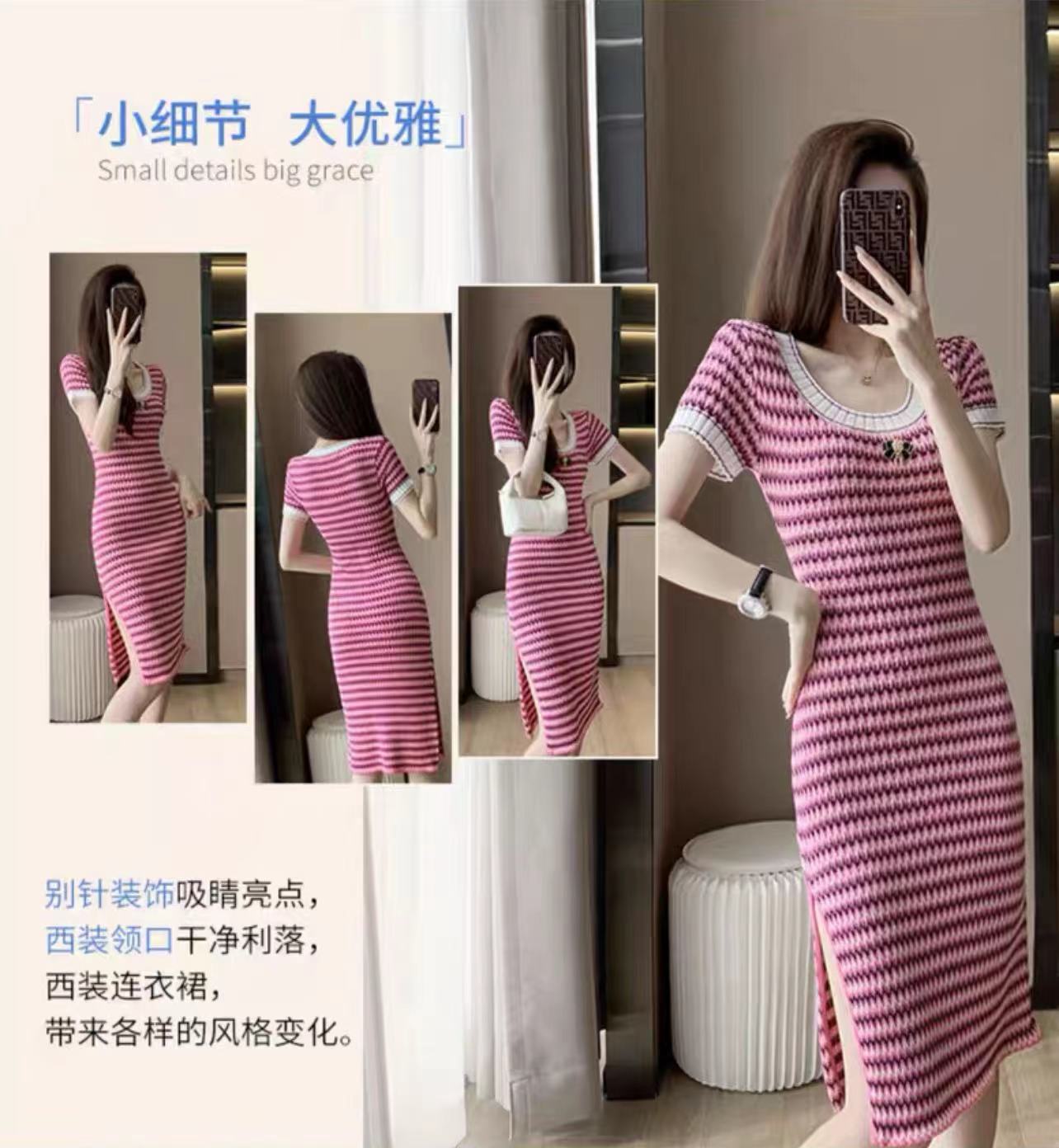 Vestido de Verano para Mujer Estilo Hepburn Francés Frío de Alta Gama con Cintura Entallada Dulce y Sexy Adelgazante con Abertura Vestido de Puro Deseo