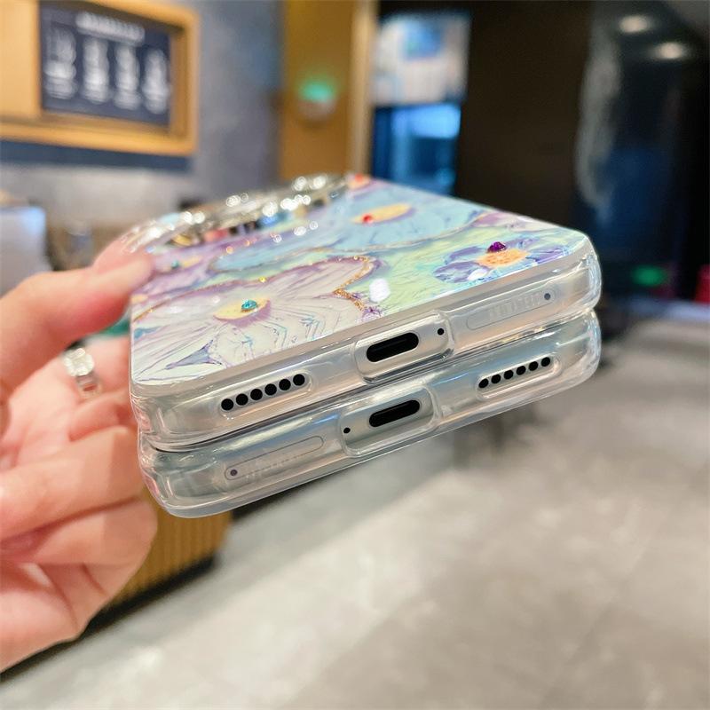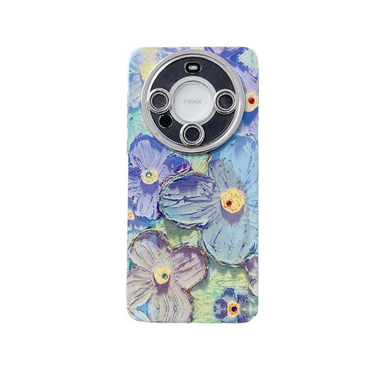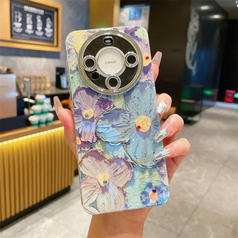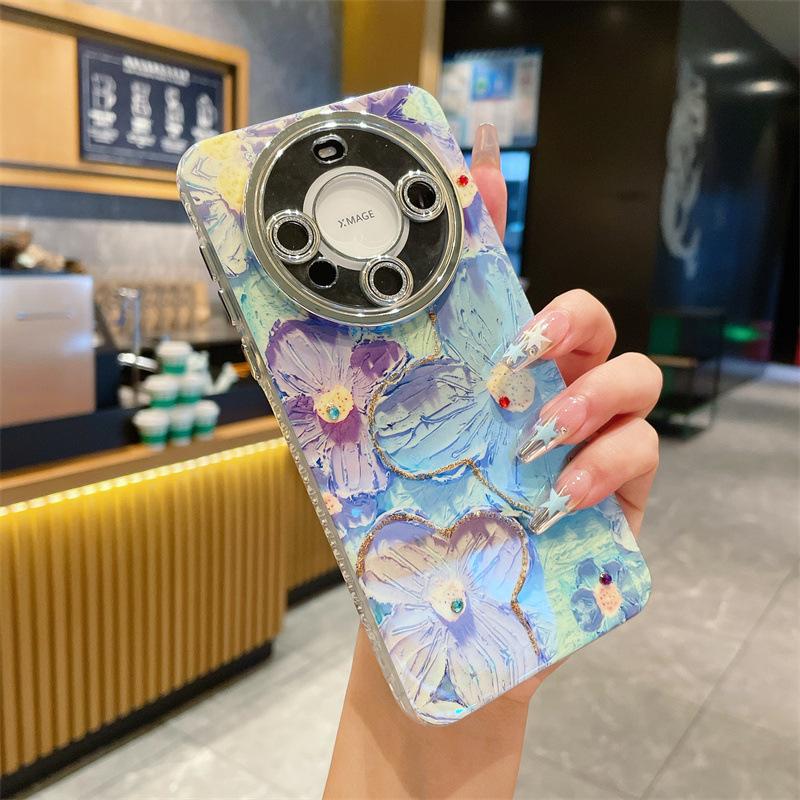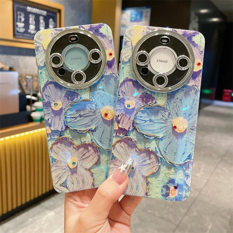 All-inclusive lens-blue light rhinestone oil painting purple blue flowers