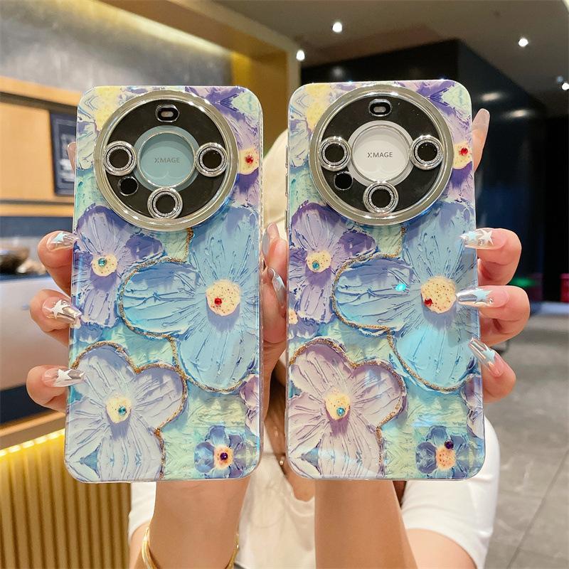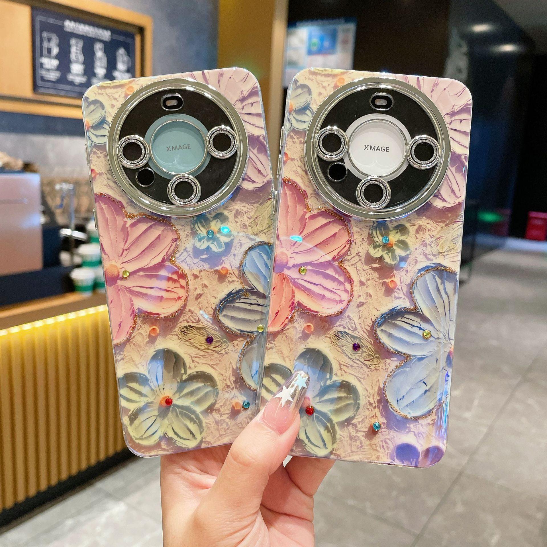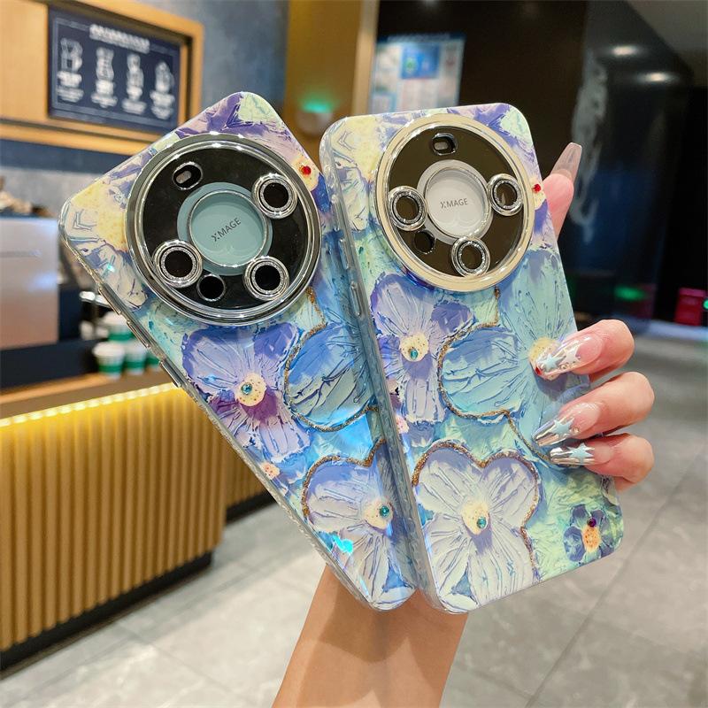 Flor de pedrería azul claro japonesa y coreana para funda de teléfono Huawei mate60pro + mate50/40 todo incluido p60 Nuevo