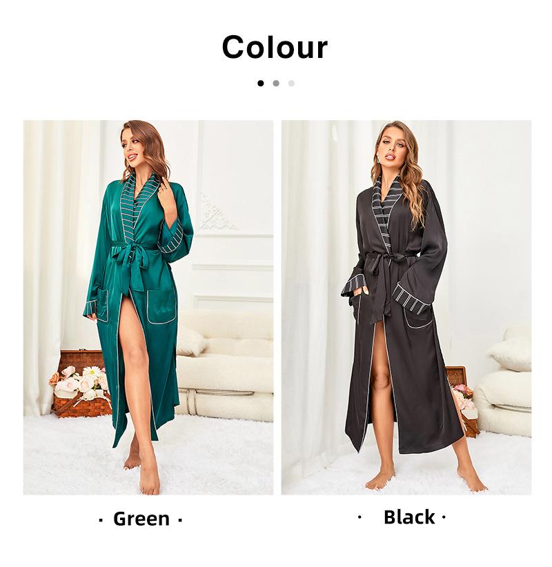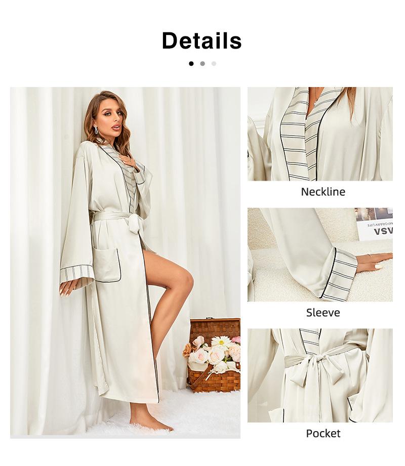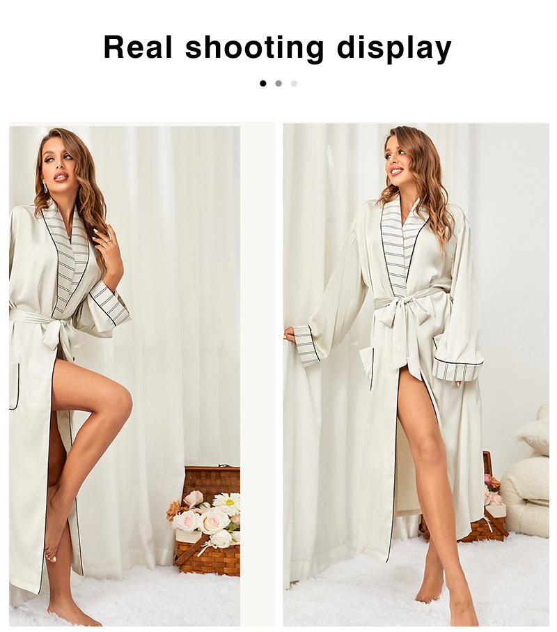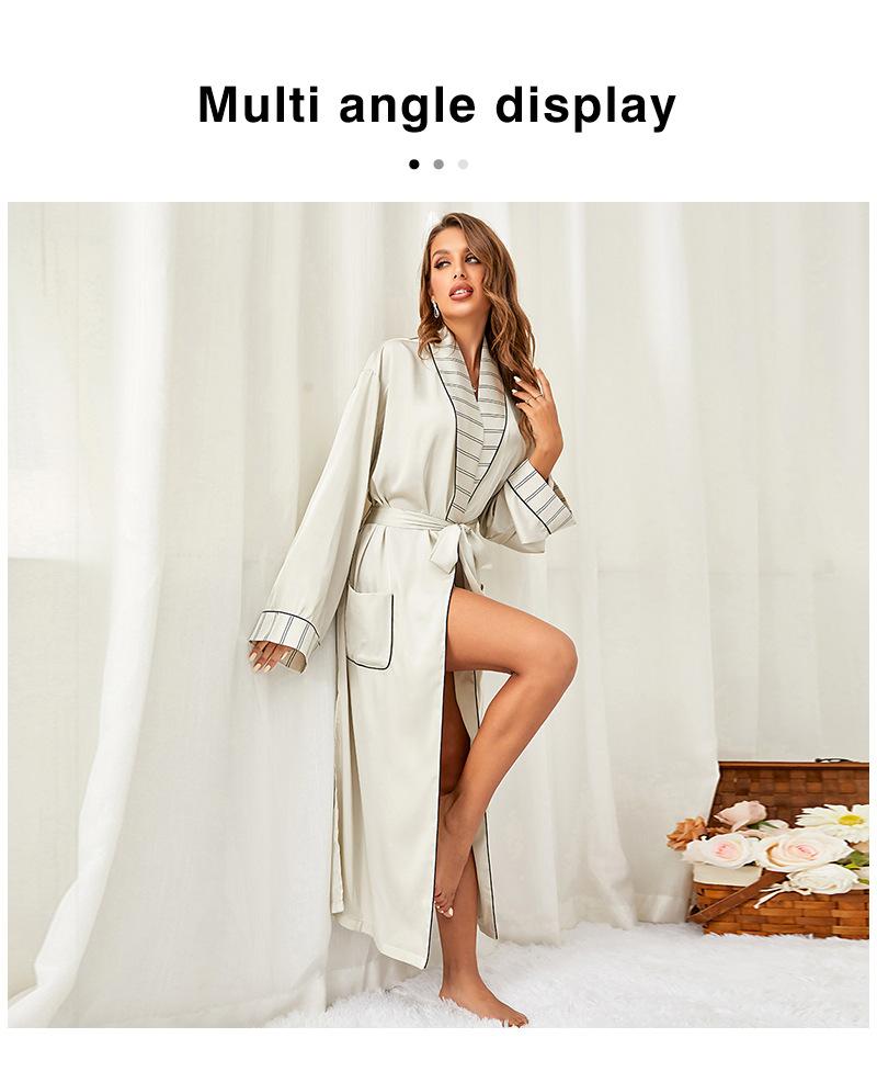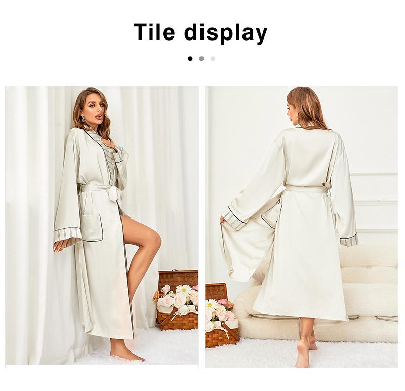 Camisón de seda artificial de manga larga para mujer, bata de baño sexy de seda helada, camisón de baño transfronterizo