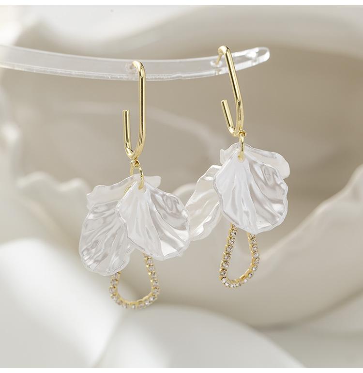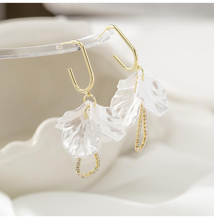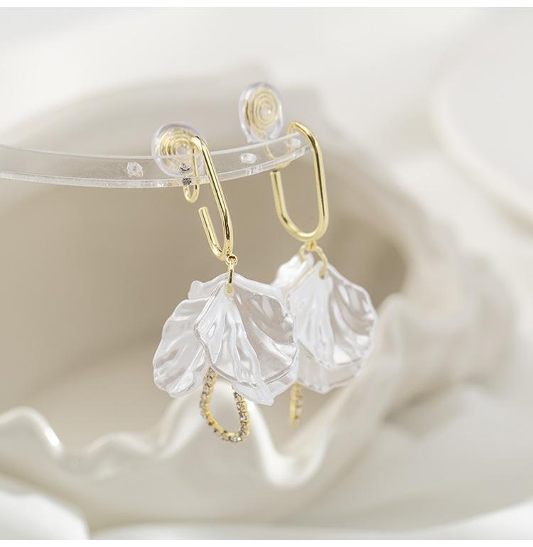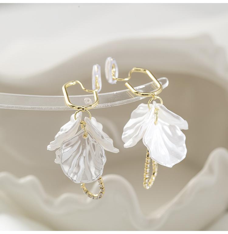 Pendientes de pétalos de lujo, ligeros y de moda, con diseño de nicho, temperamento, ligeros y lujosos, de alta calidad, con clip para las orejas con espiral antimosquitos, sin orejas perforadas.