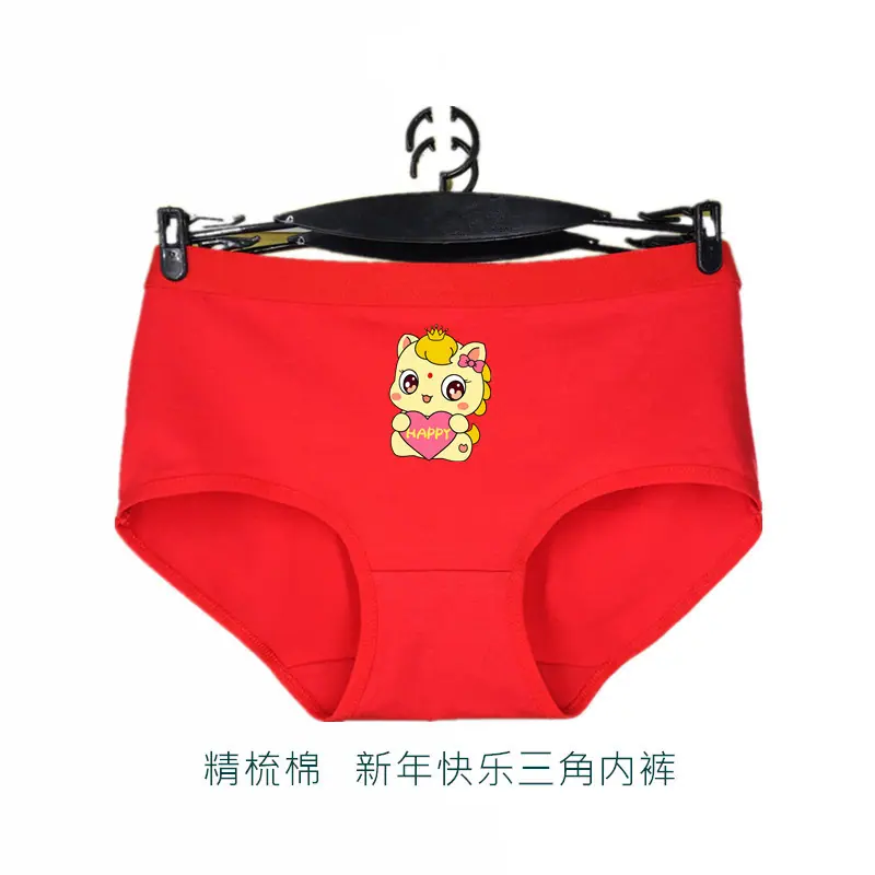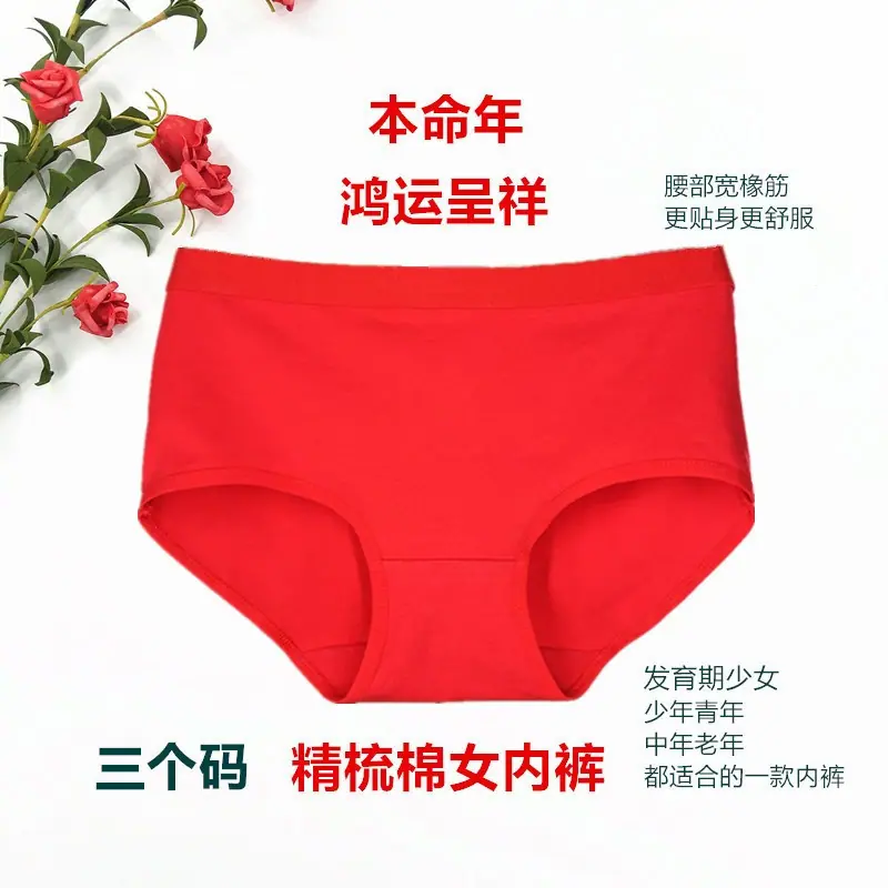 Ropa interior de algodón peinado rojo chino para niñas en período de desarrollo, estudiantes, jóvenes, mujeres de mediana edad y ancianas