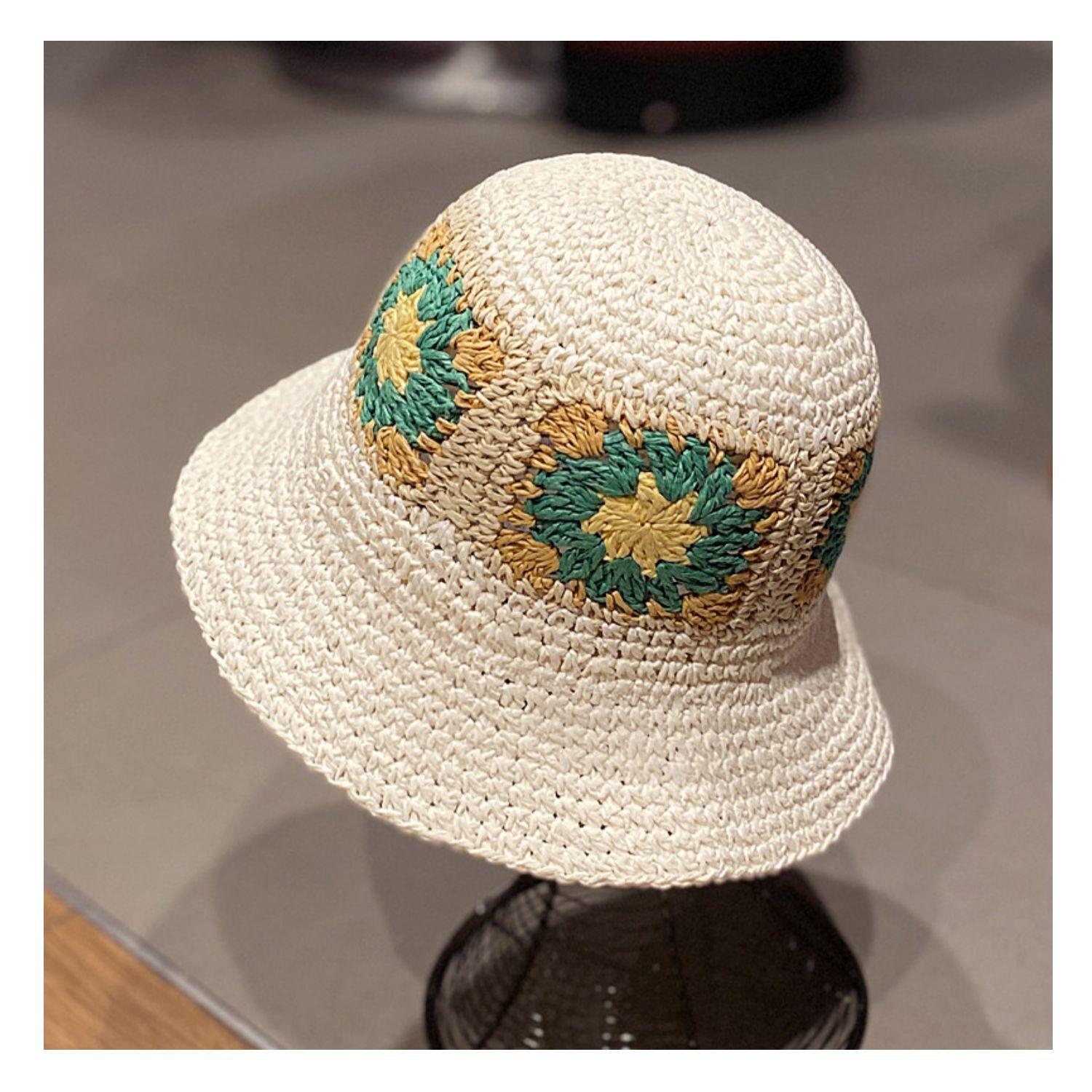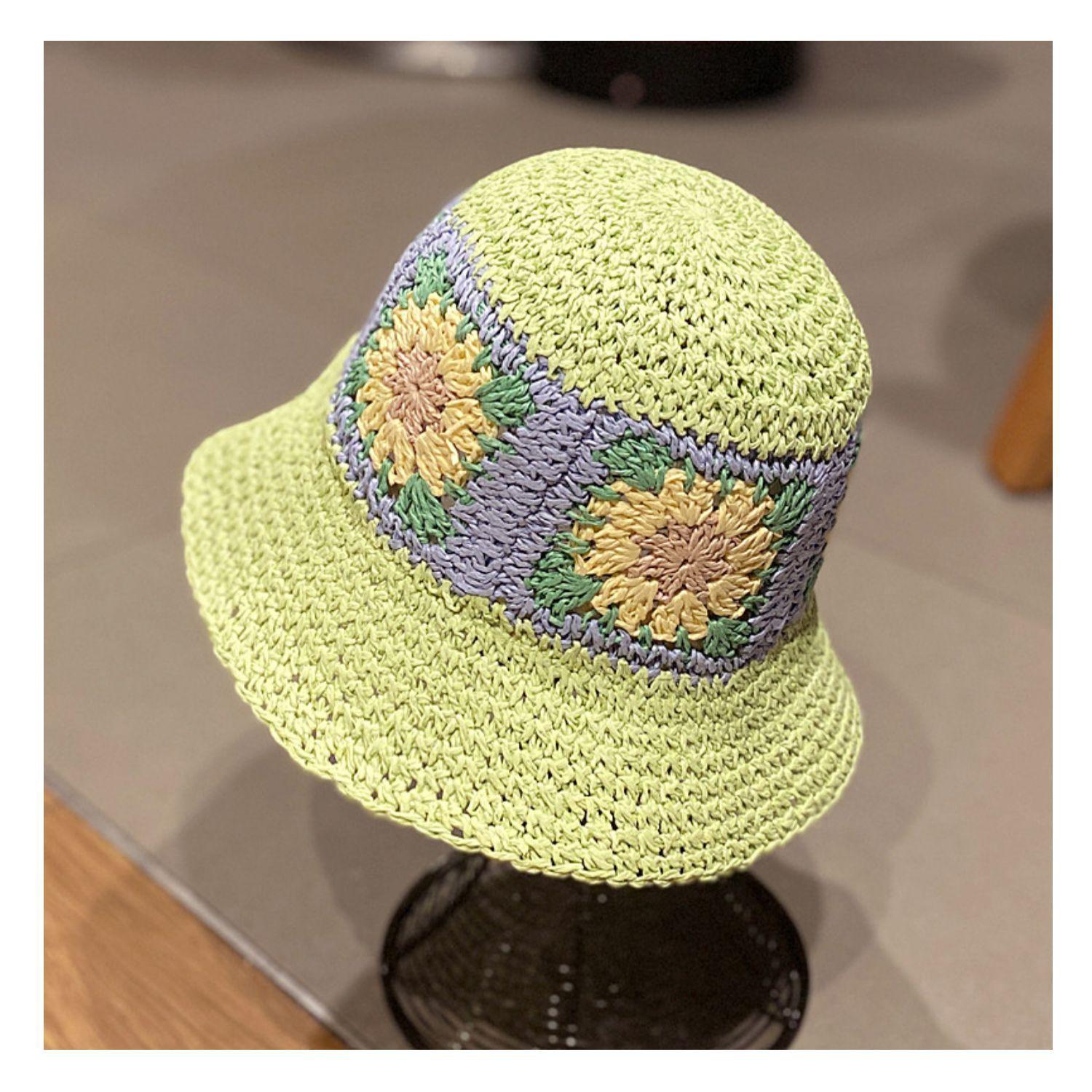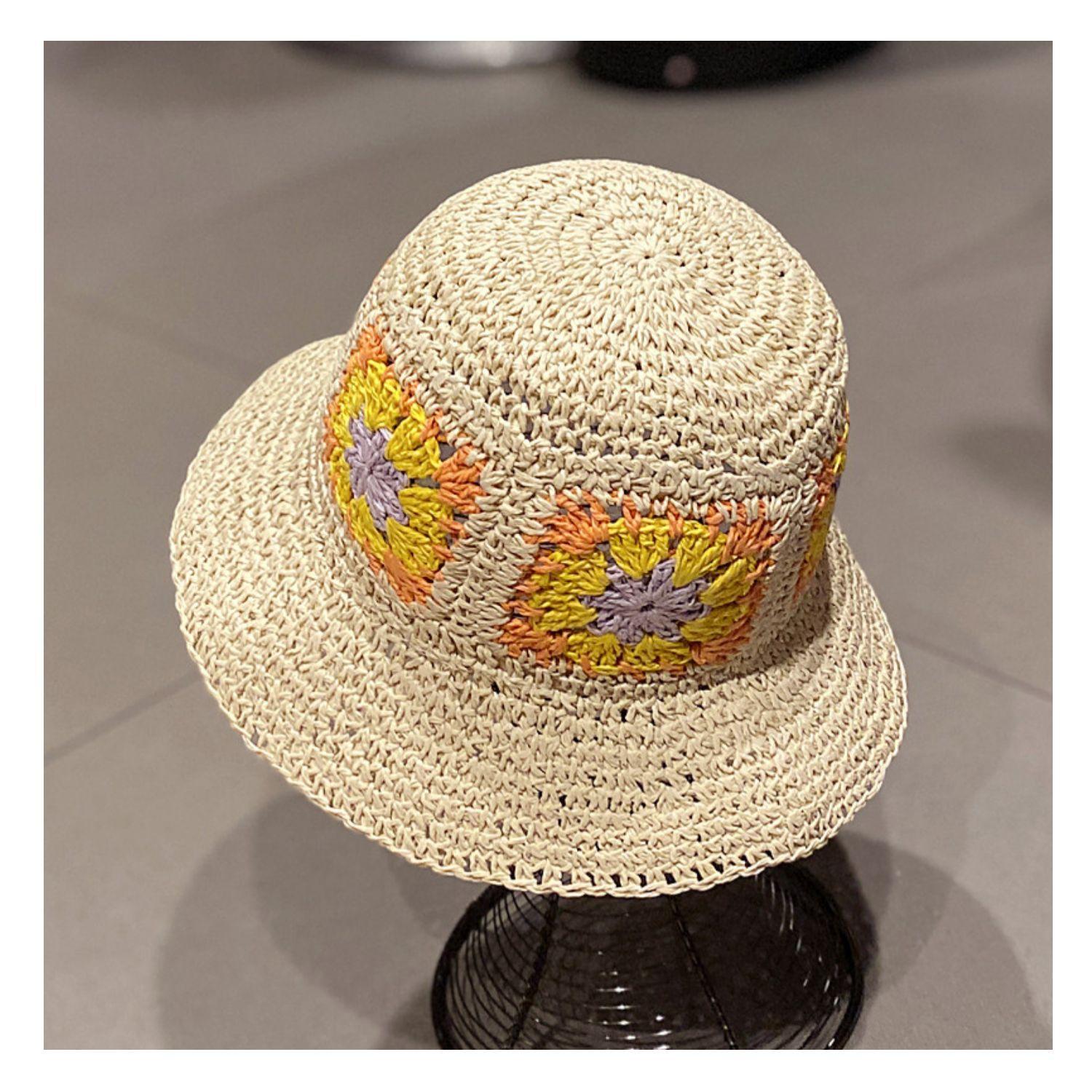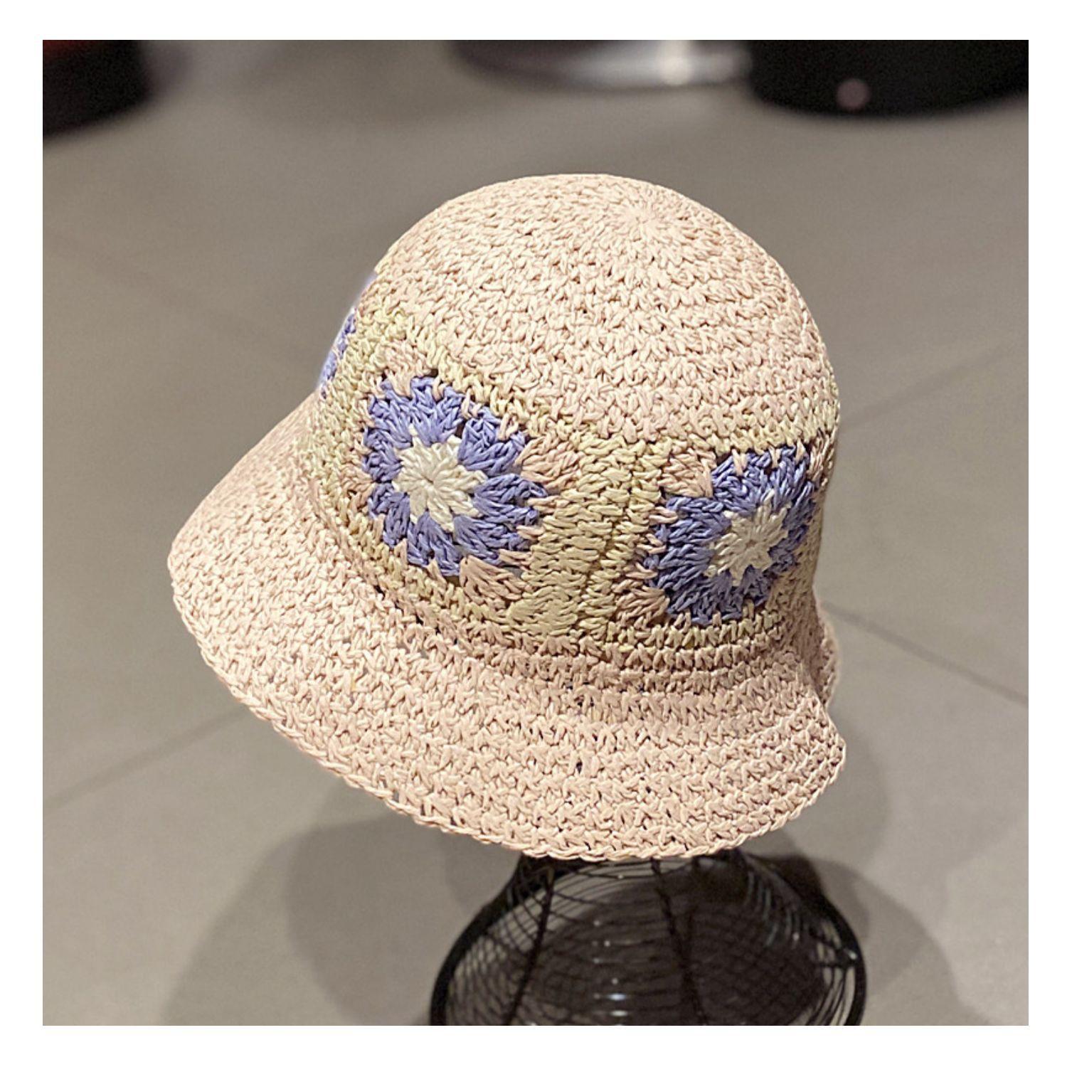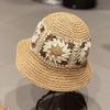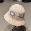 Sombrero de pescador japonés hecho a mano con flores, sombrilla de verano, sombrero de cubo plegable, sombrero de paja de playa para niños