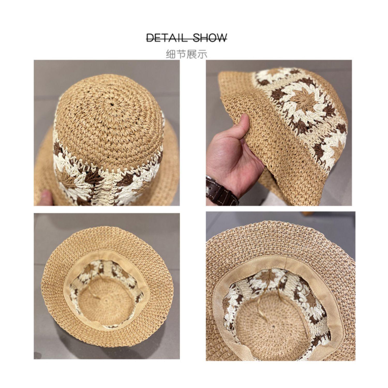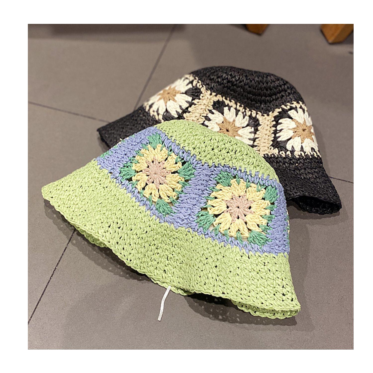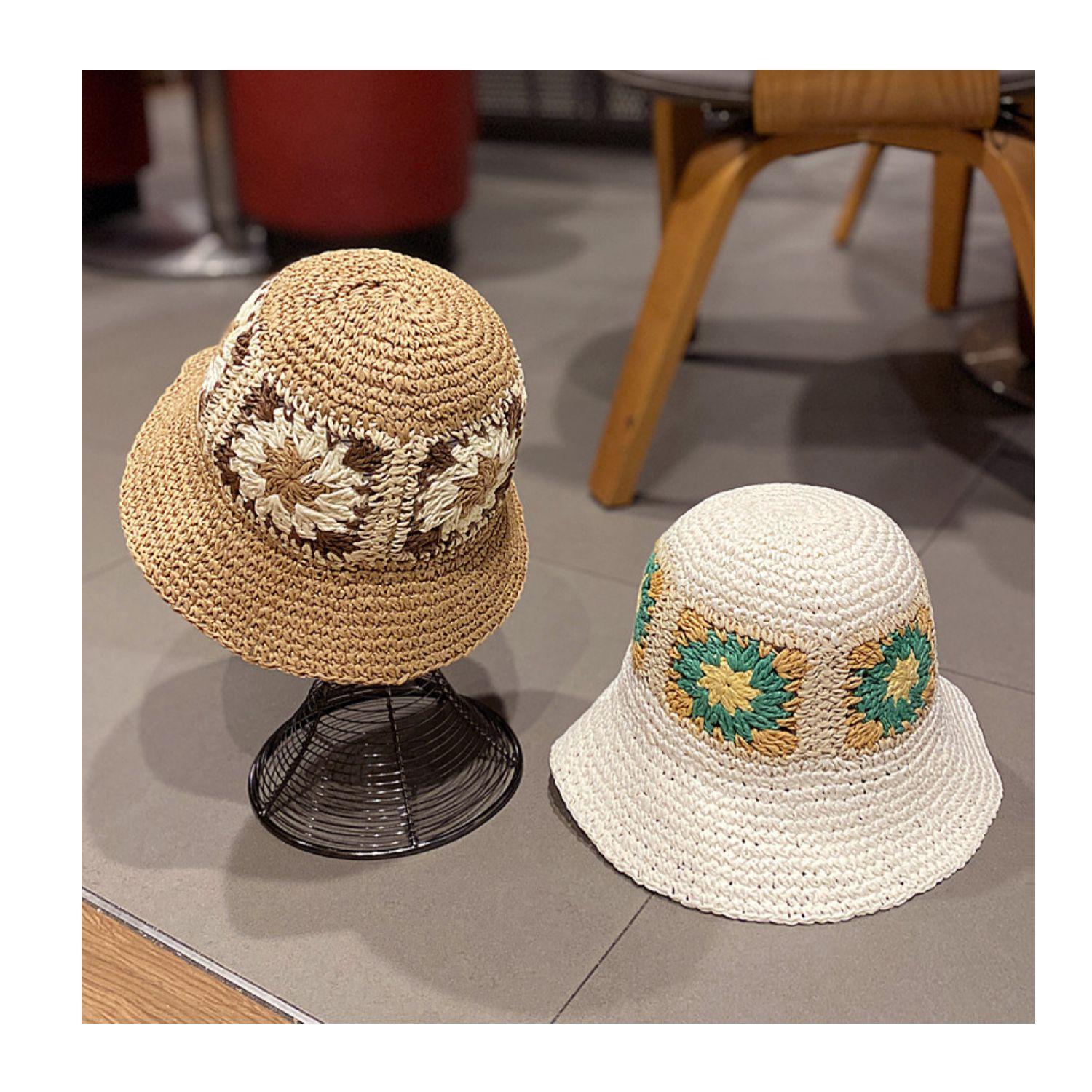 Black (sunflower handmade straw hat), Milky White (sunflower handmade straw hat), Apricot Rice (sunflower hand...