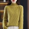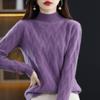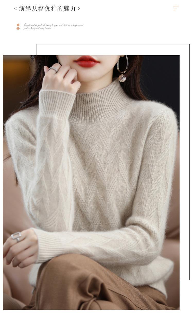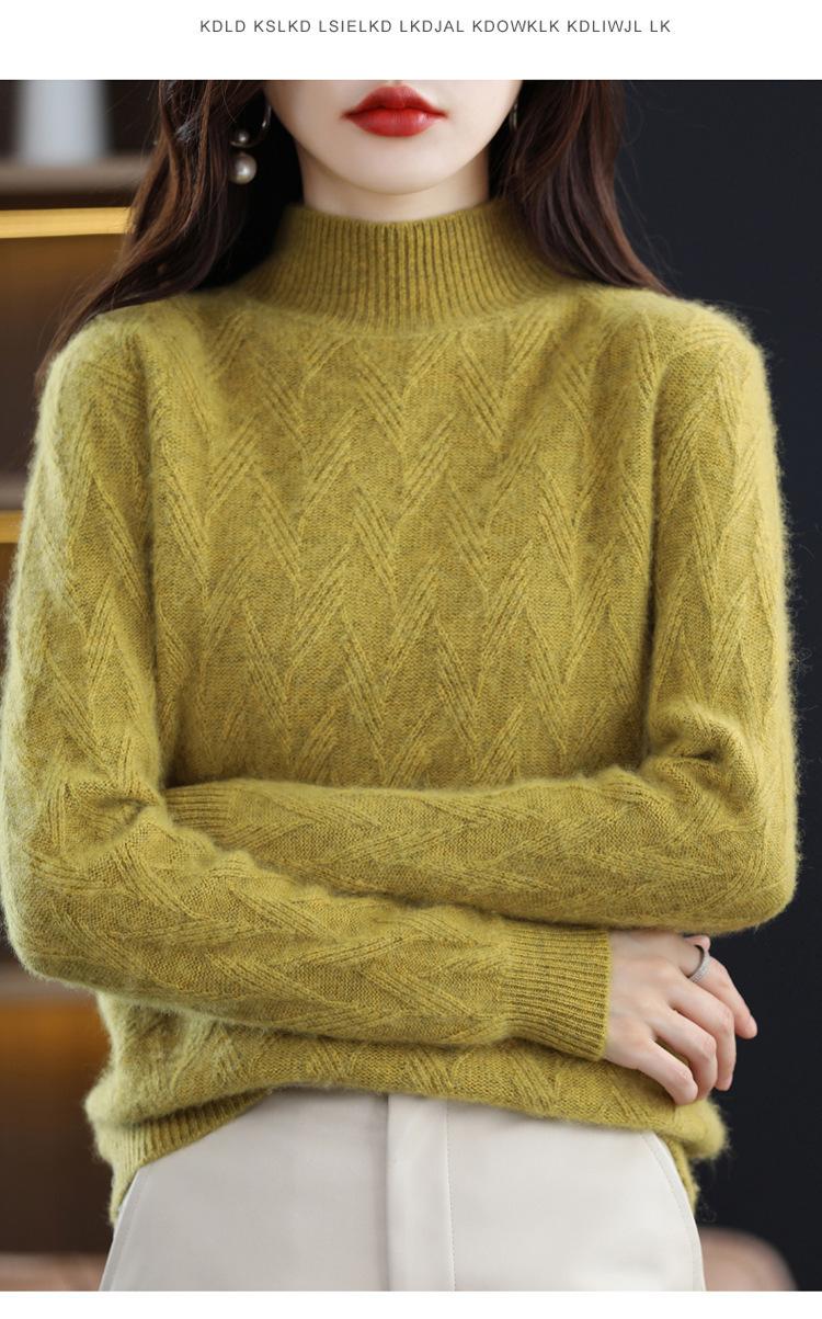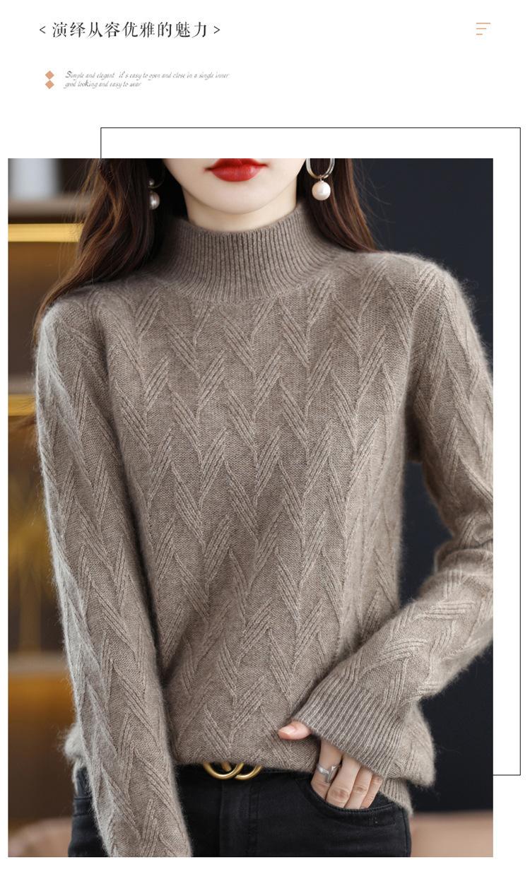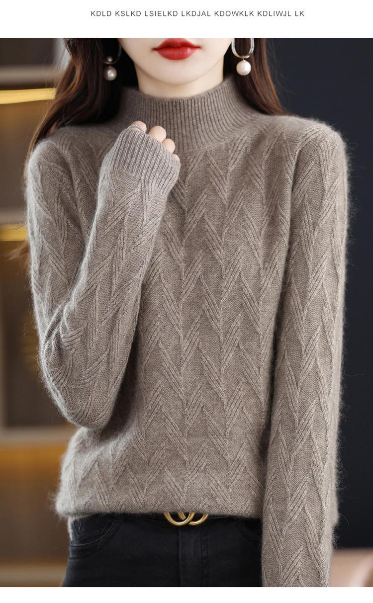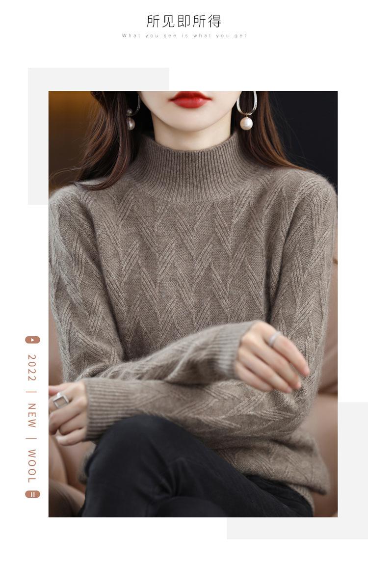 Nuevo Jersey de Lana de Cuello Medio Alto de Otoño e Invierno Transfronterizo para Mujer, Jersey Básico de Manga Larga Jacquard de Cachemira Engrosado de Cuello Medio