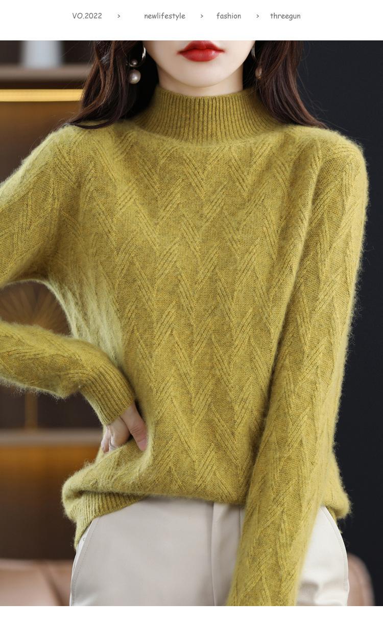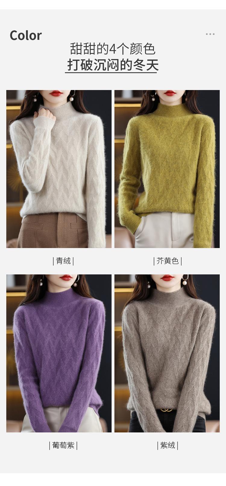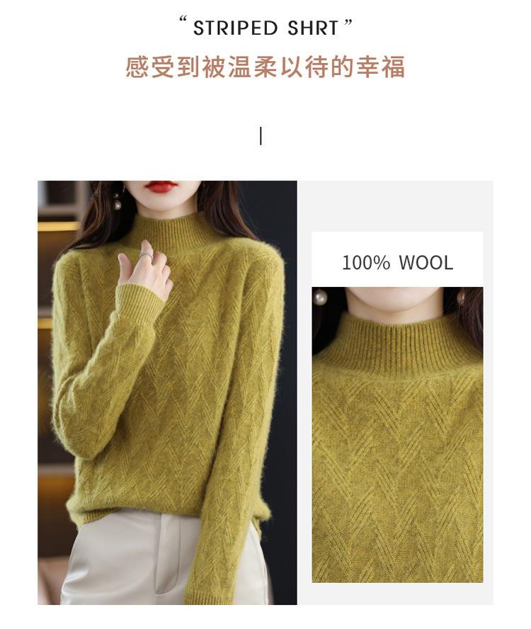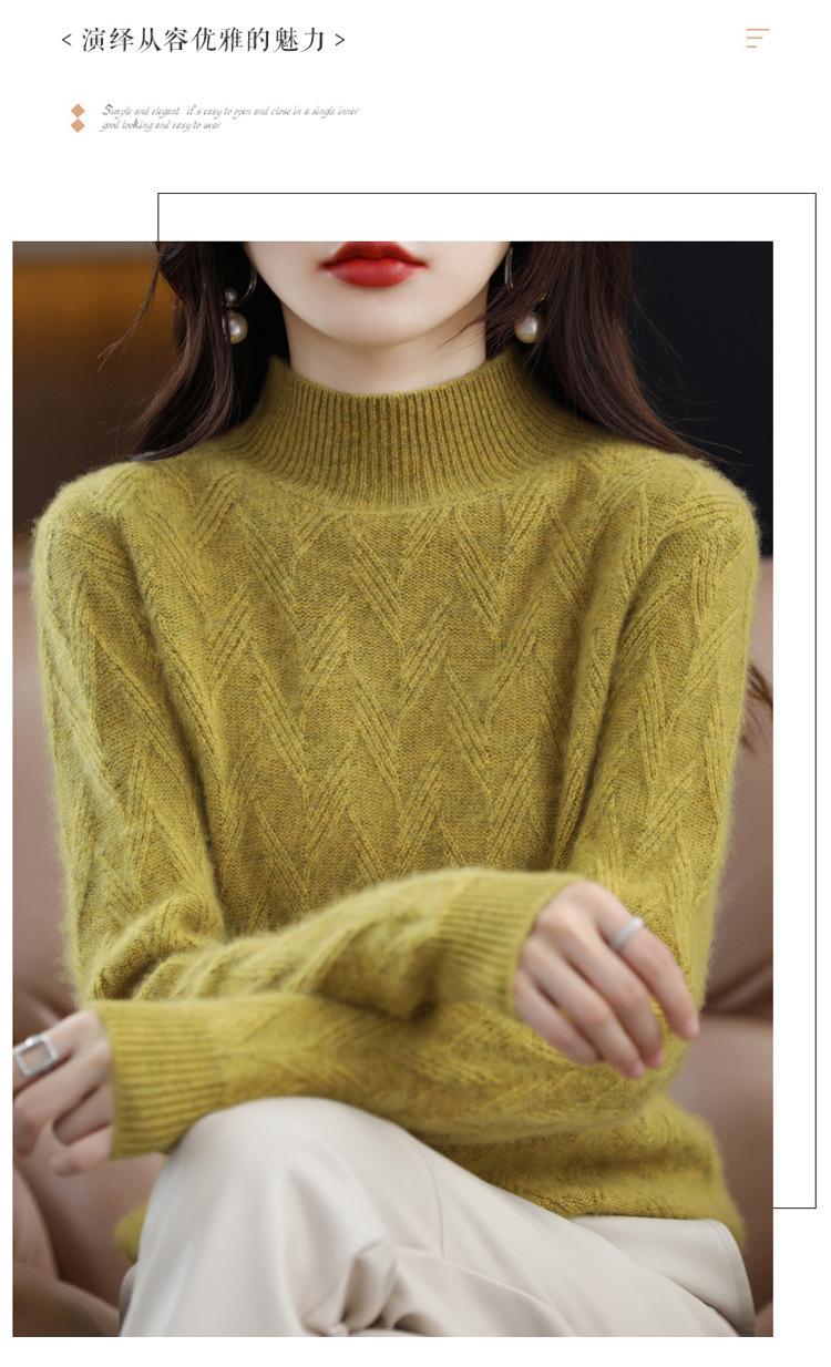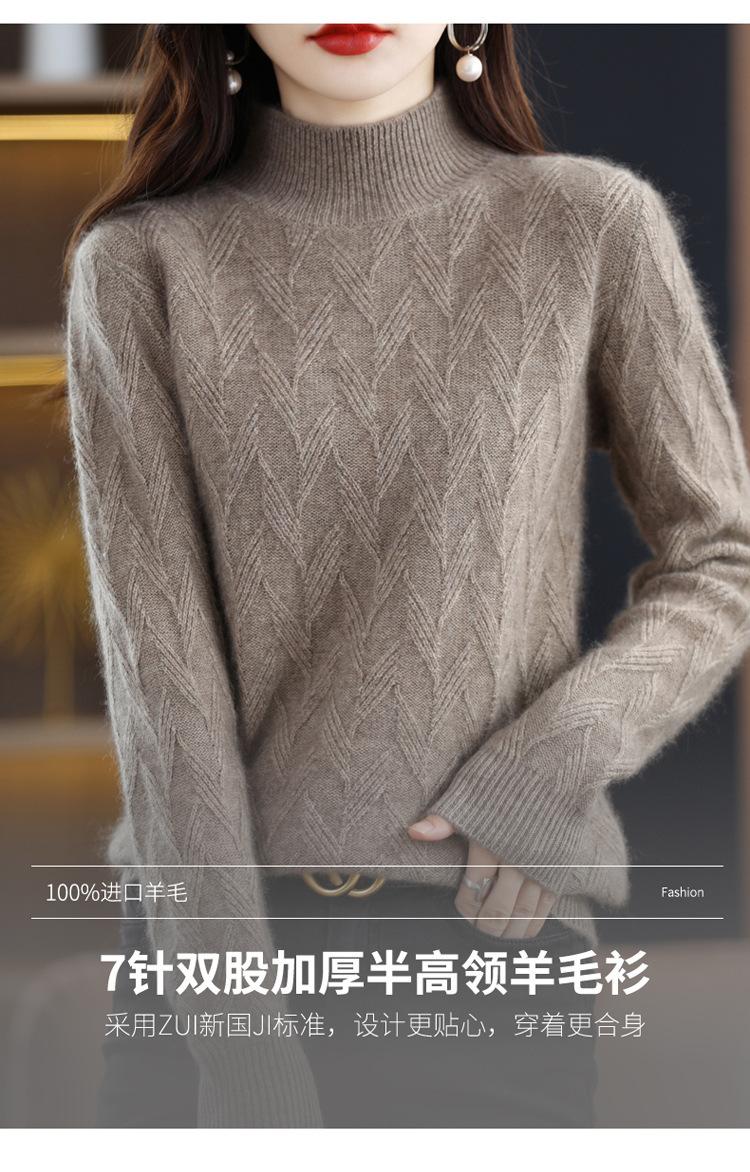 Nuevo Jersey de Lana de Cuello Medio Alto de Otoño e Invierno Transfronterizo para Mujer, Jersey Básico de Manga Larga Jacquard de Cachemira Engrosado de Cuello Medio