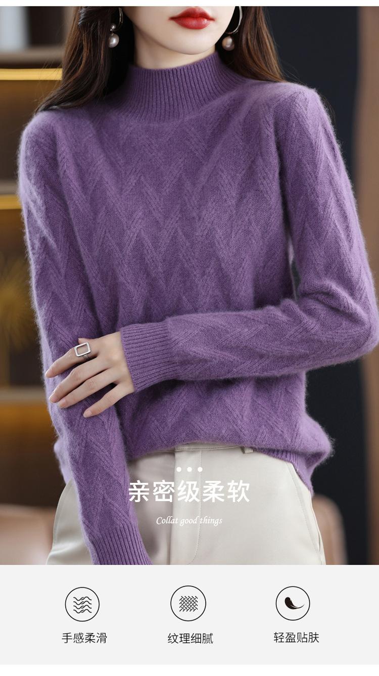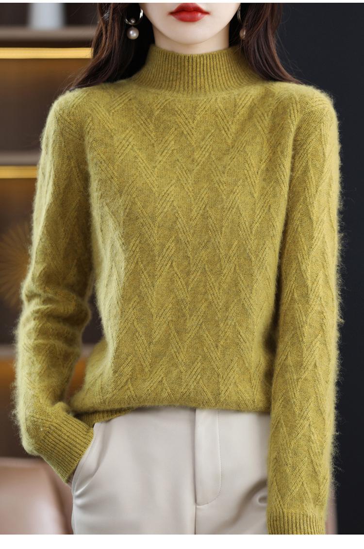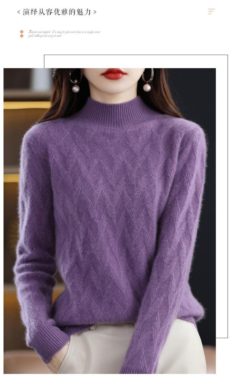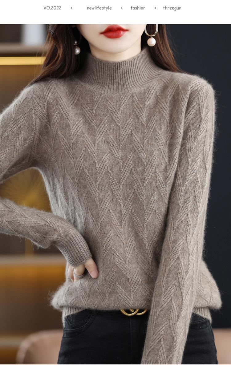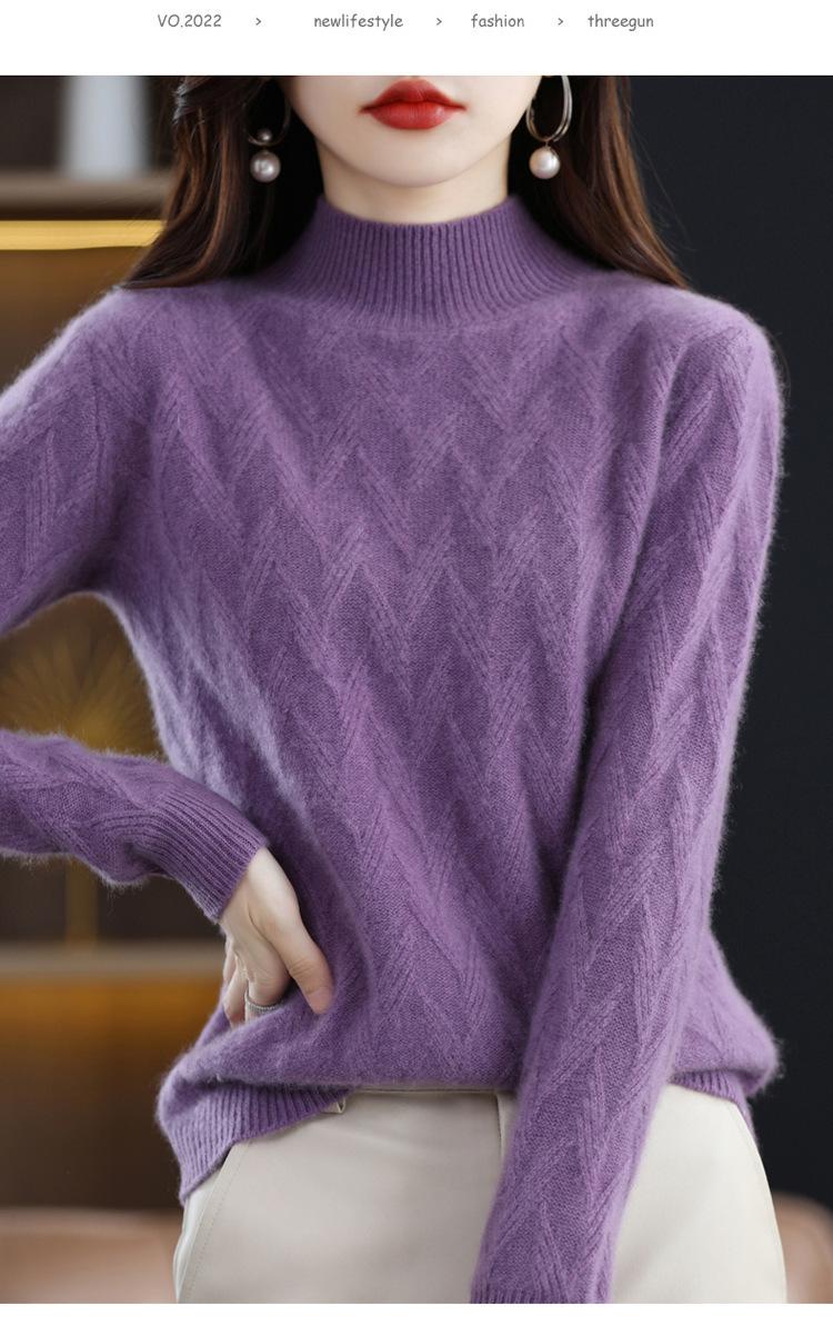 Nuevo Jersey de Lana de Cuello Medio Alto de Otoño e Invierno Transfronterizo para Mujer, Jersey Básico de Manga Larga Jacquard de Cachemira Engrosado de Cuello Medio