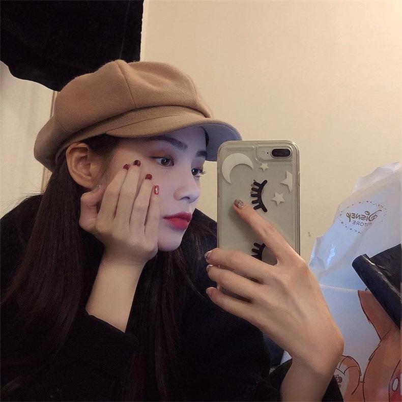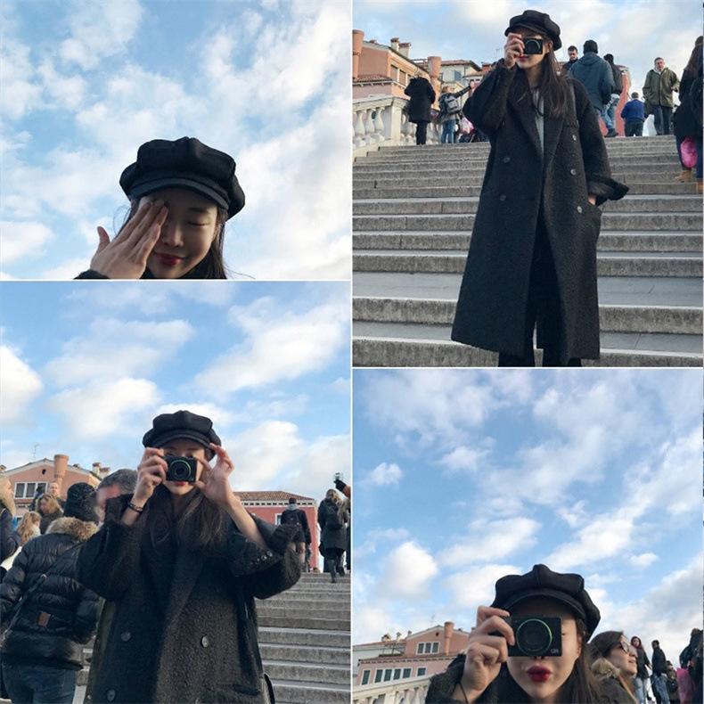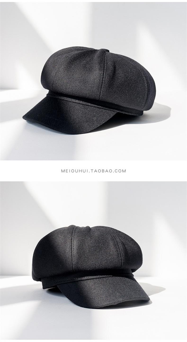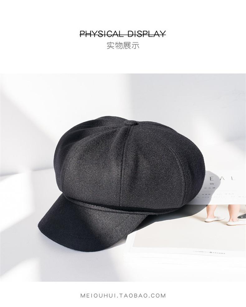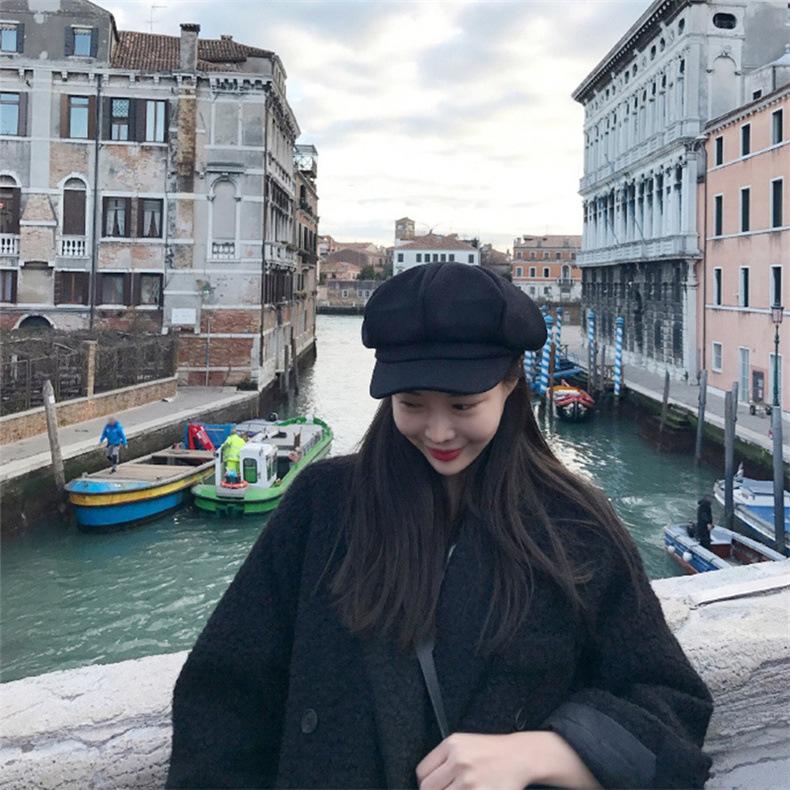 Boina Octogonal de Lana de Color Sólido Estilo Coreano para Mujer, Gorro Boina para Primavera y Otoño, Sombrero de Pintor Juvenil Casual y Versátil Británico