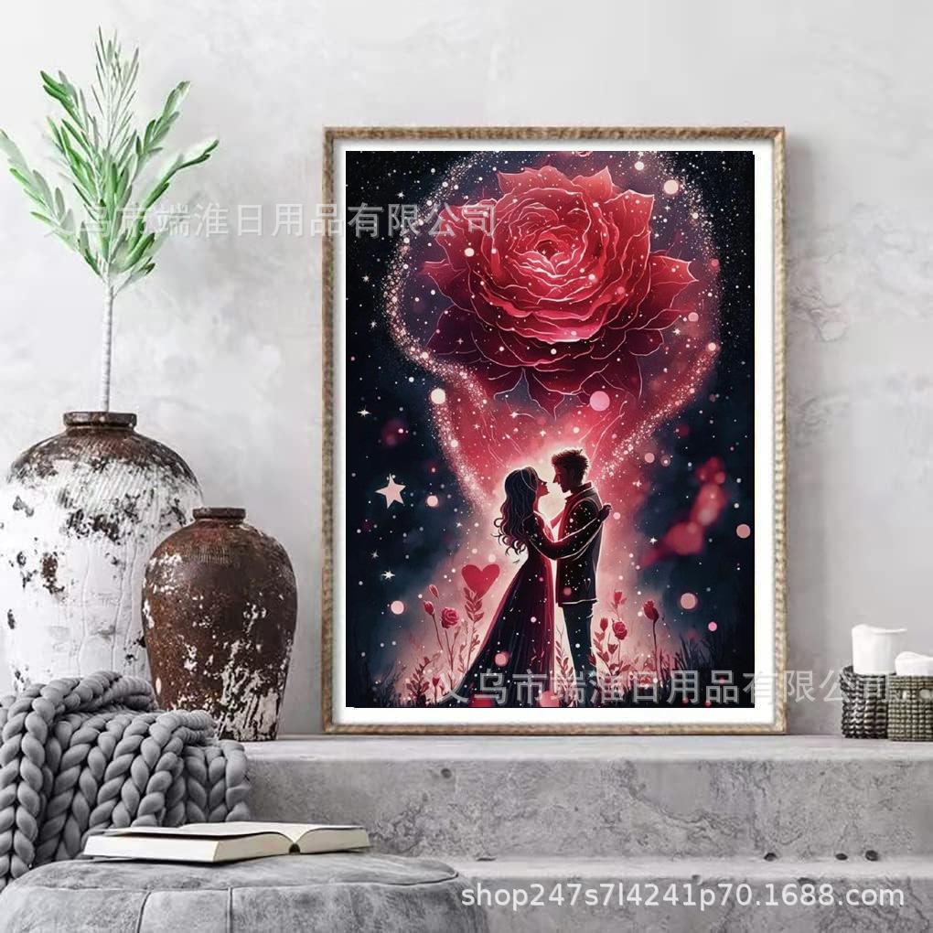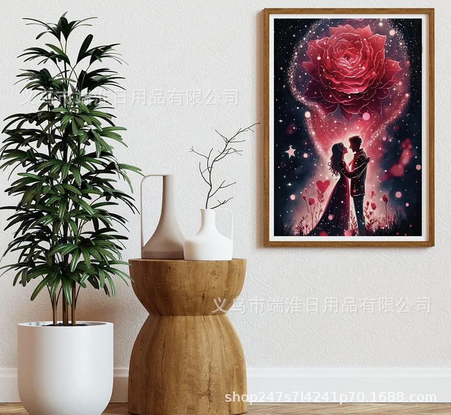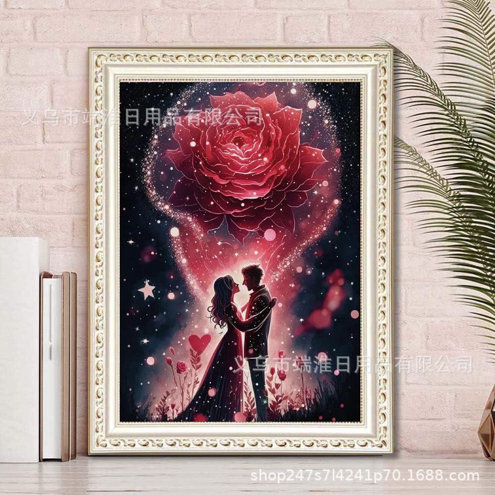 Pintura de diamante 5D al por mayor transfronteriza de Amazon, diamante redondo, rosa, amante, bricolaje, pegatina hecha a mano, decoración de mosaico