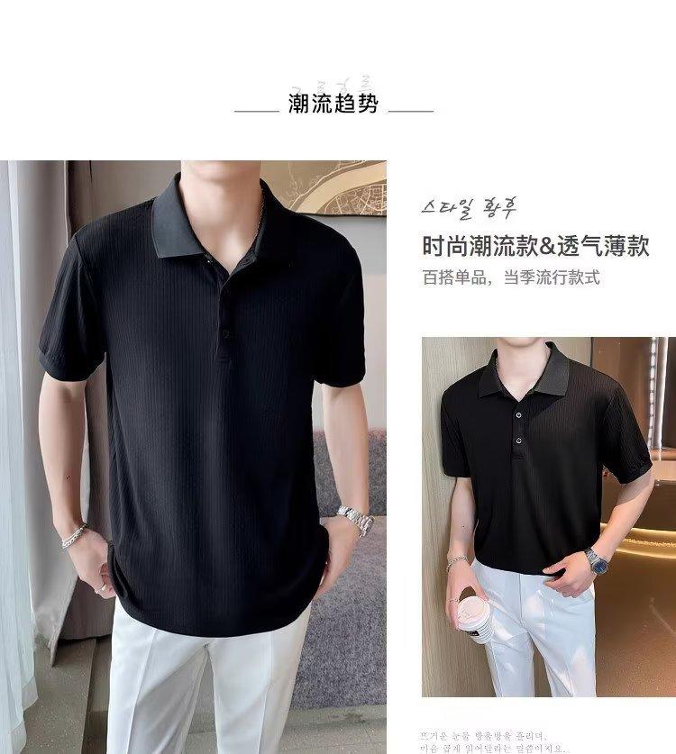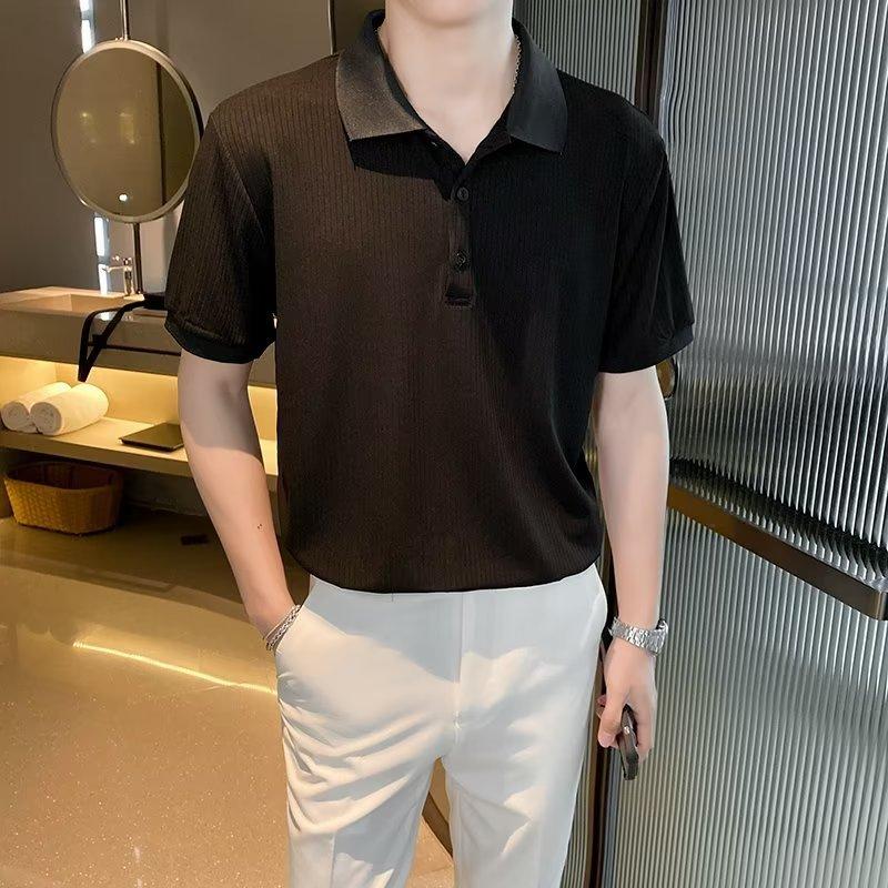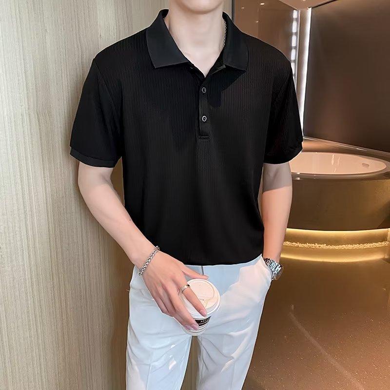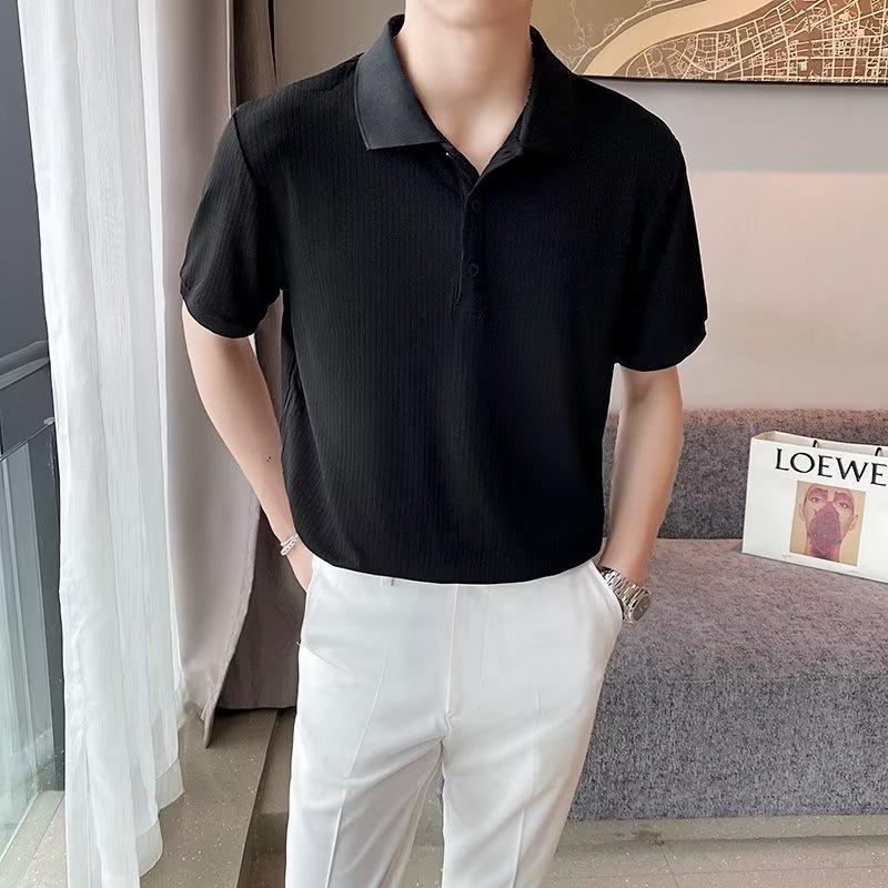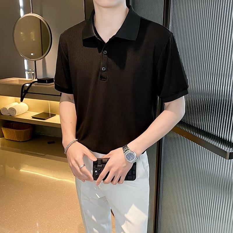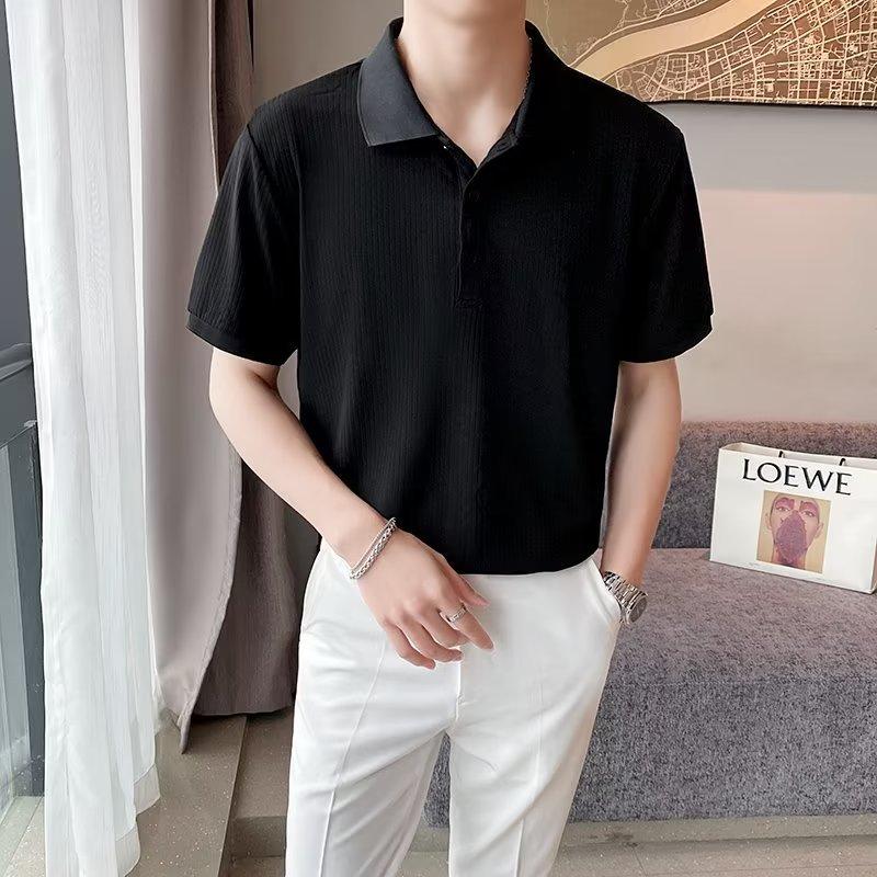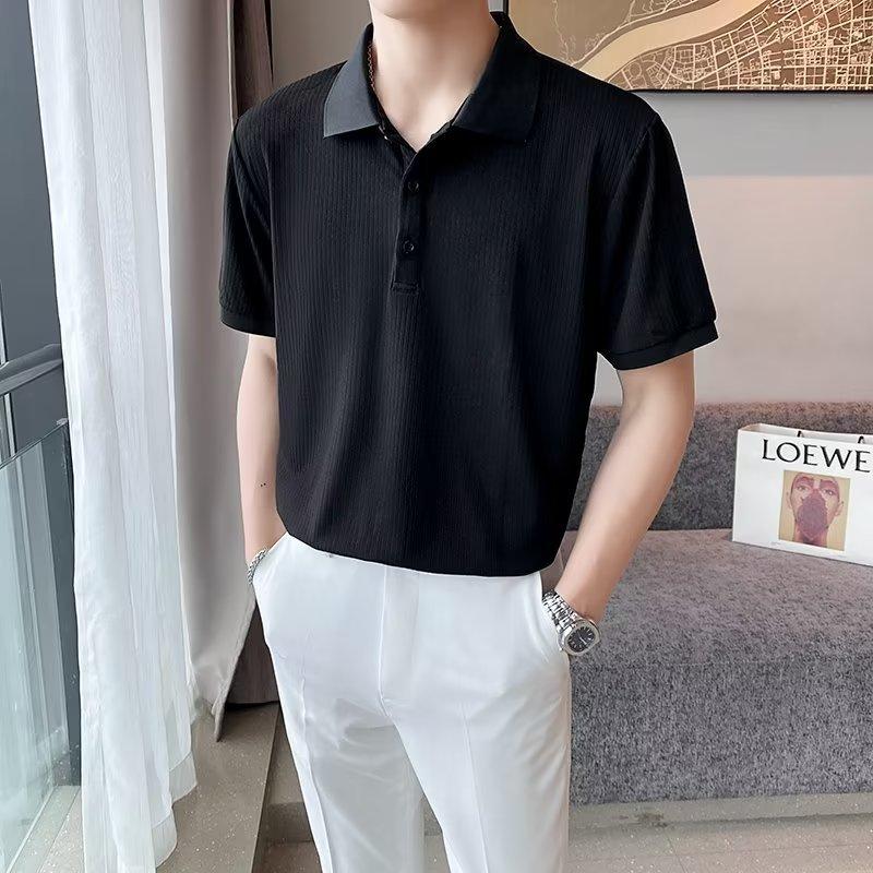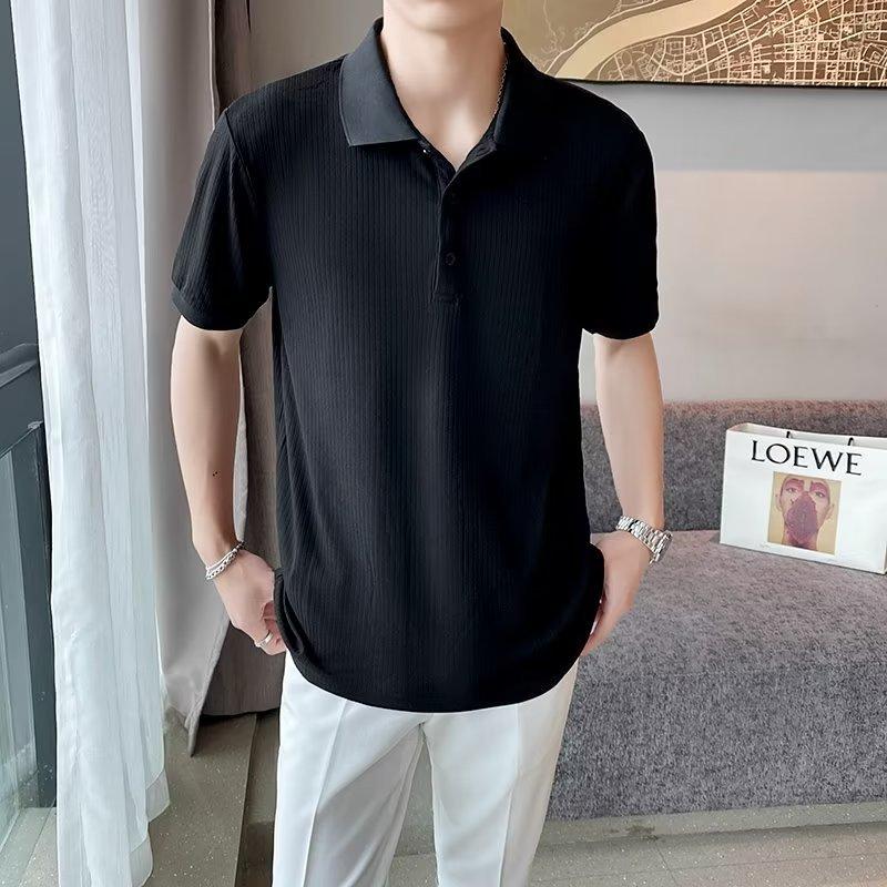 Polo transpirable de seda de hielo para niños, camiseta de manga corta de color liso, informal, con solapa suelta, novedad de verano de 2024