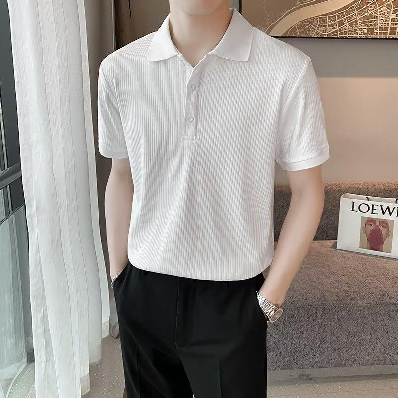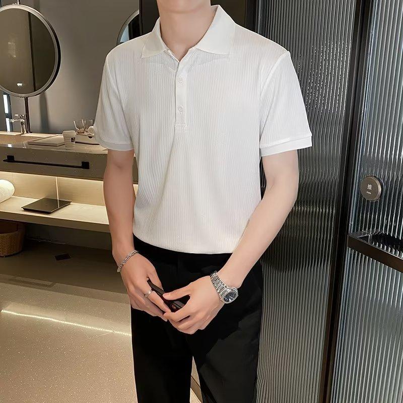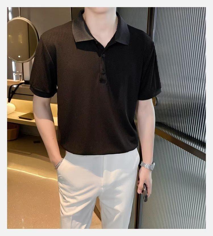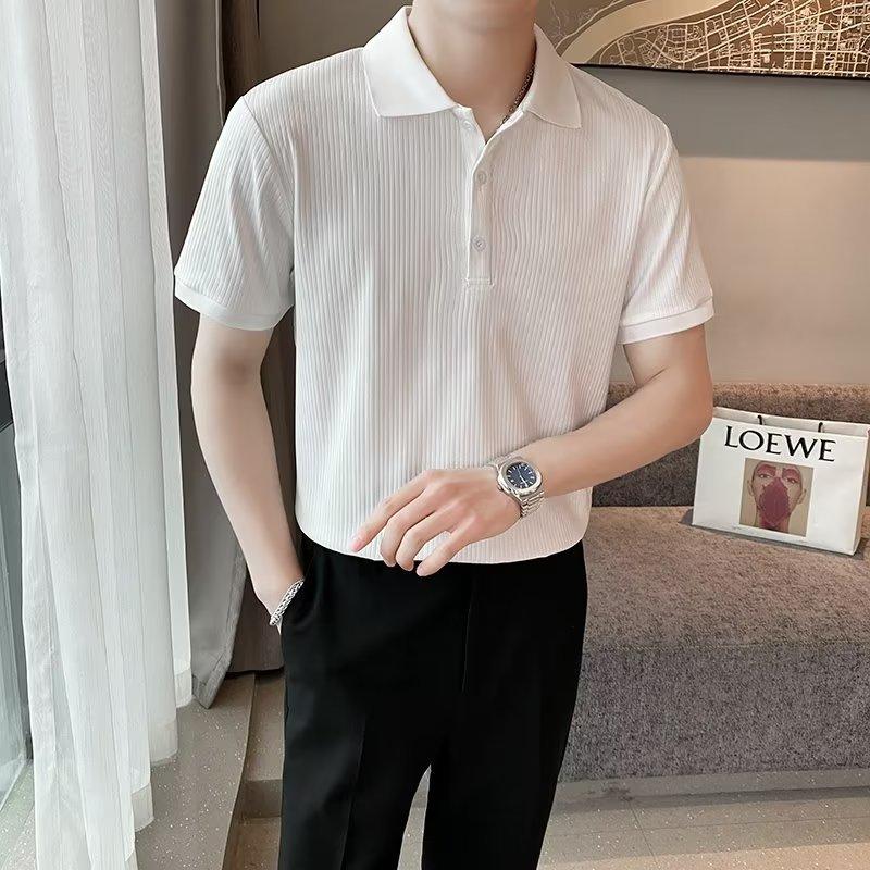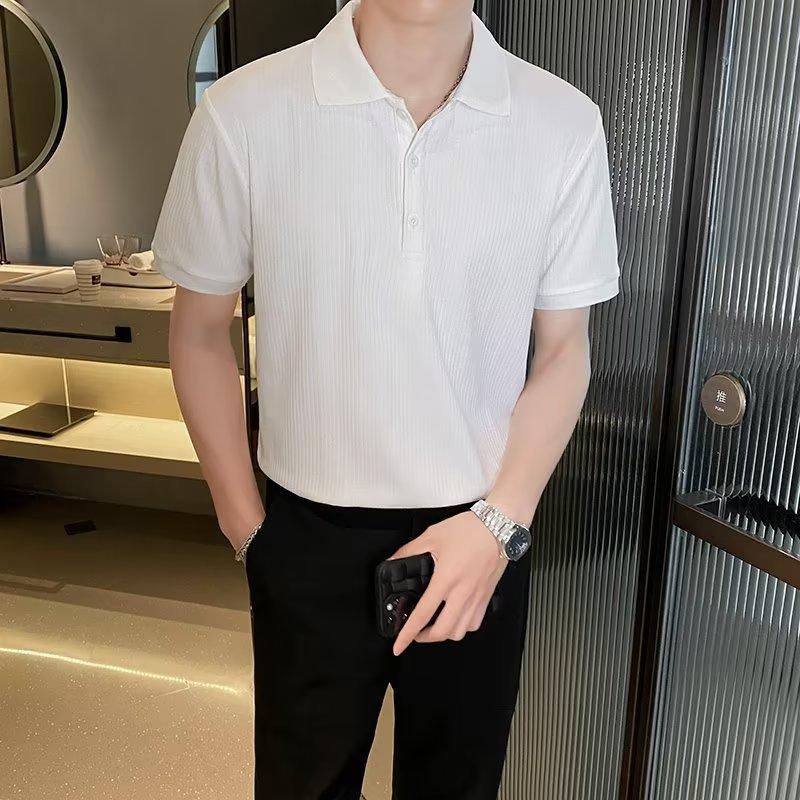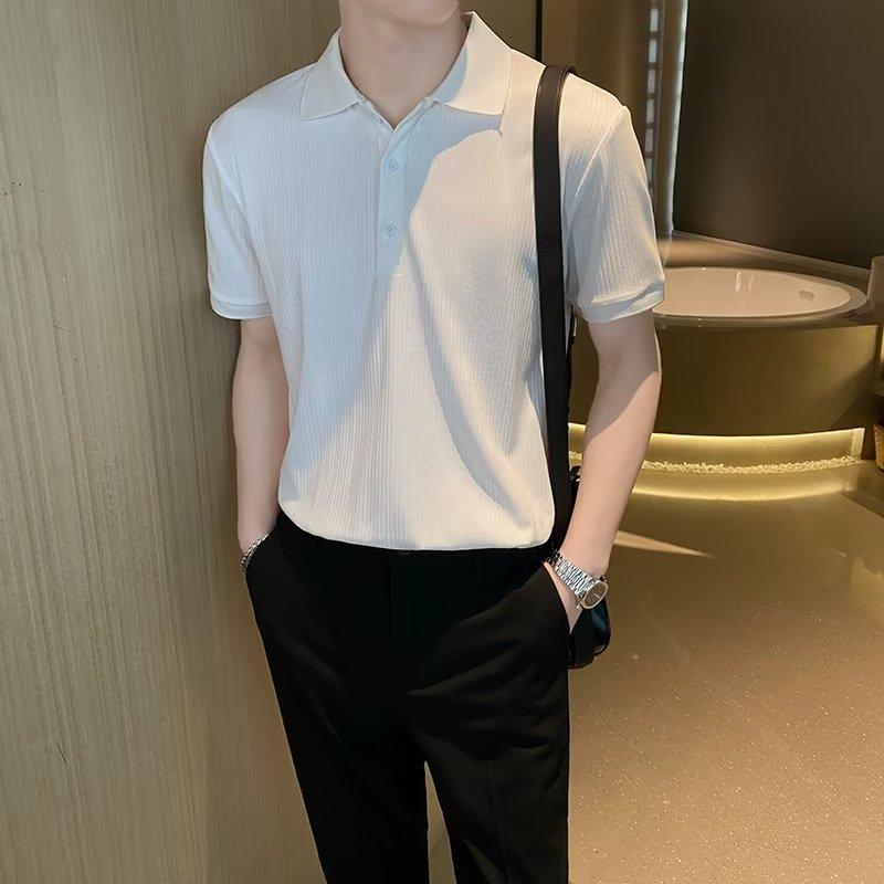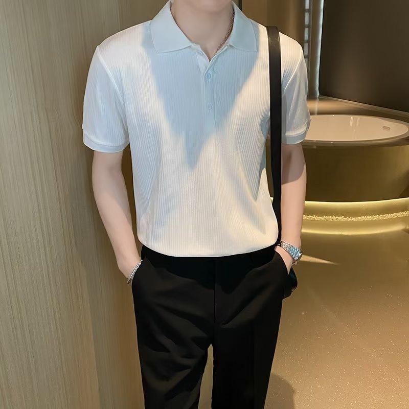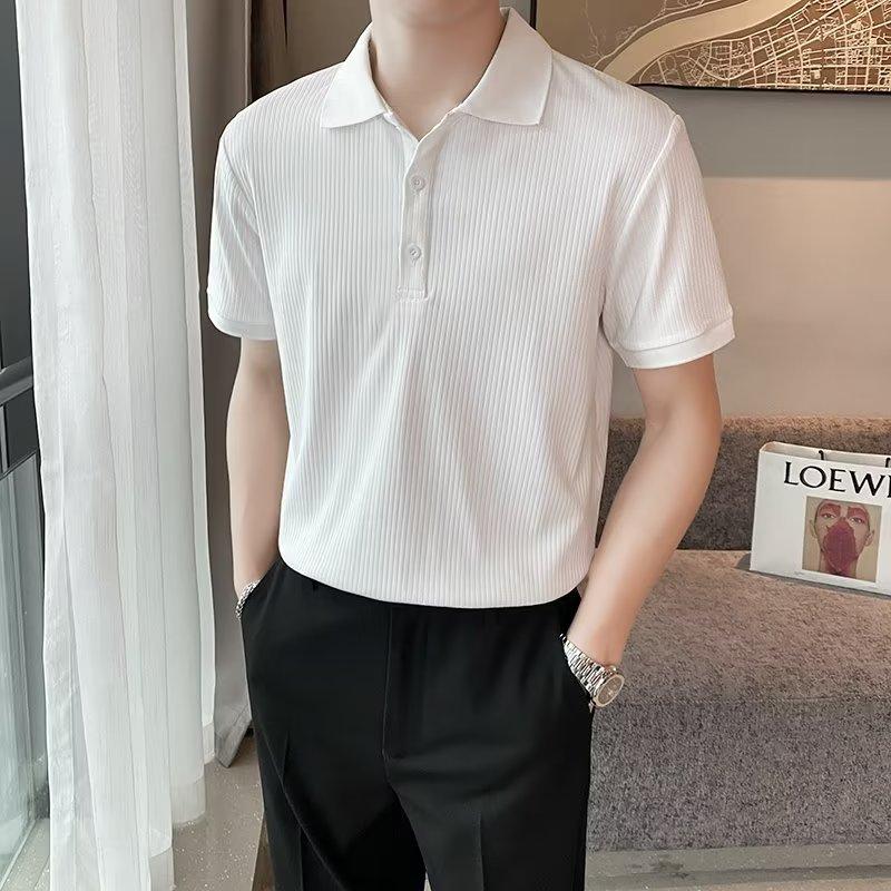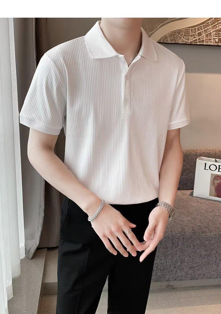 Polo transpirable de seda de hielo para niños, camiseta de manga corta de color liso, informal, con solapa suelta, novedad de verano de 2024