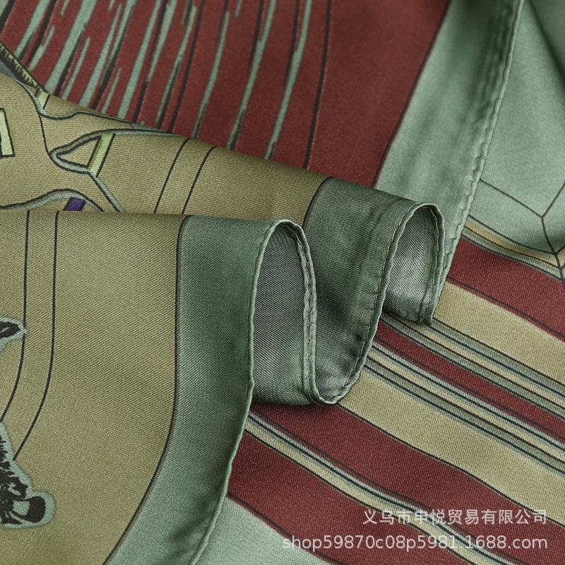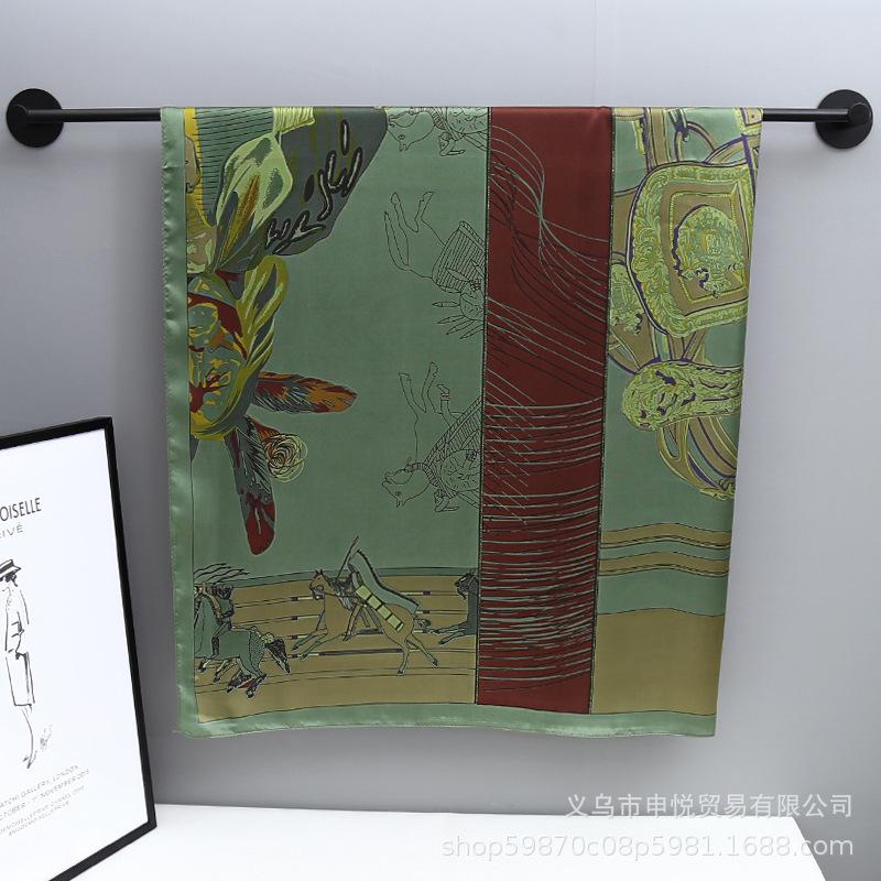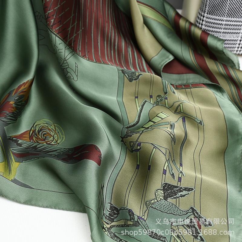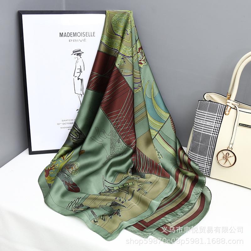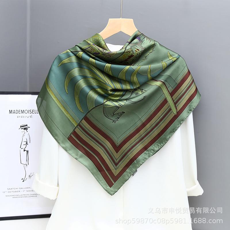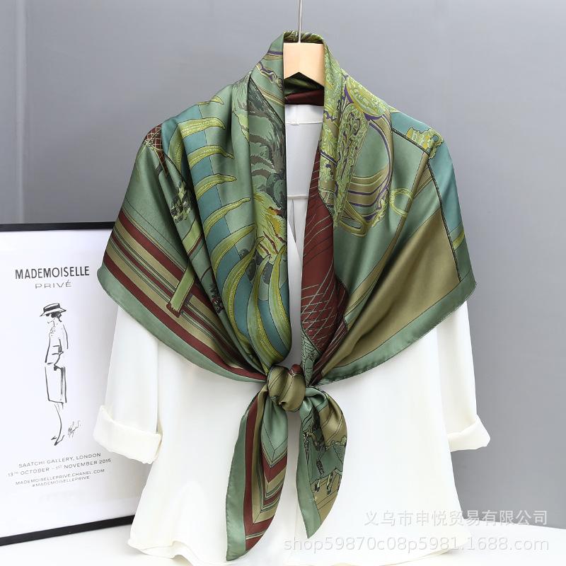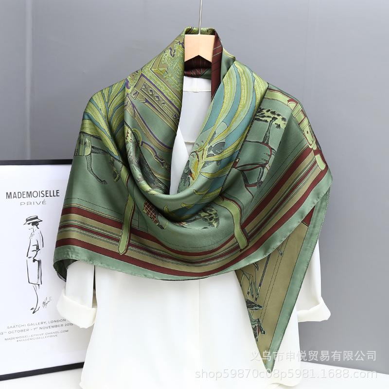 Bufanda cuadrada grande de seda artificial con estampado verde elegante de moda de primavera y otoño 110, bufanda de viaje con protección solar para mujer