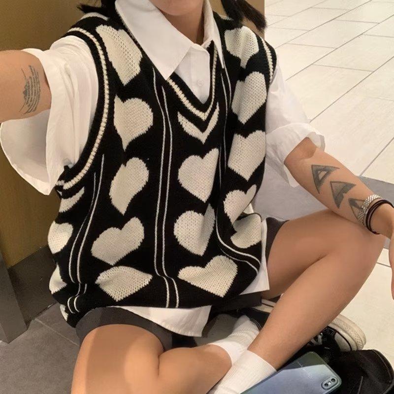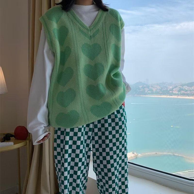 Chaleco de suéter con cuello en V de primavera y otoño 2022, estilo Hong Kong, de marca de moda, combina con todo, suelto, de punto para parejas.